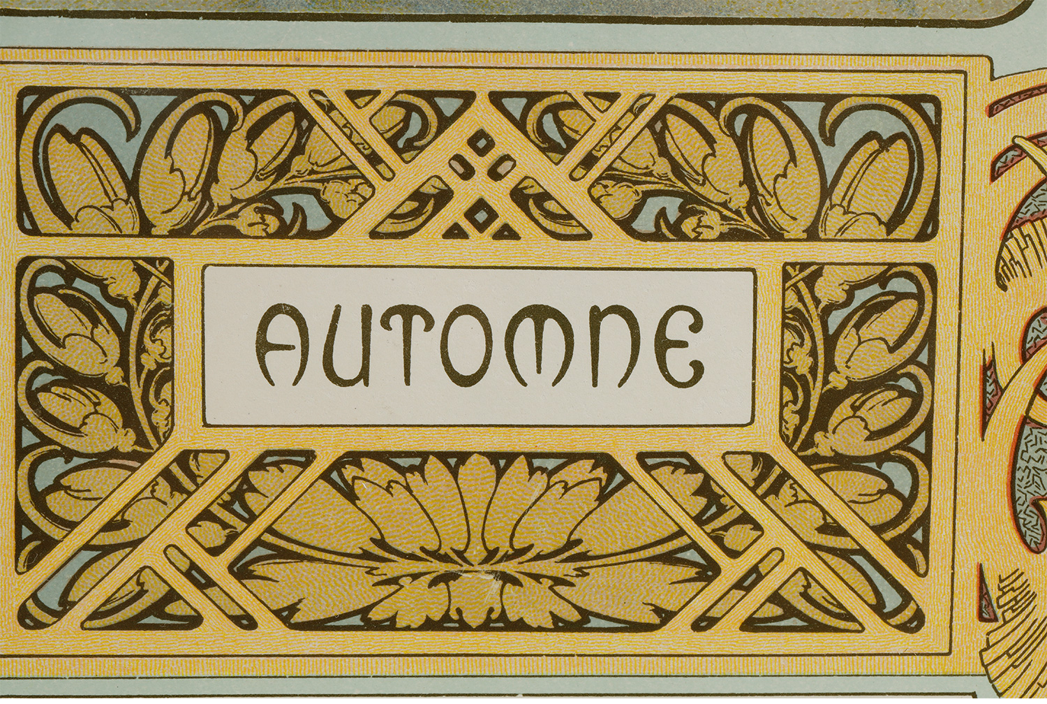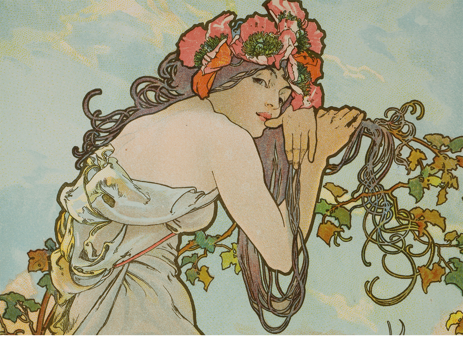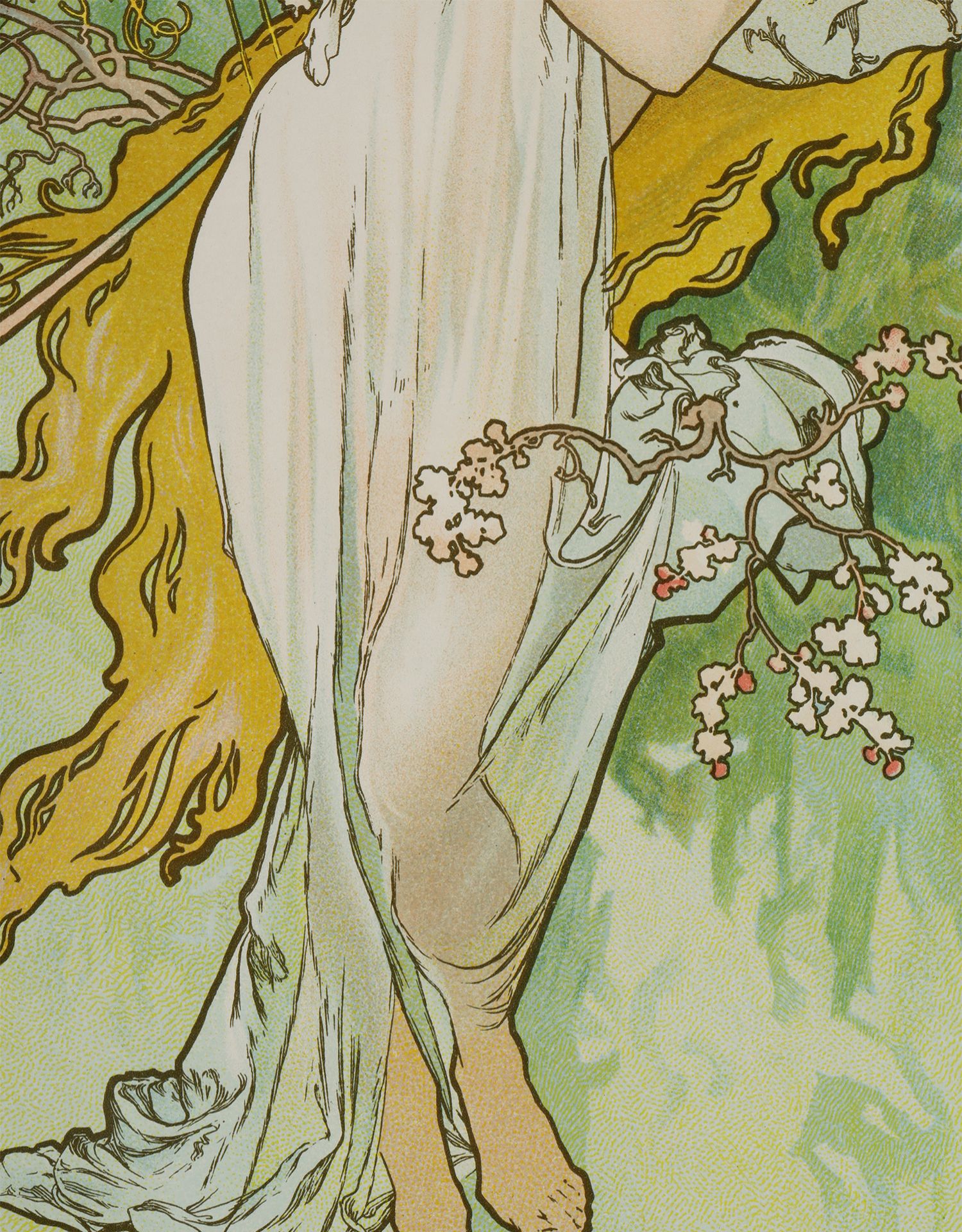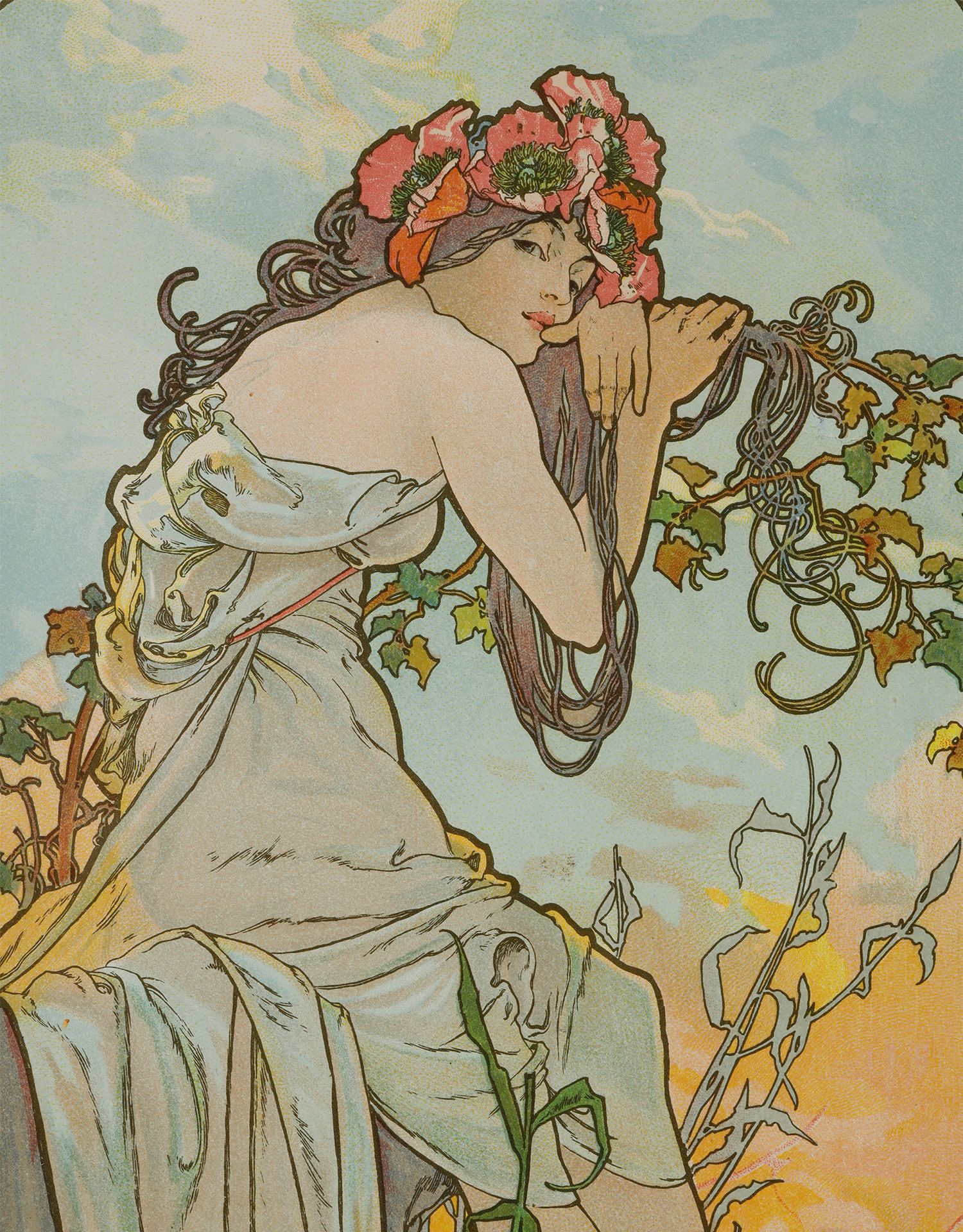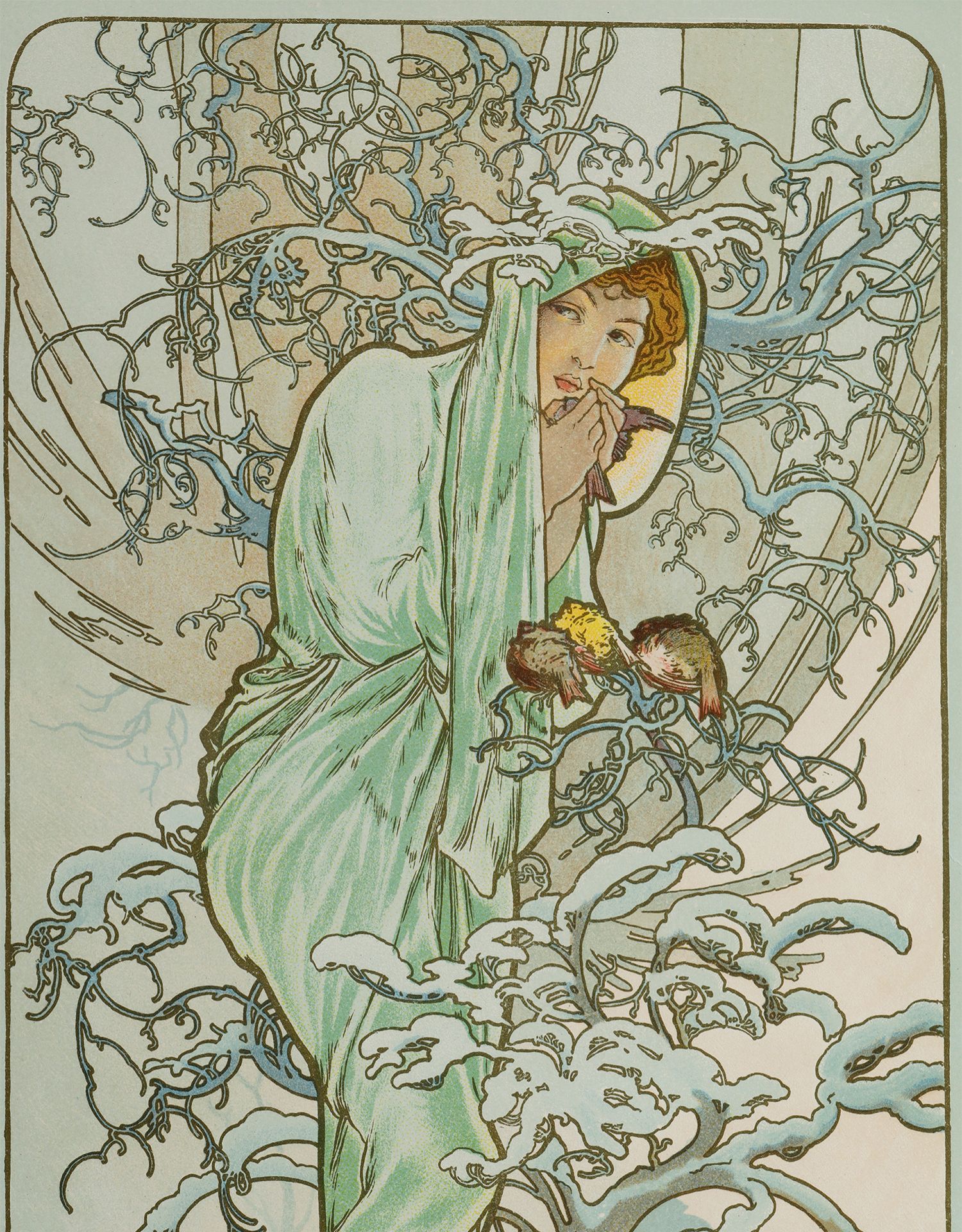 独角鹿西洋古董大师穆夏签名原版版画《四季Les Quatre Saisons》