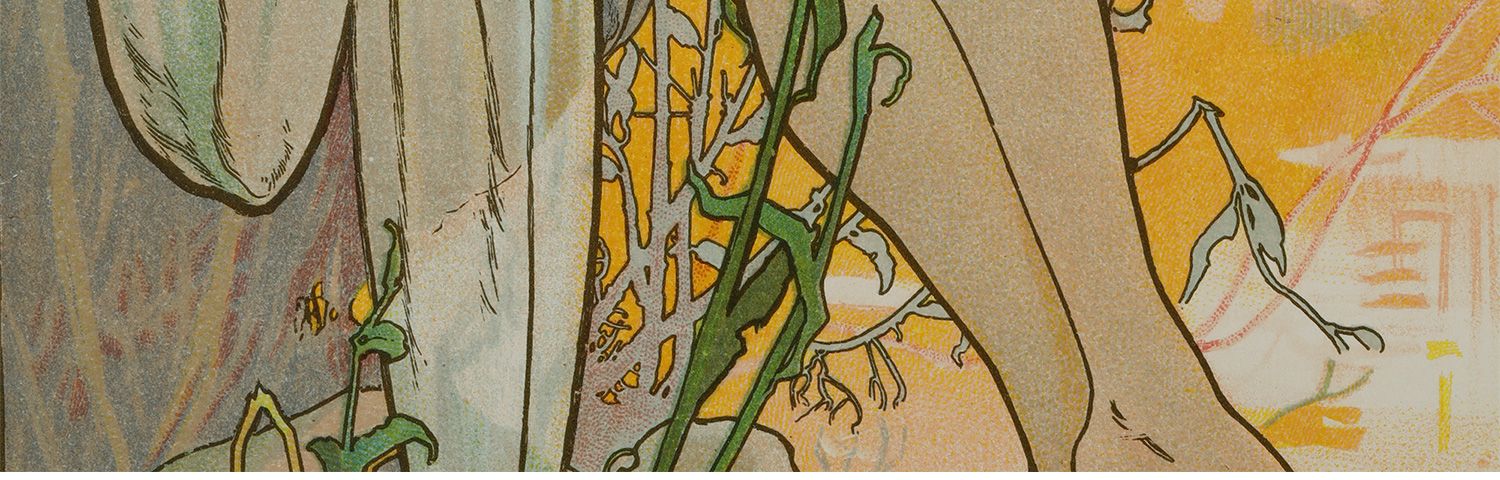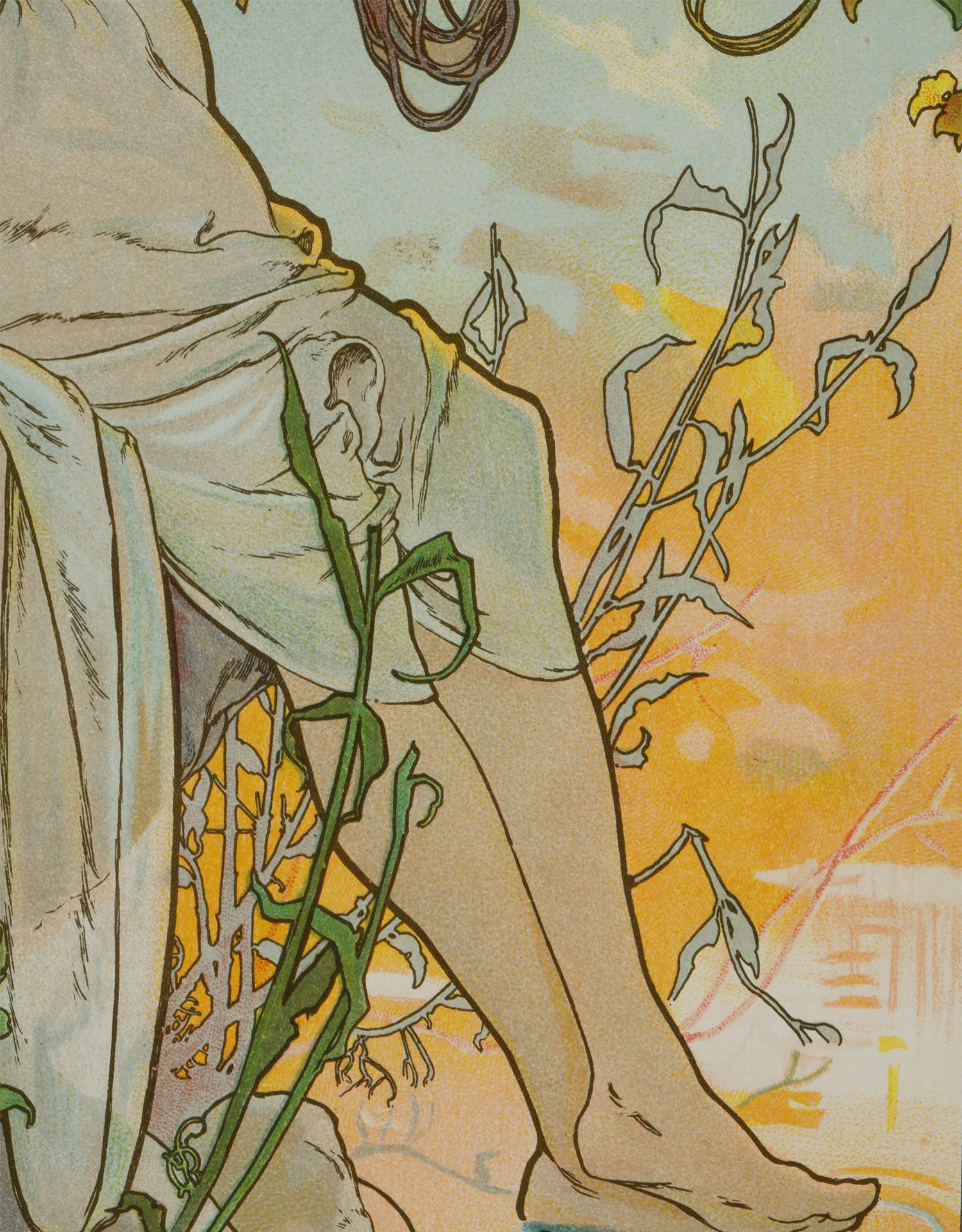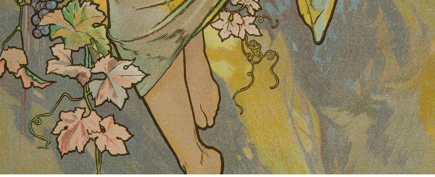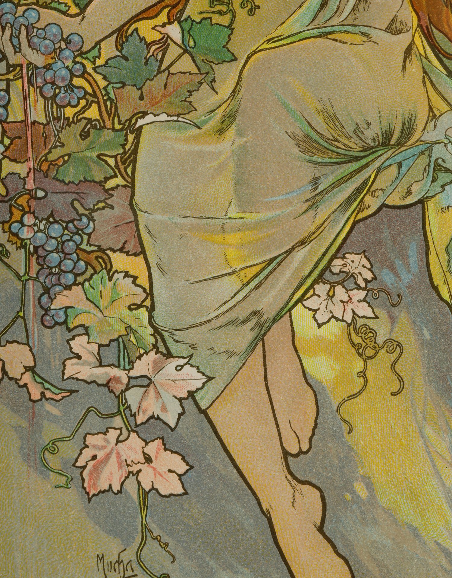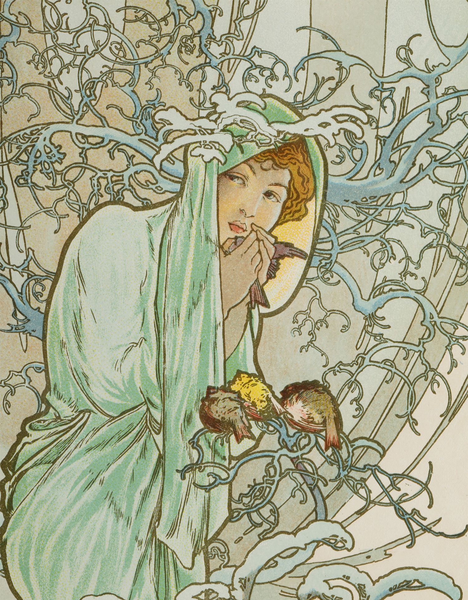 独角鹿西洋古董大师穆夏签名原版版画《四季Les Quatre Saisons》