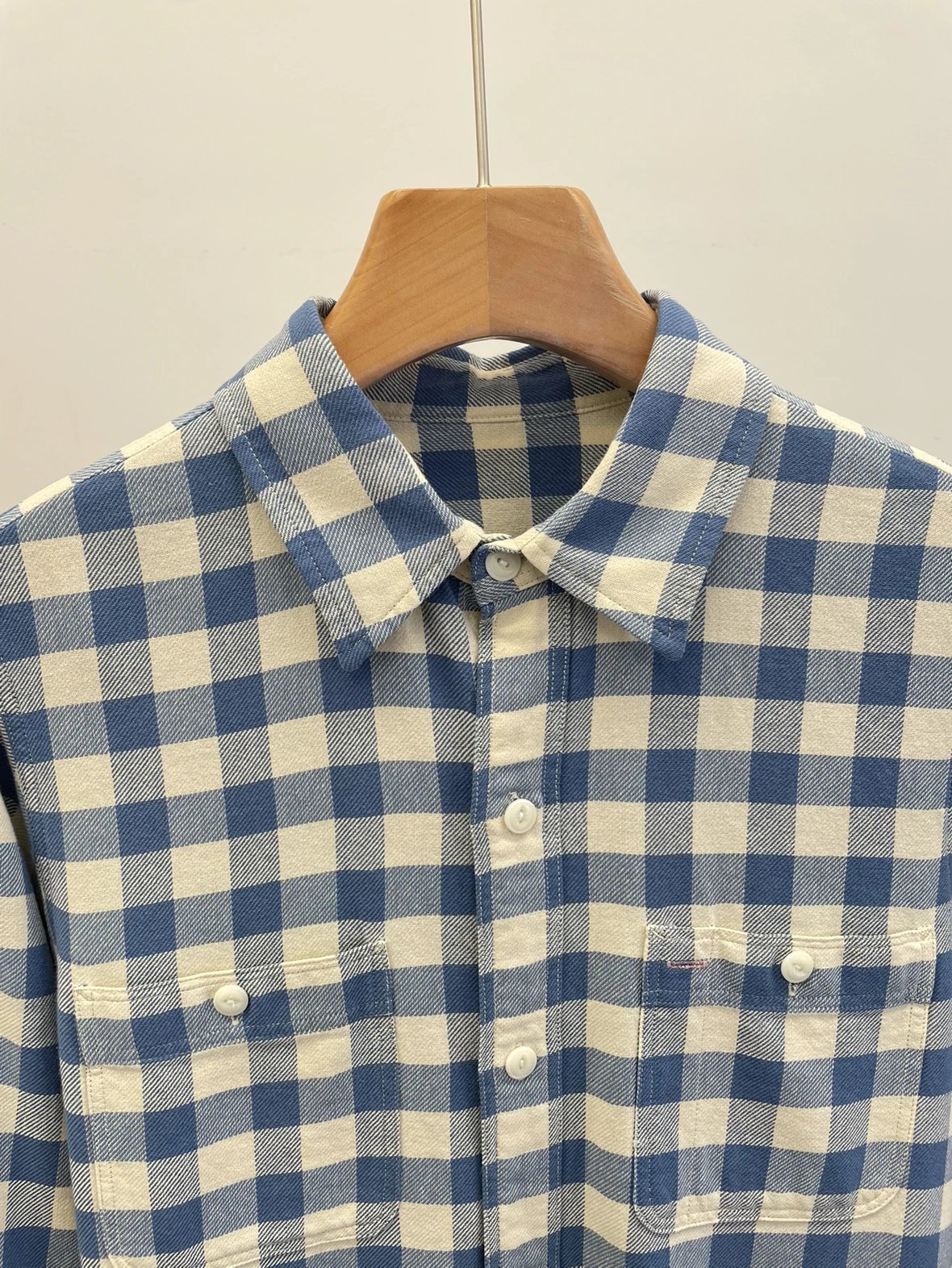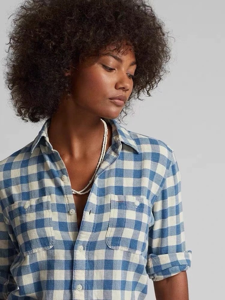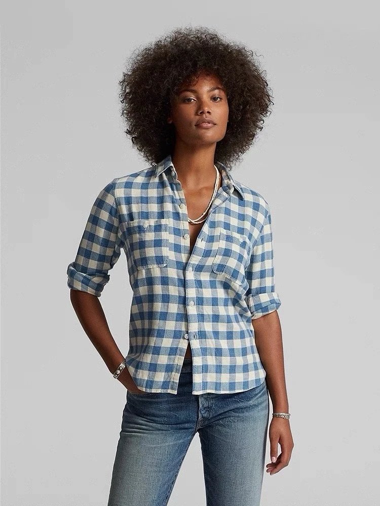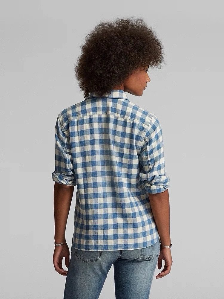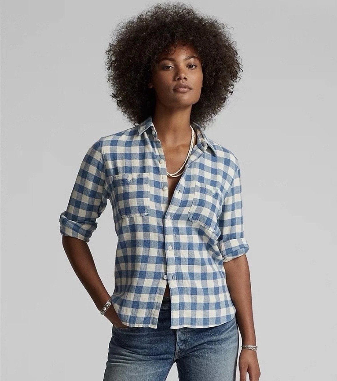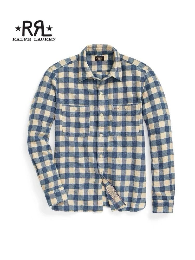 男女同款!rrl美式情侣衬衣 磨毛质感 10S长绒有机棉亚麻混纺