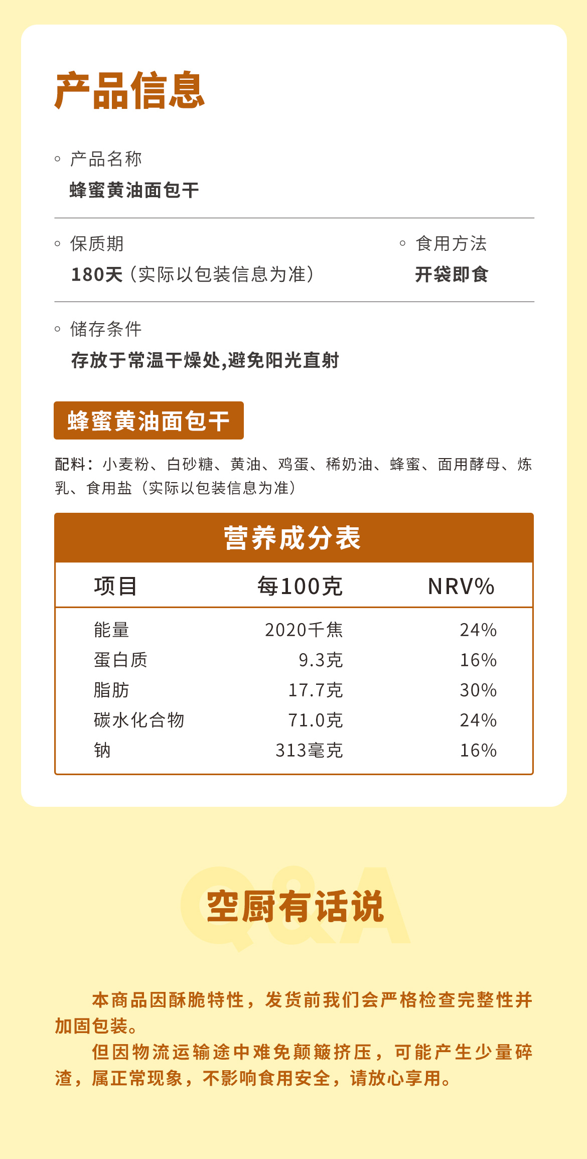 厦航空厨蜂蜜黄油面包干即食真吐司烘烤面包干