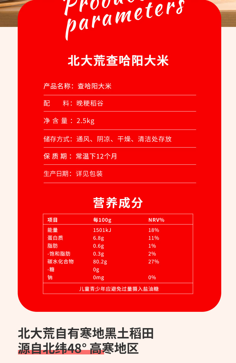 【北大荒】弱碱大米 东北大米2.5kg真空包装