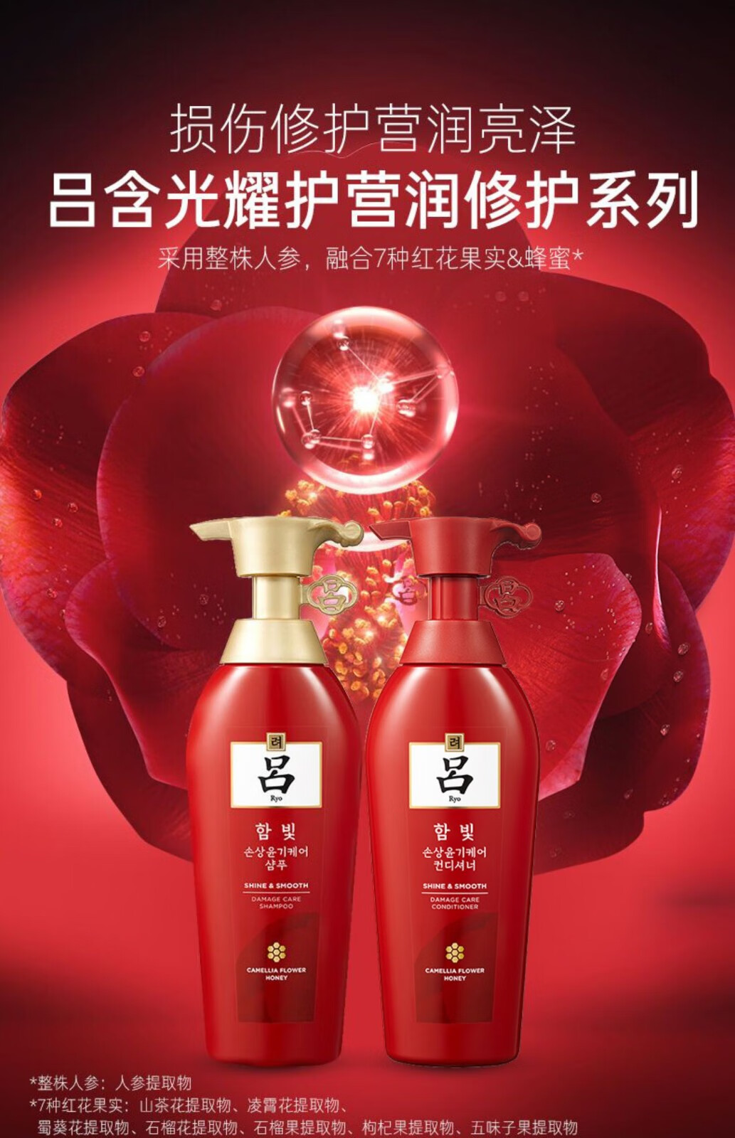 吕(Ryo)洗发水红吕烫染损伤亮泽柔顺洗发露提亮改善毛躁洗头膏 洗护套装400ml+400ml