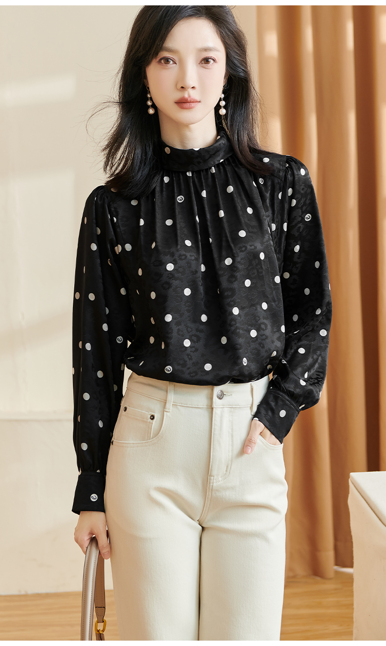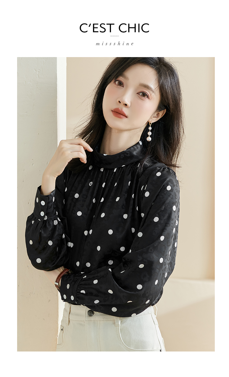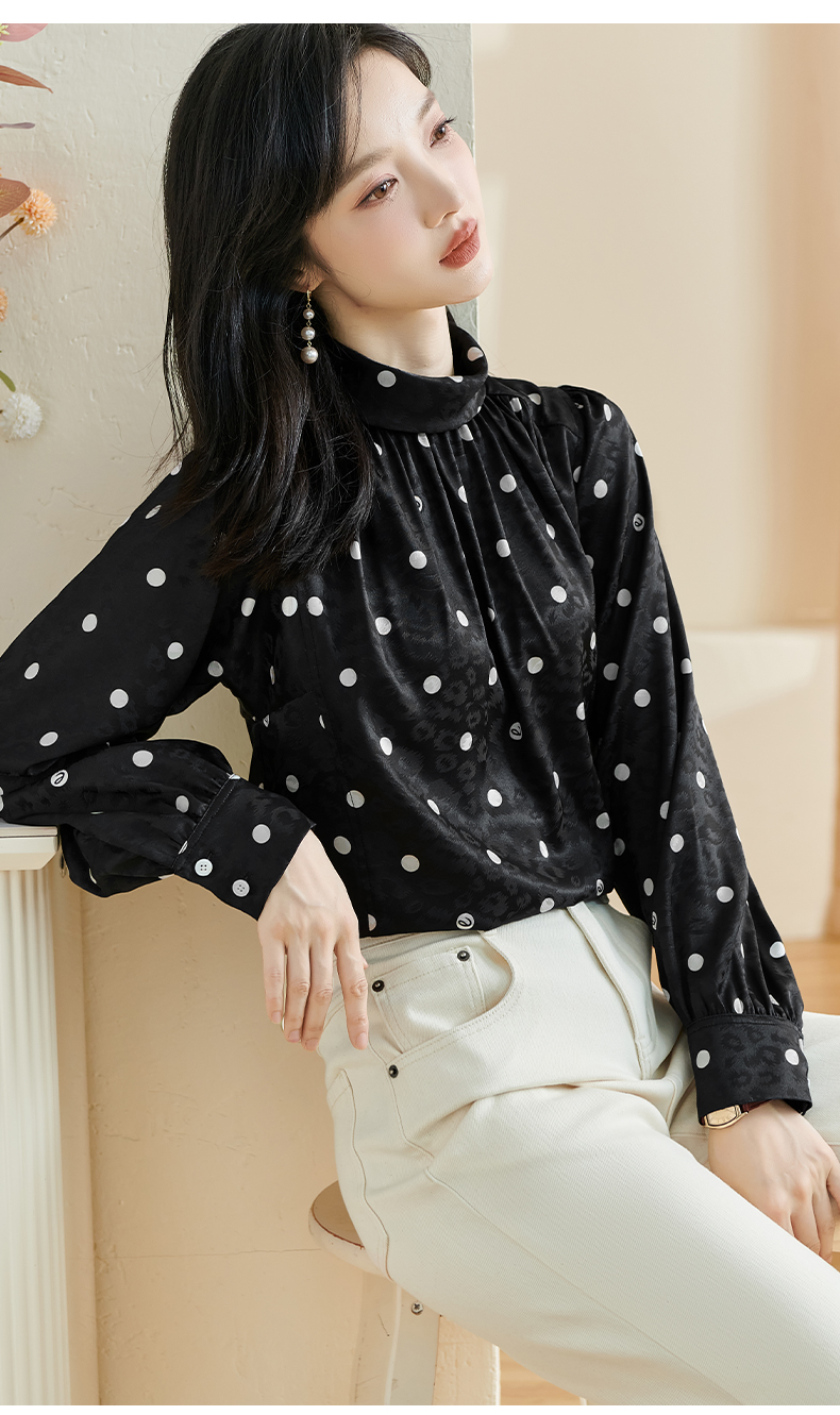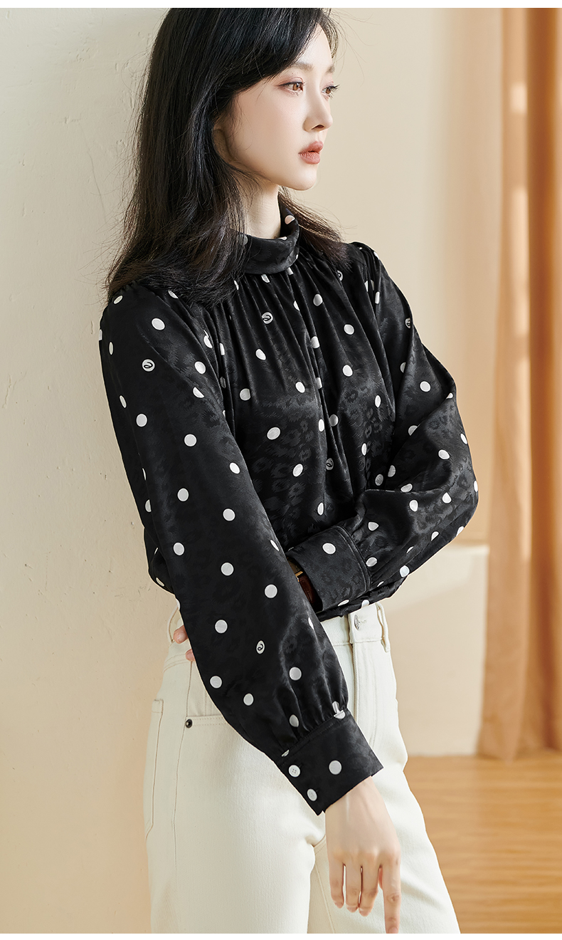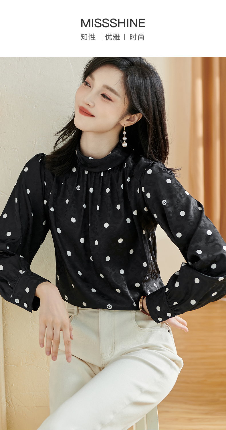 剩S 米思阳2024秋季新款时尚休闲印花衬衫提花波点半高领长袖上衣2369