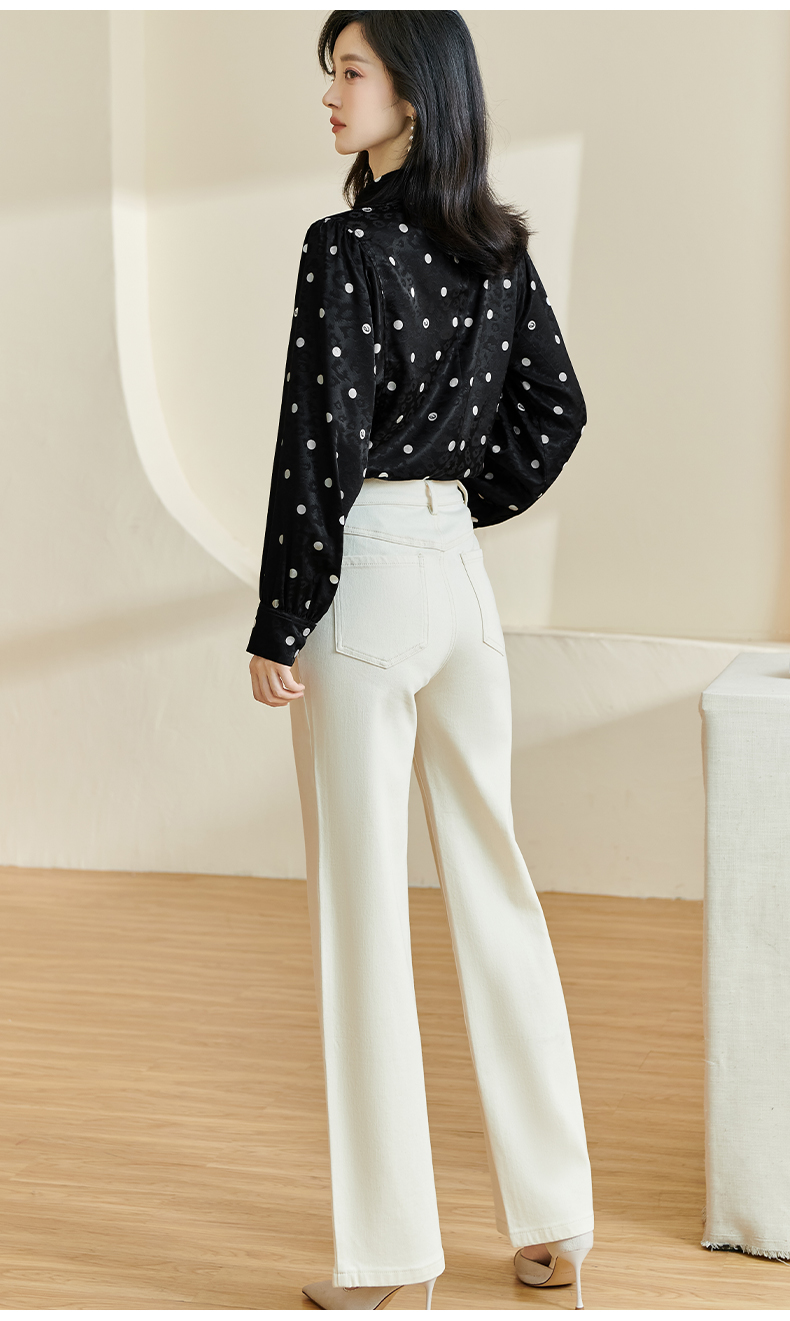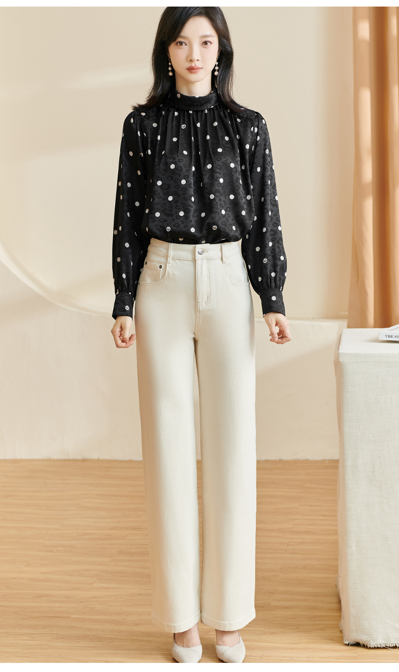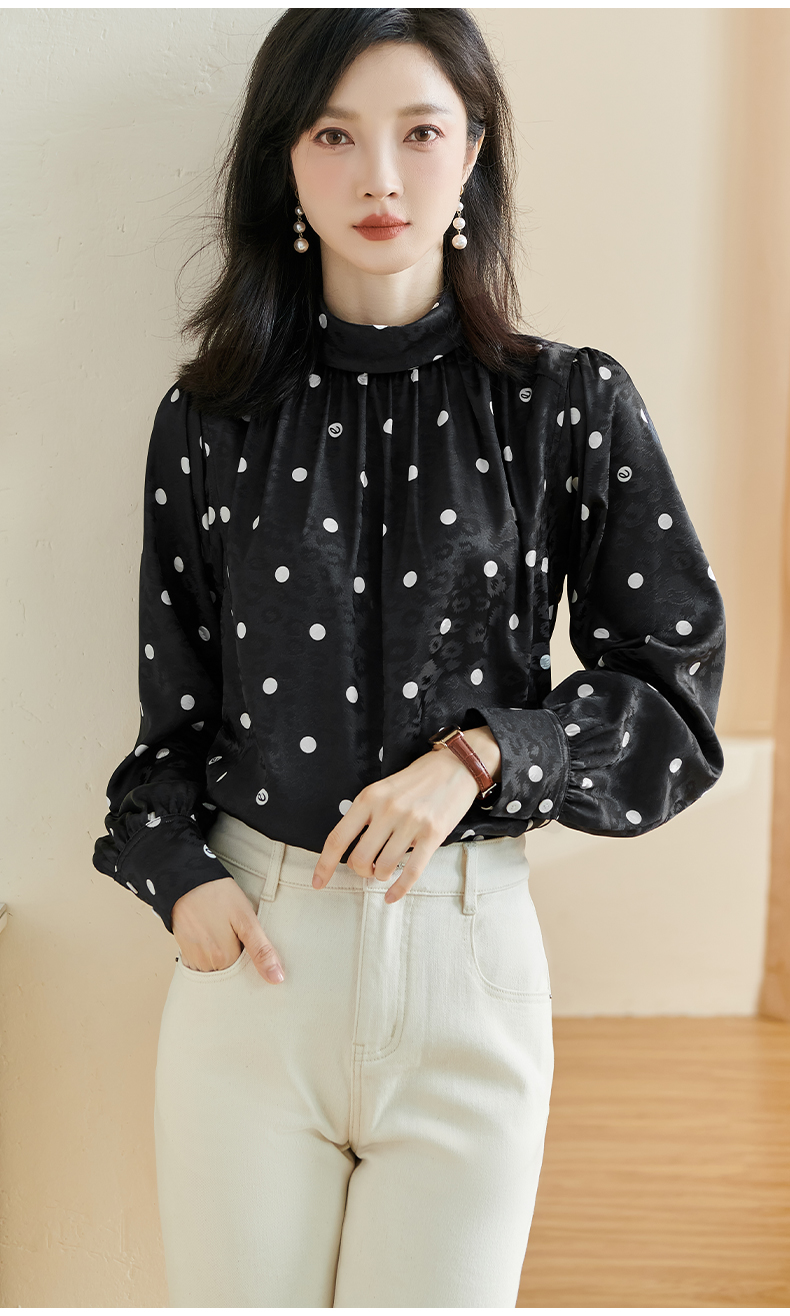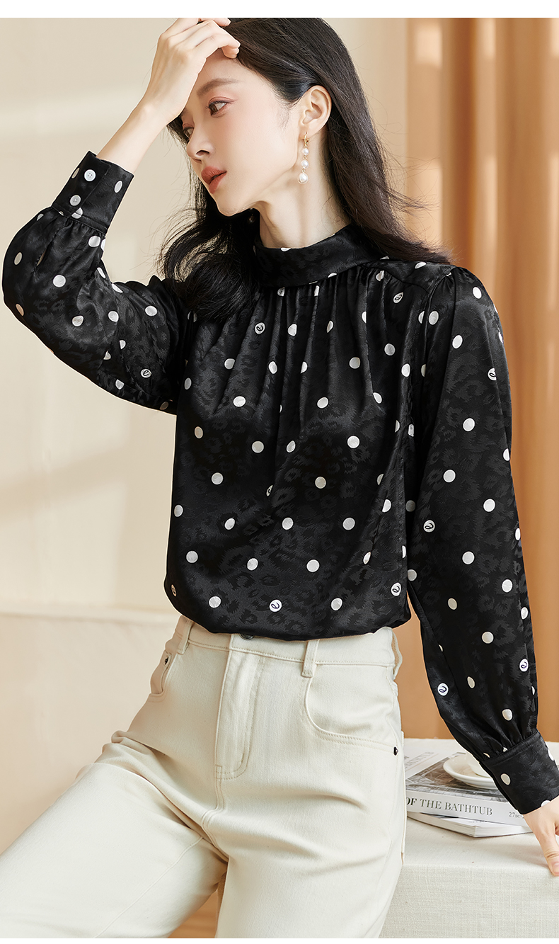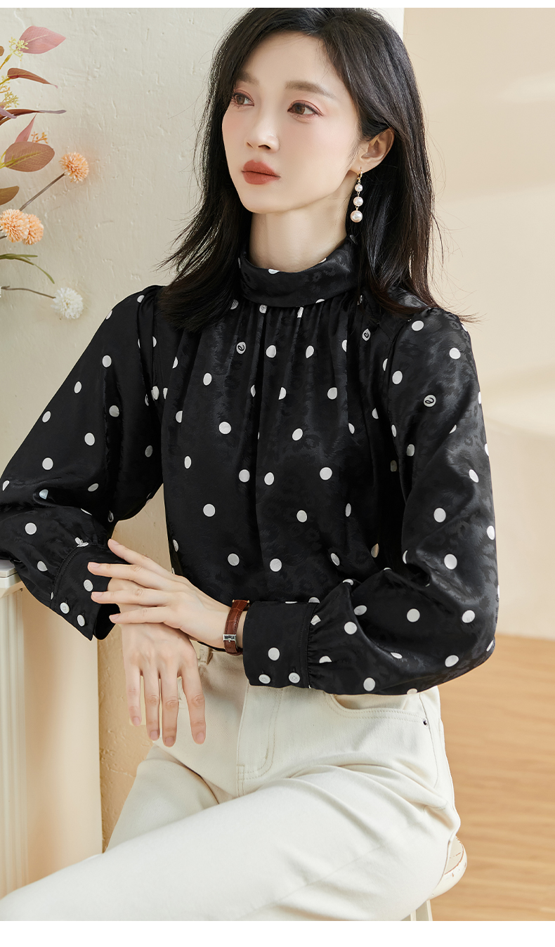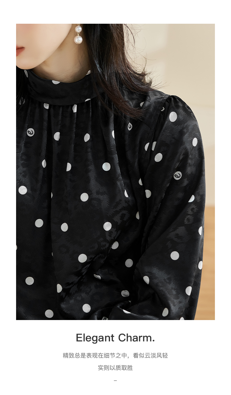 剩S 米思阳2024秋季新款时尚休闲印花衬衫提花波点半高领长袖上衣2369