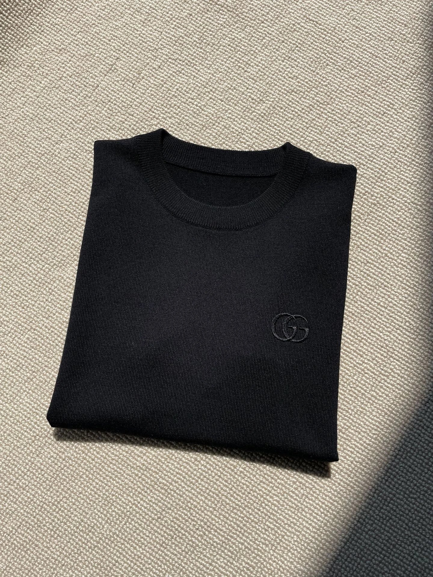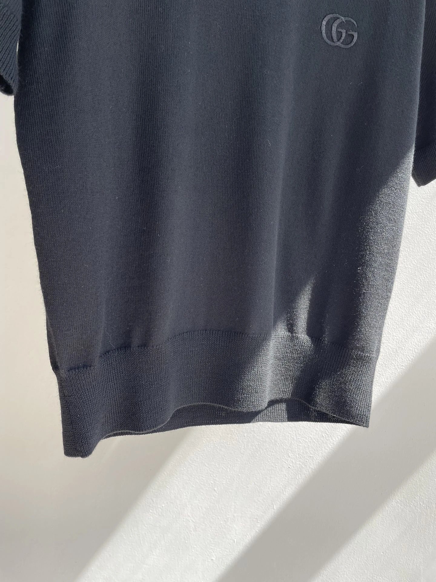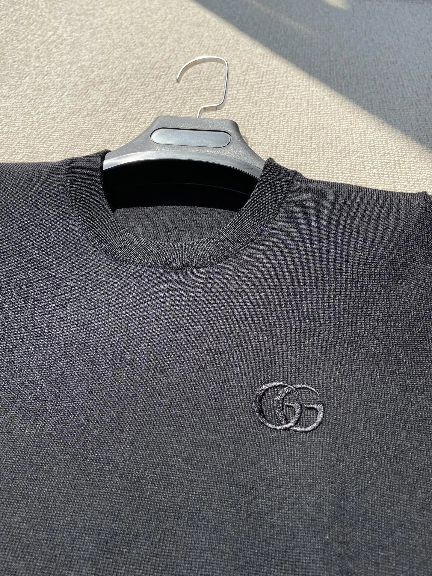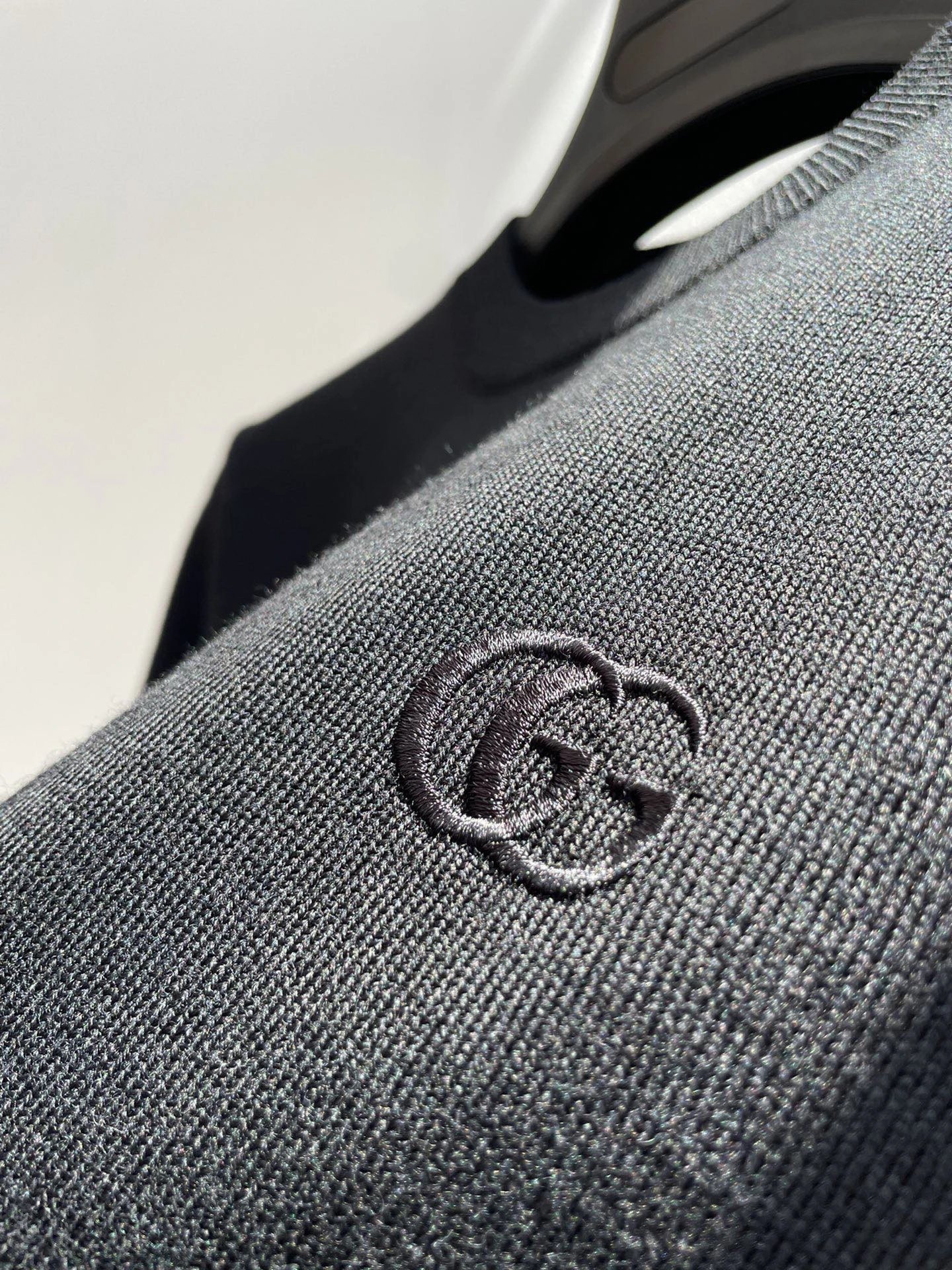重磅渠道 大G黑色徽标系列 刺绣羊毛开衫/圆领绵羊毛短袖套衫 意大利进口羊毛针织衫