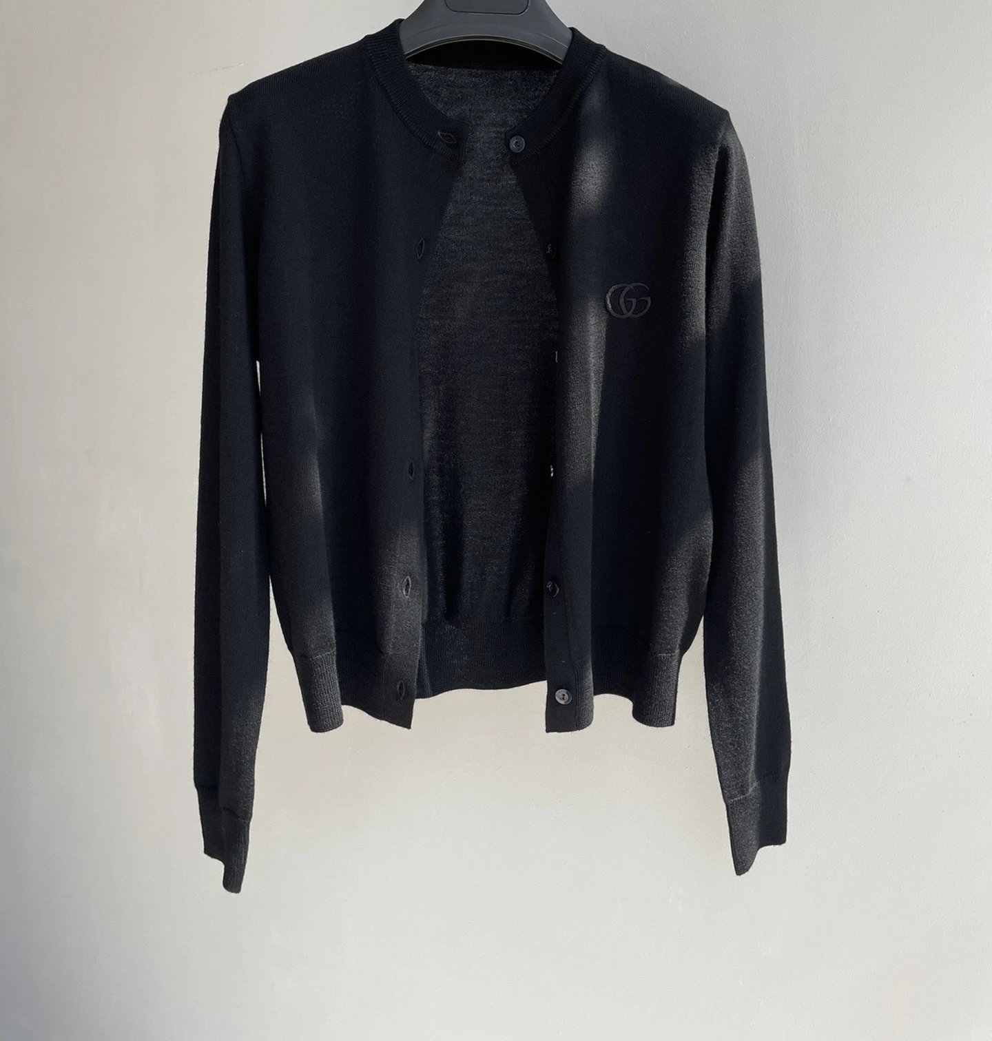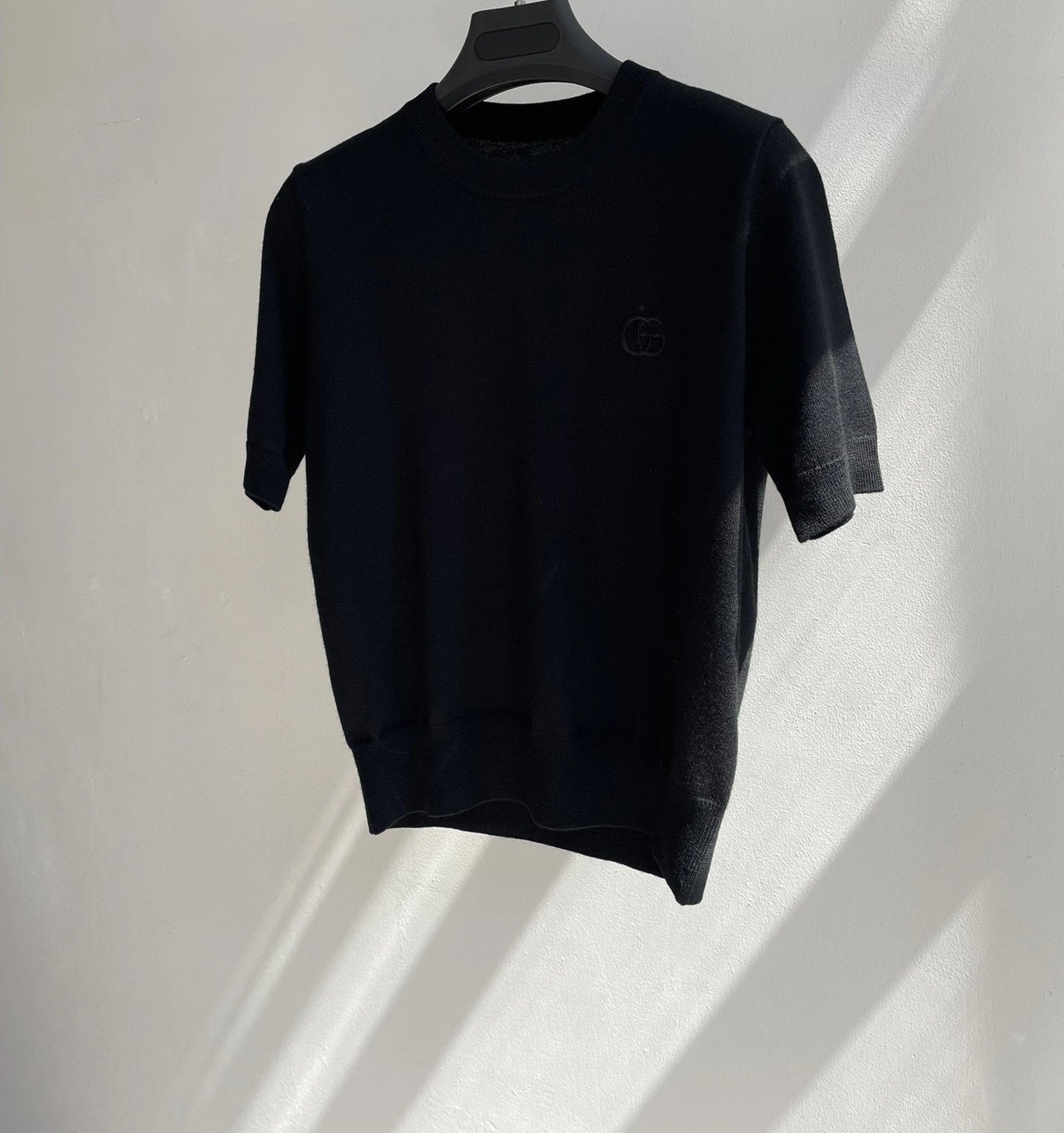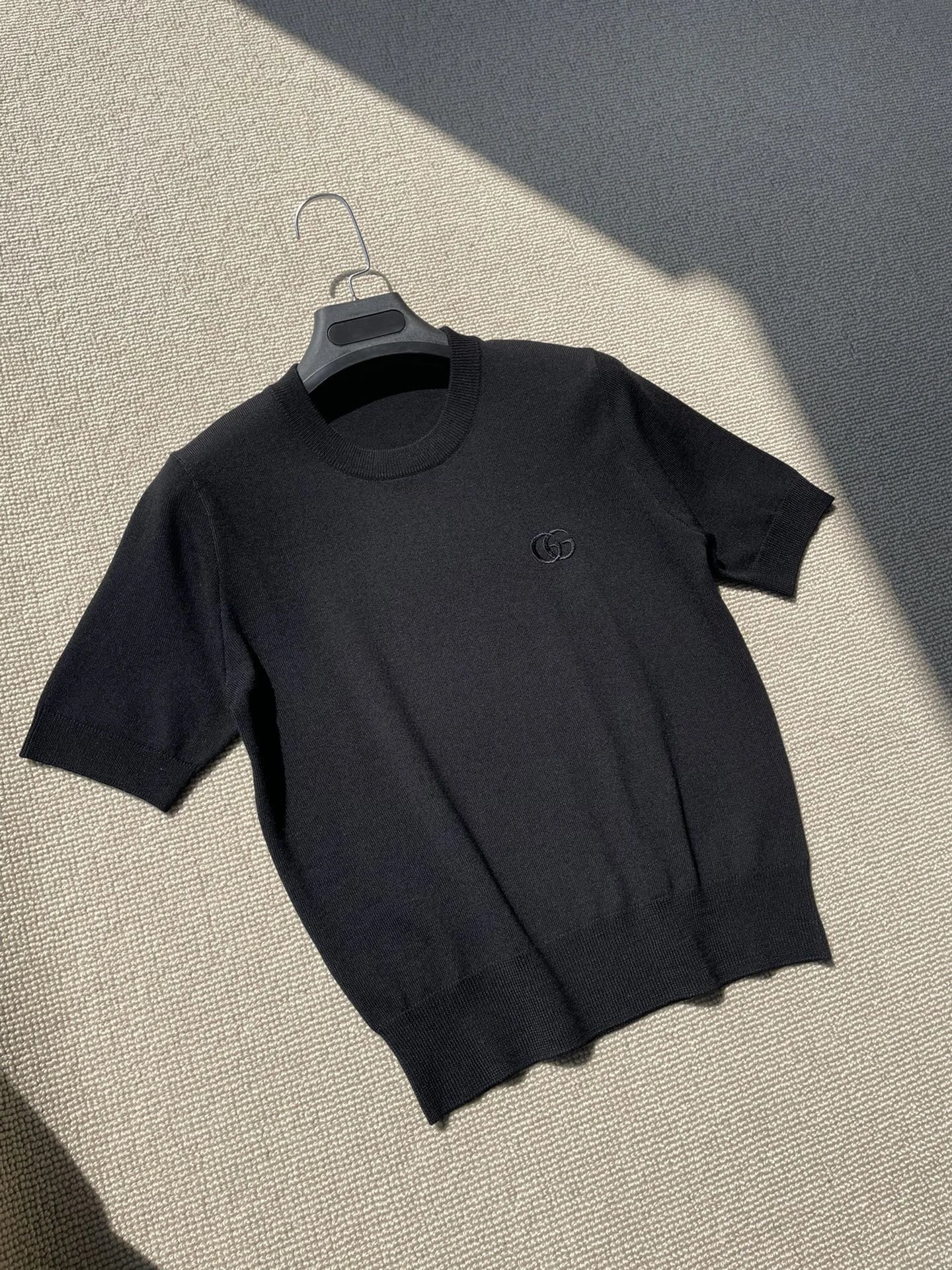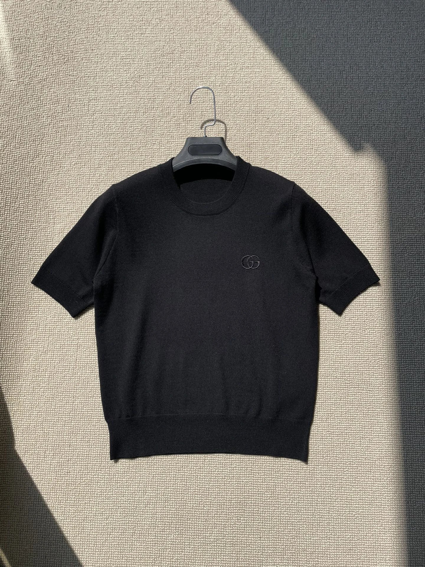 重磅渠道 大G黑色徽标系列 刺绣羊毛开衫/圆领绵羊毛短袖套衫 意大利进口羊毛针织衫