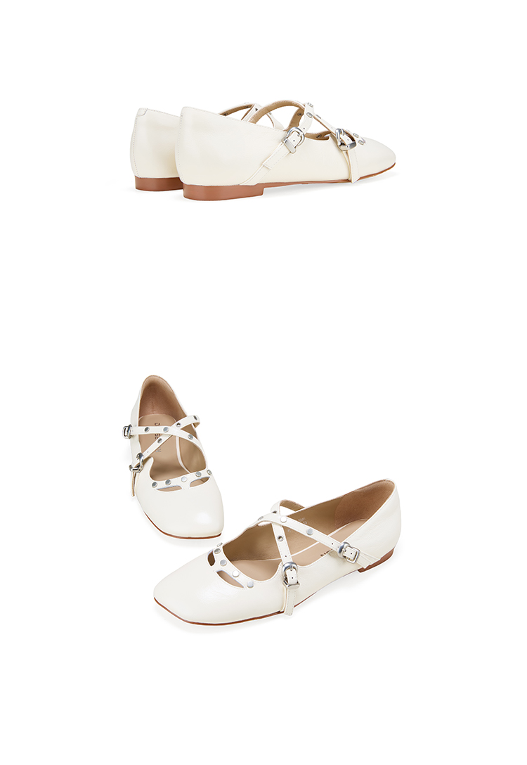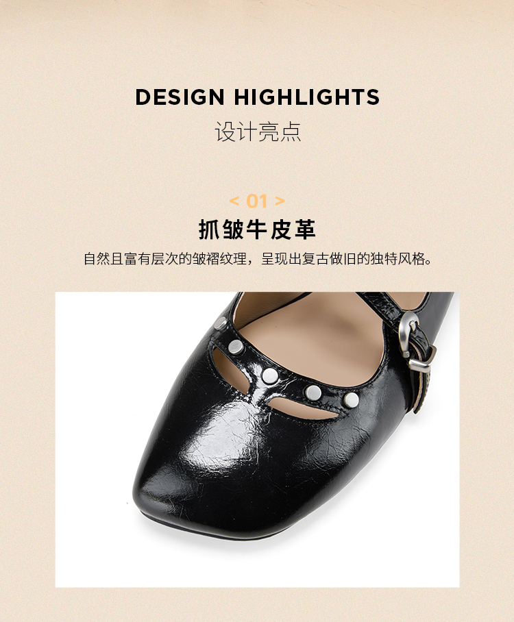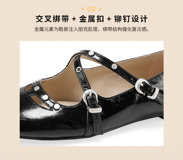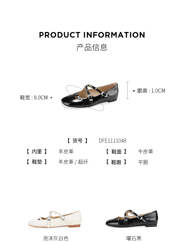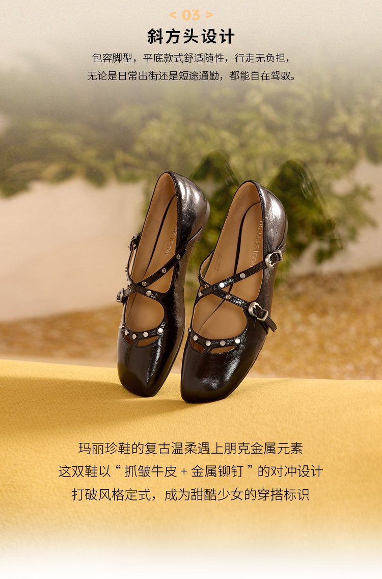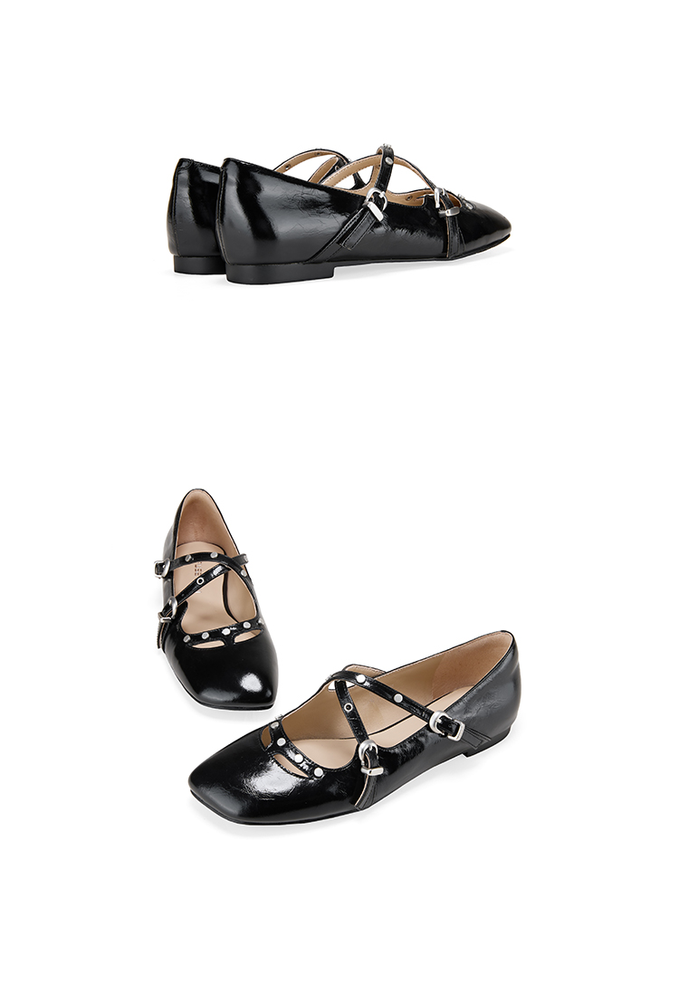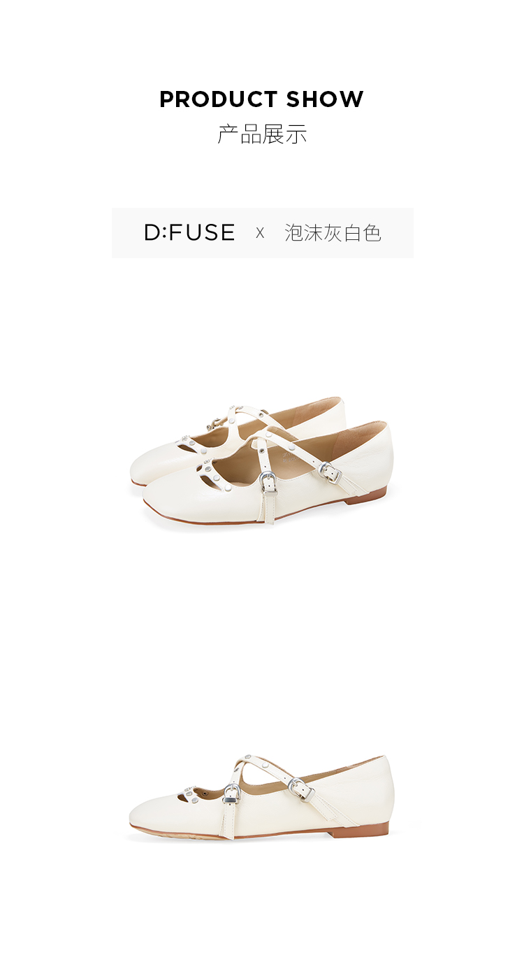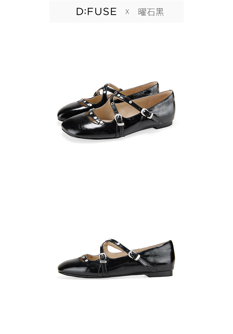 Dfuse迪芙斯2026春季新款尖头双条带铆钉甜酷朋克亮面漆皮单鞋平跟鞋DFE1111048