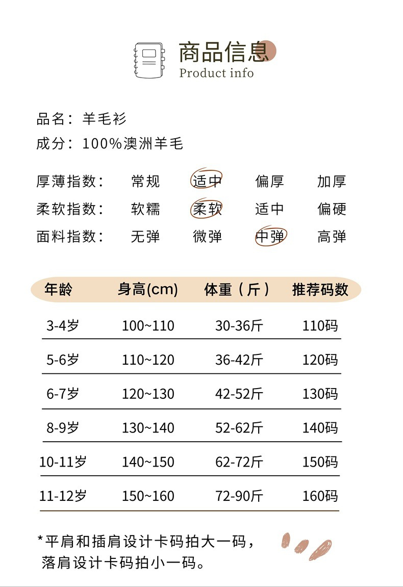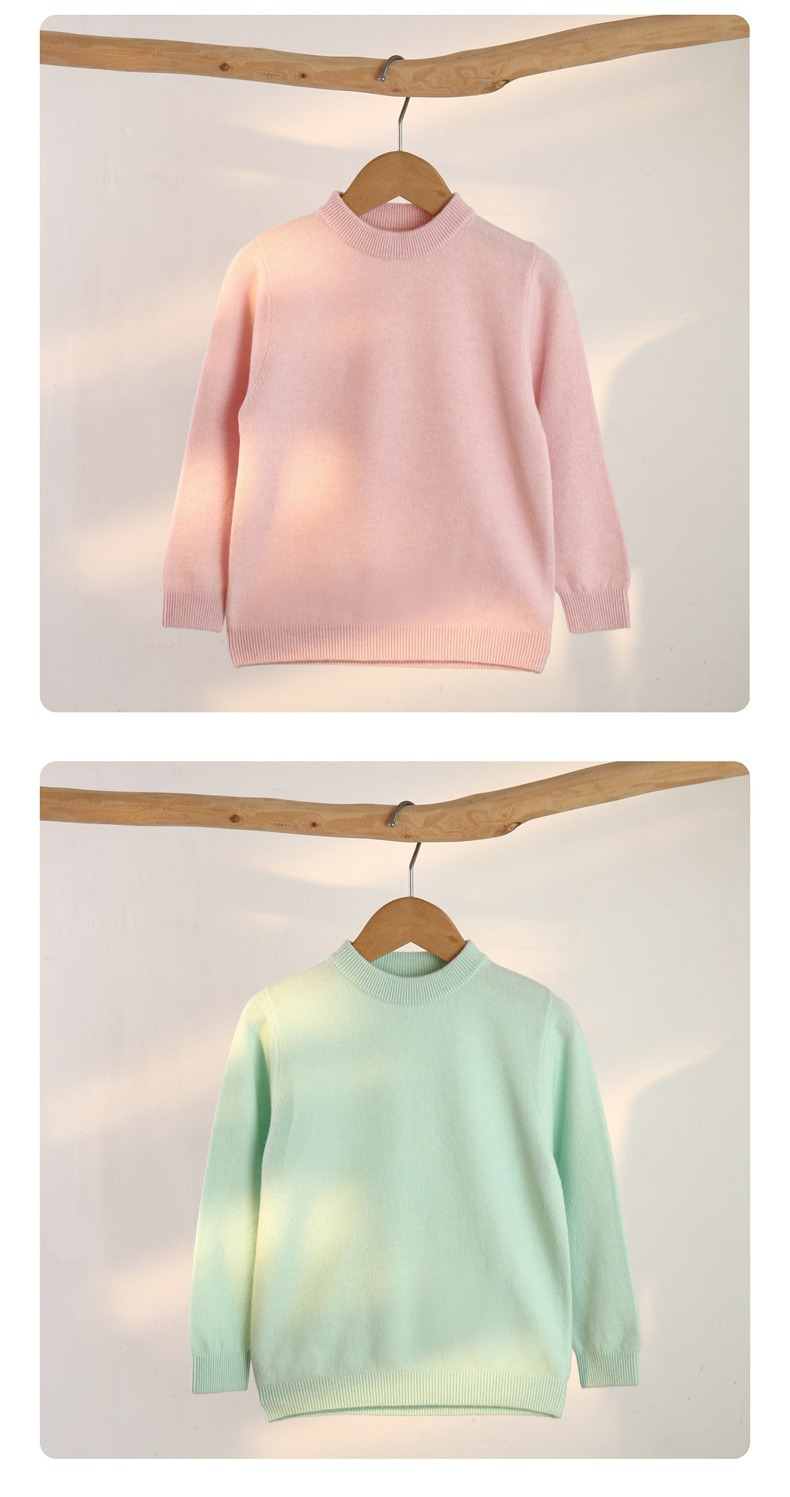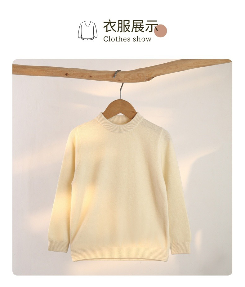 恒源祥【100%澳洲绵羊毛】冬季中大童圆领羊毛衫纯色百搭男女童打底衫