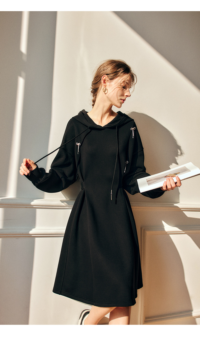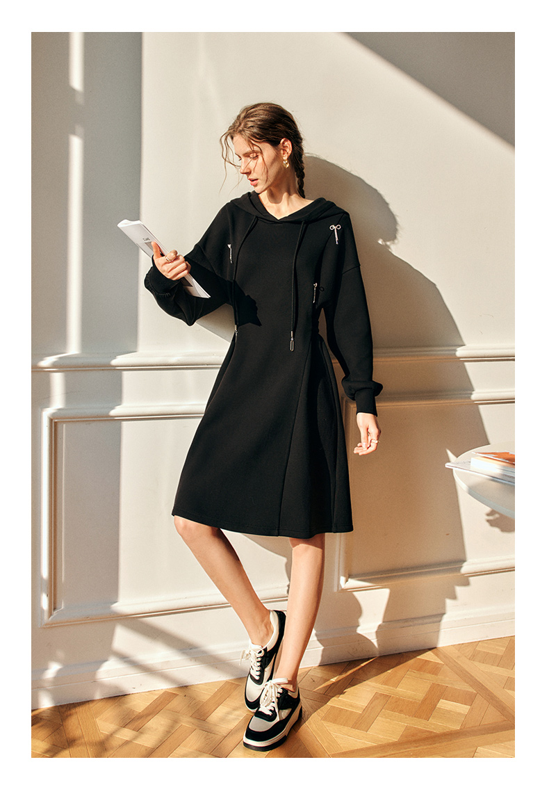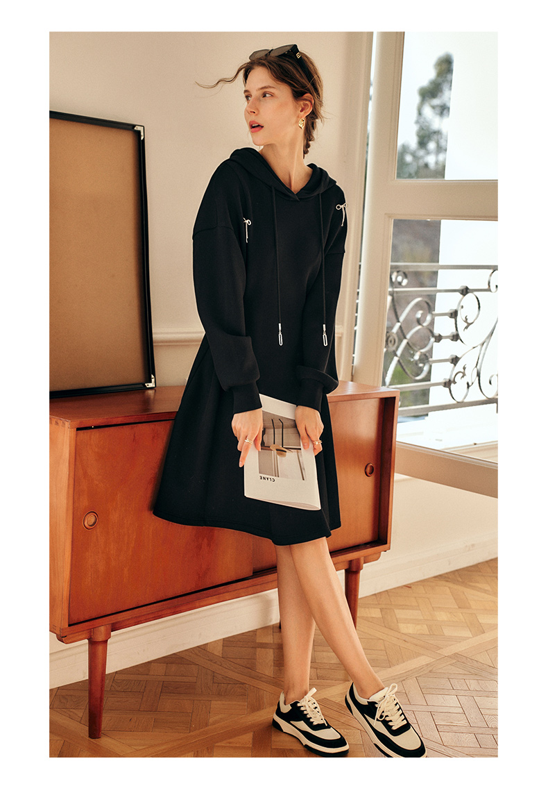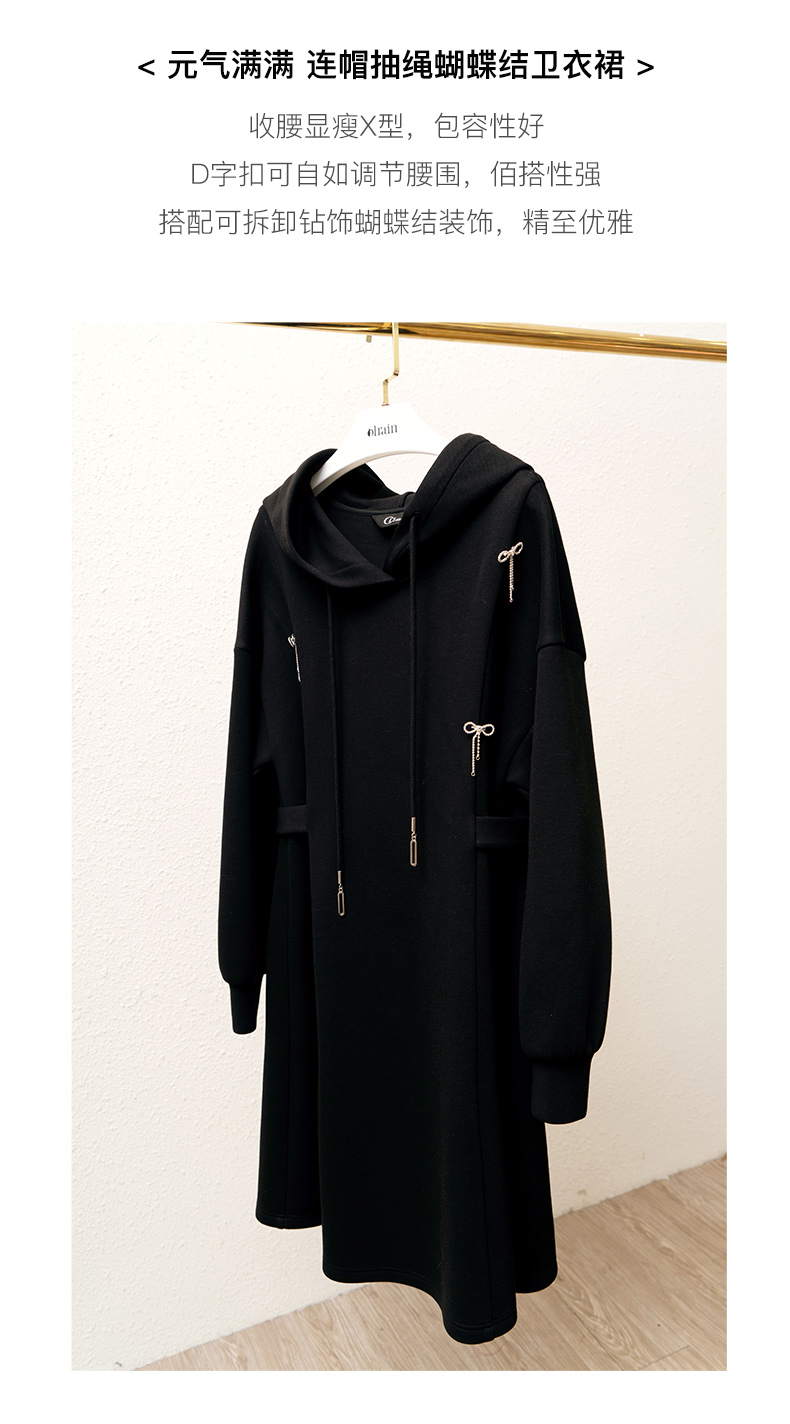 欧芮儿中长款连衣裙女秋季2022新款收腰法式气质针织休闲卫衣裙