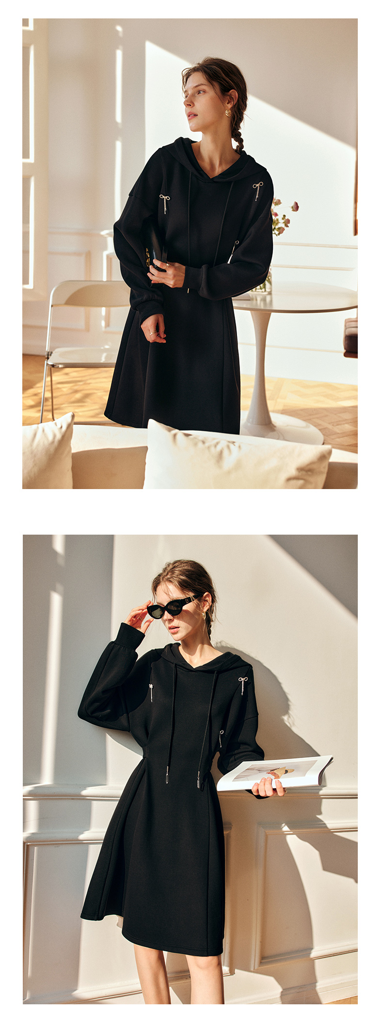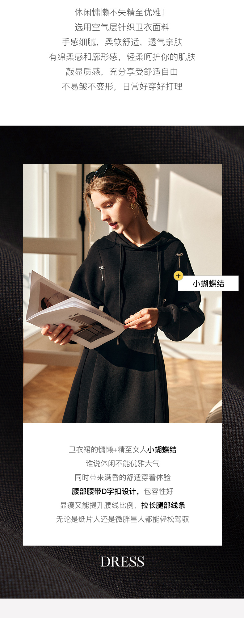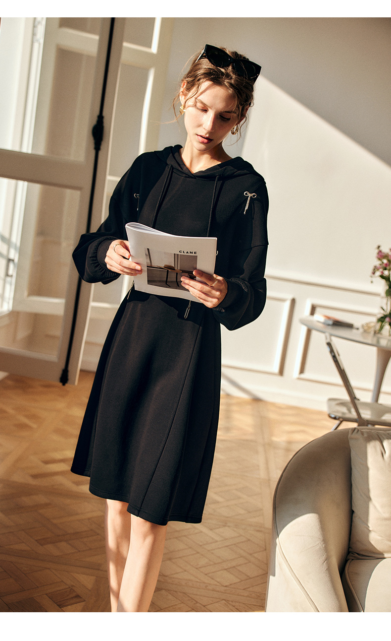 欧芮儿中长款连衣裙女秋季2022新款收腰法式气质针织休闲卫衣裙