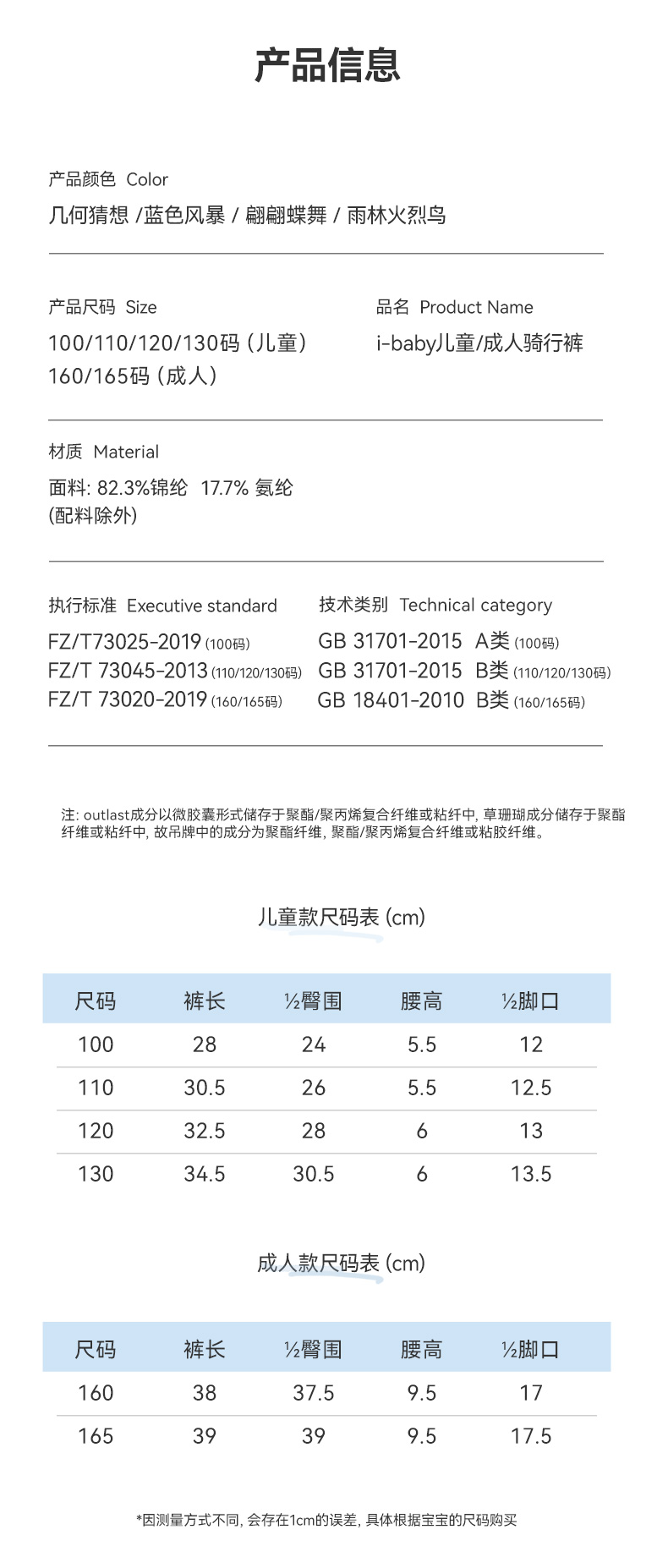 【58元任选2件单件不退】i-baby/英伦宝贝儿童凉感骑行裤 五分裤夏款 户外运动裤 亲子裤夏季薄