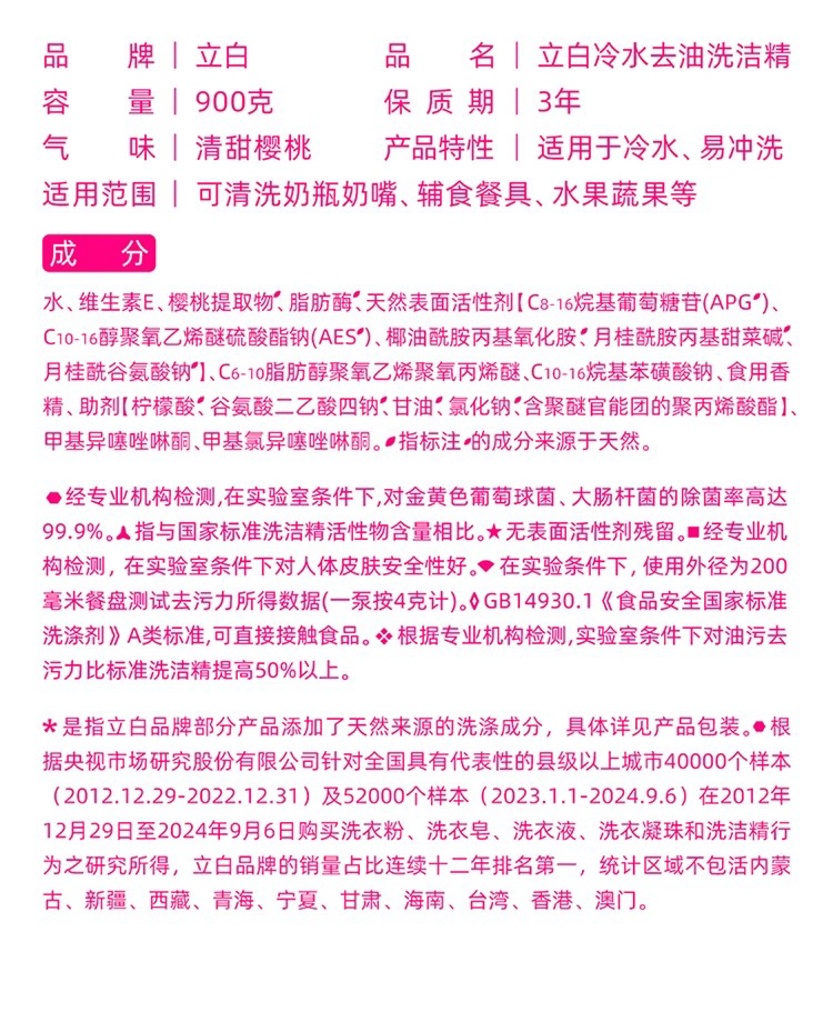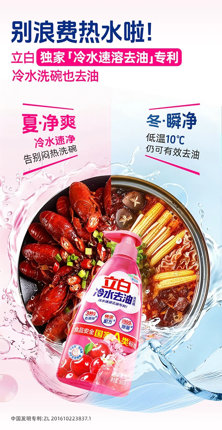 立白冷水去油洗洁精900g*2瓶