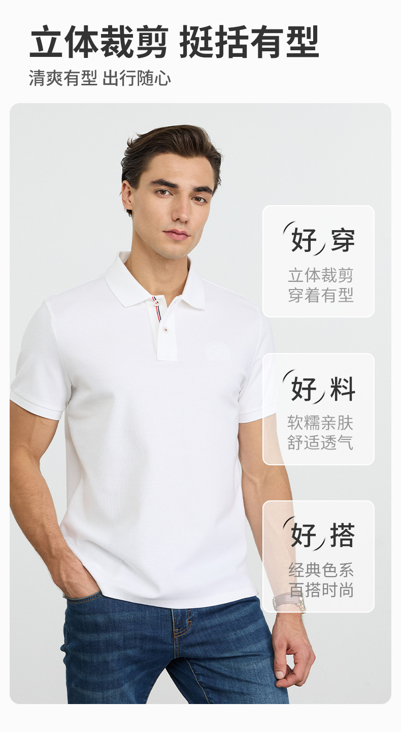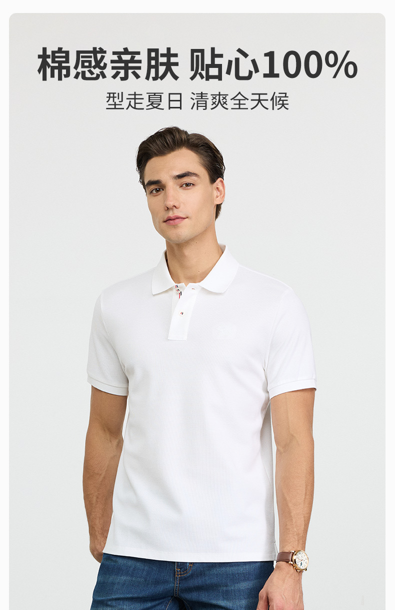 【纯棉舒适】德鲨白色短袖POLO衫男2026夏款休闲百搭上衣翻领T恤