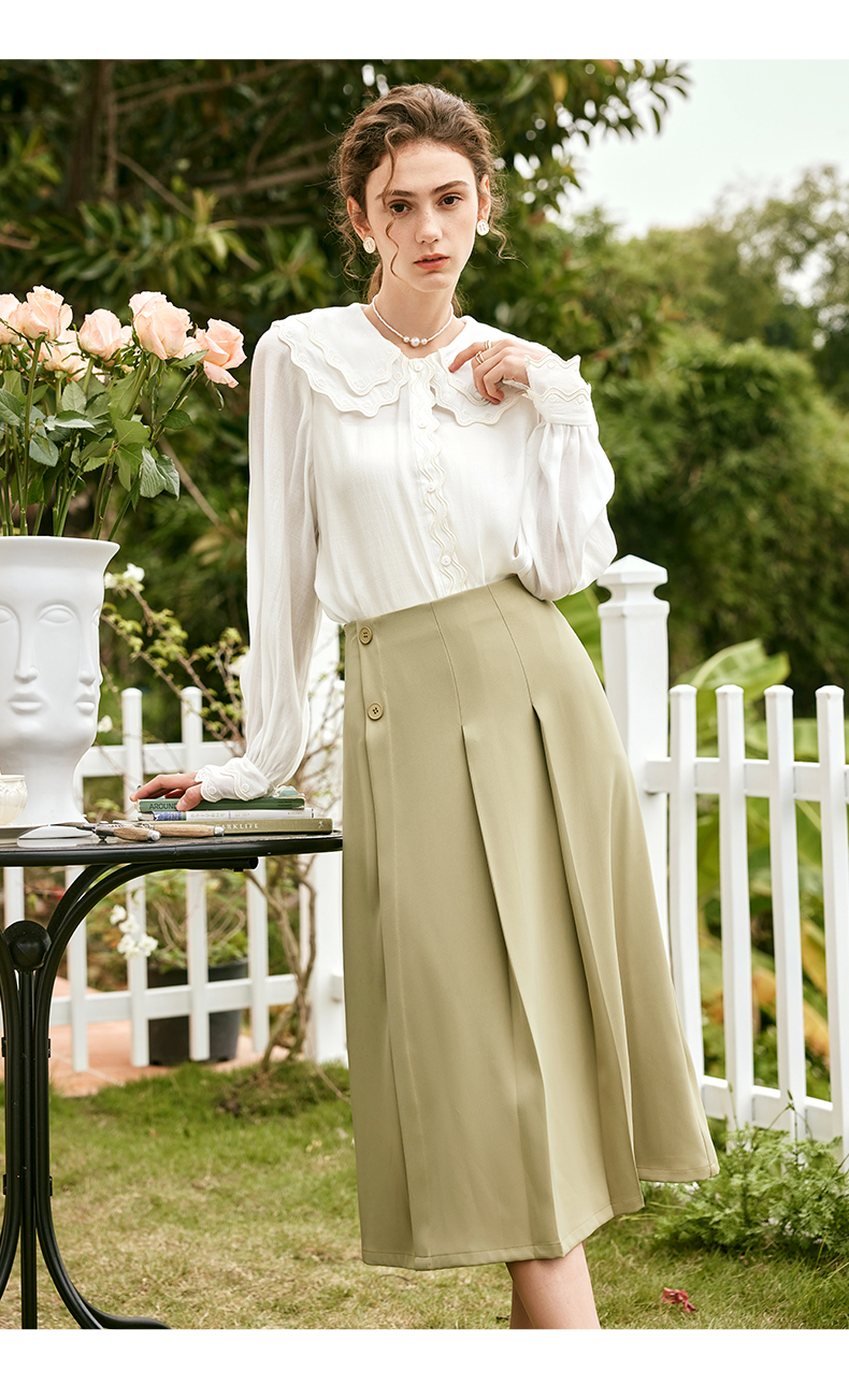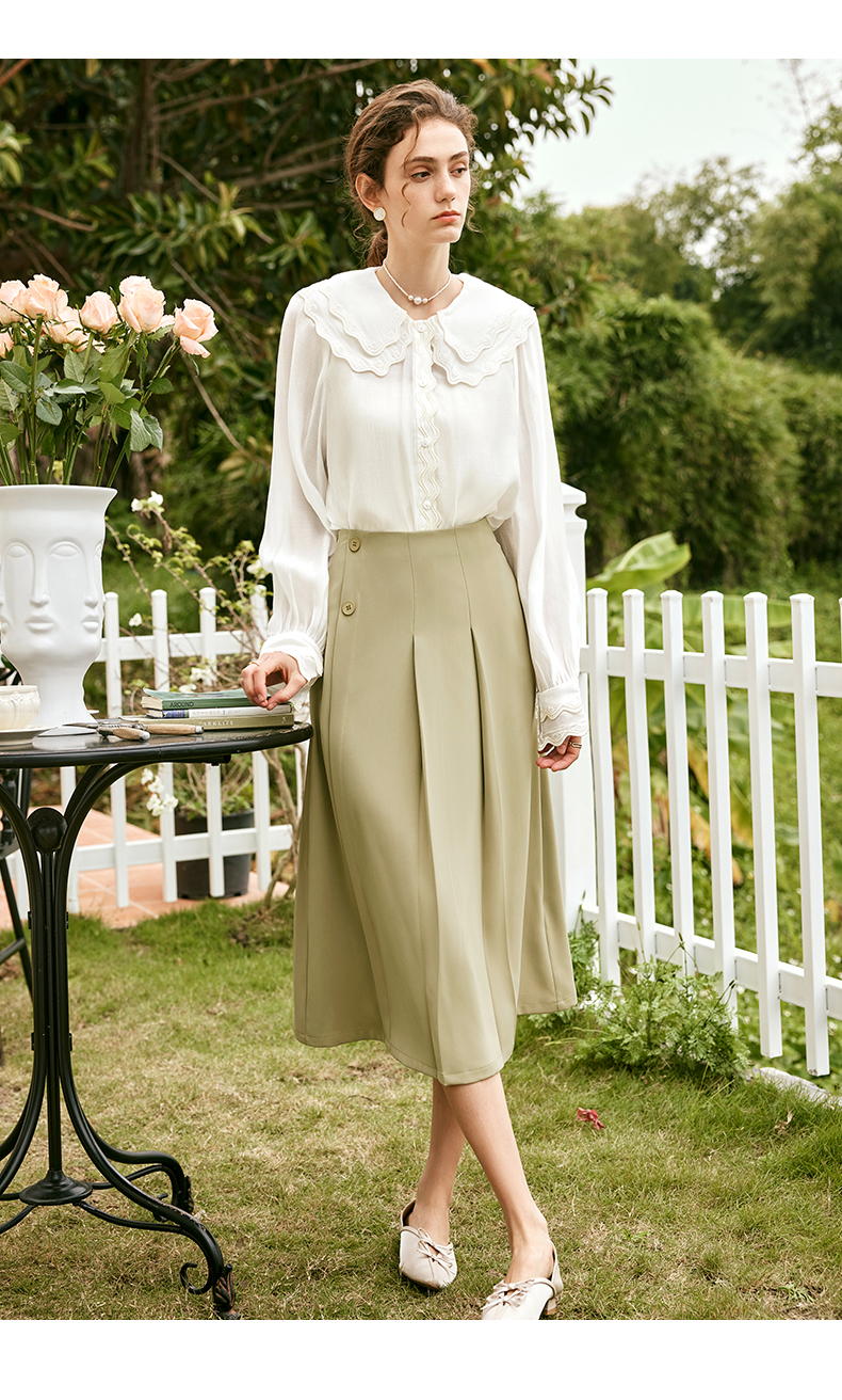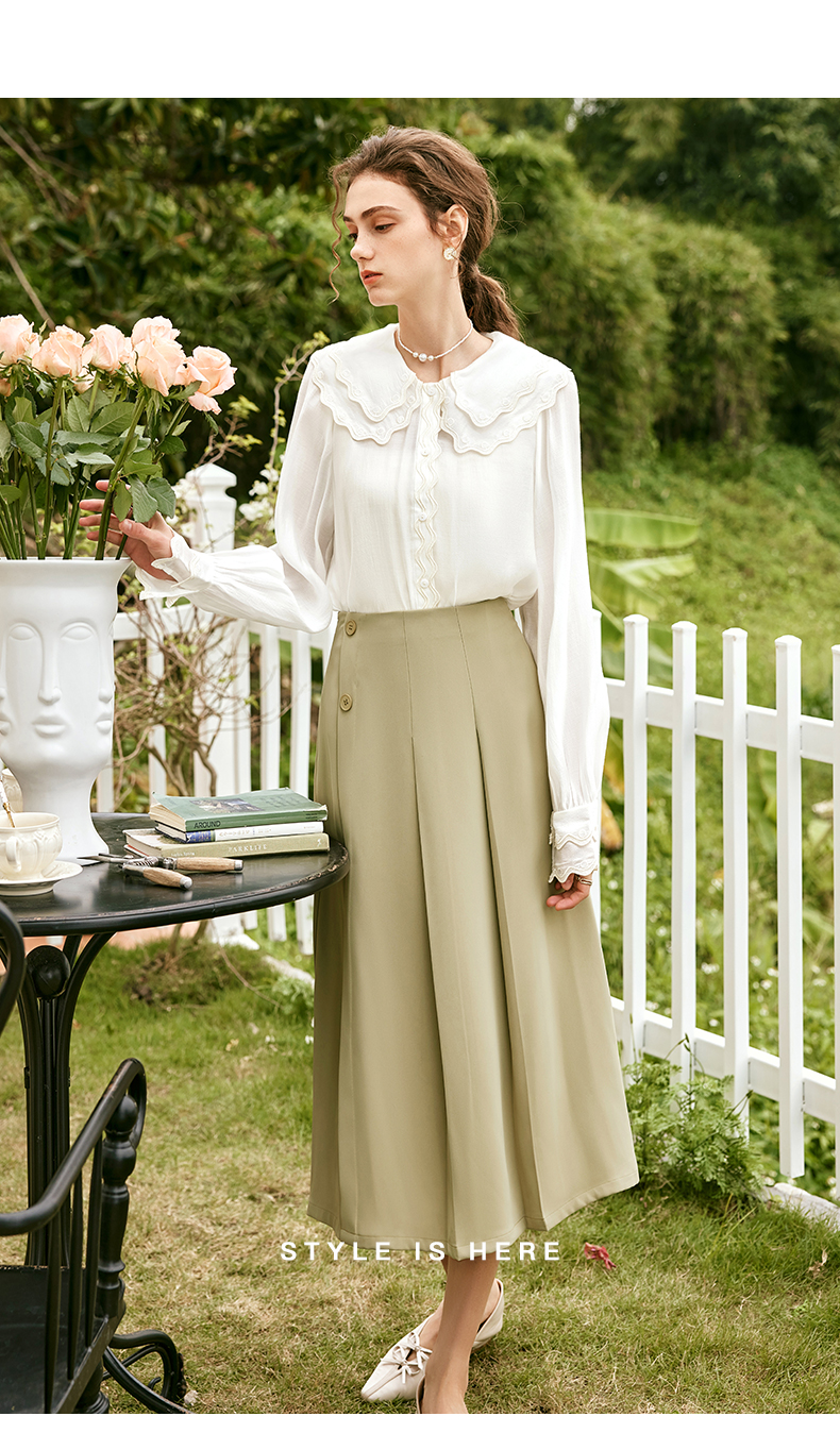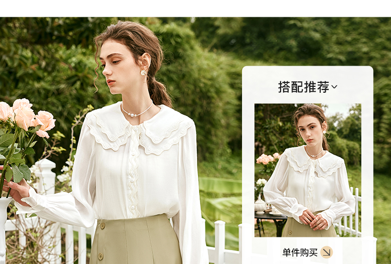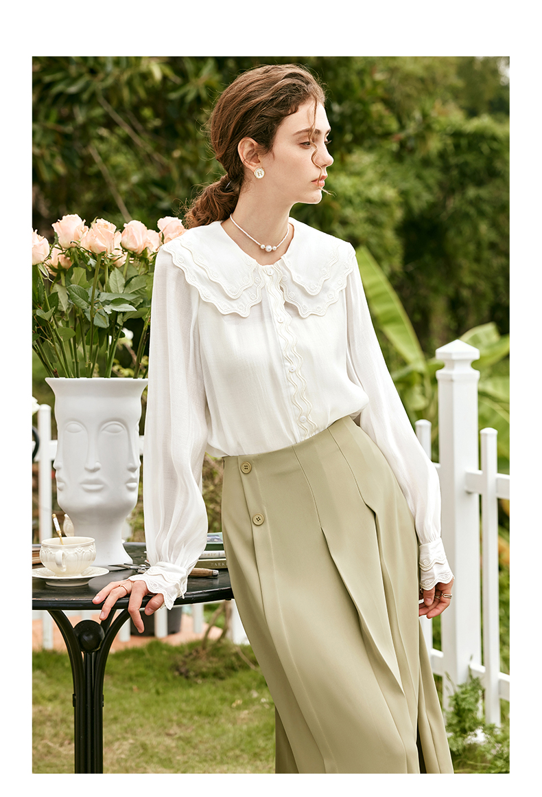 OLrain欧芮儿法式雪纺蕾丝衫女春季2023年新款刺绣翻领高级感上衣