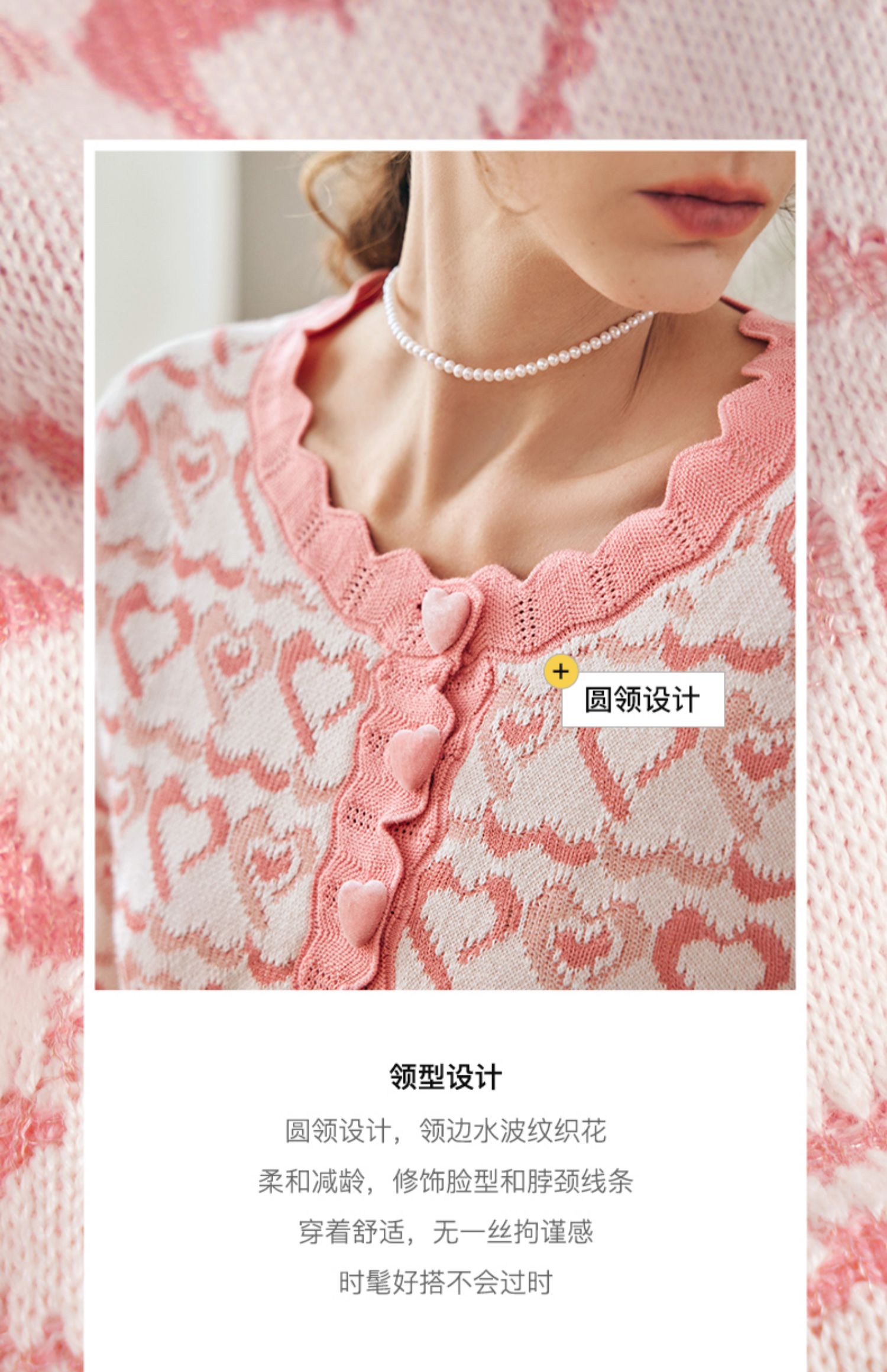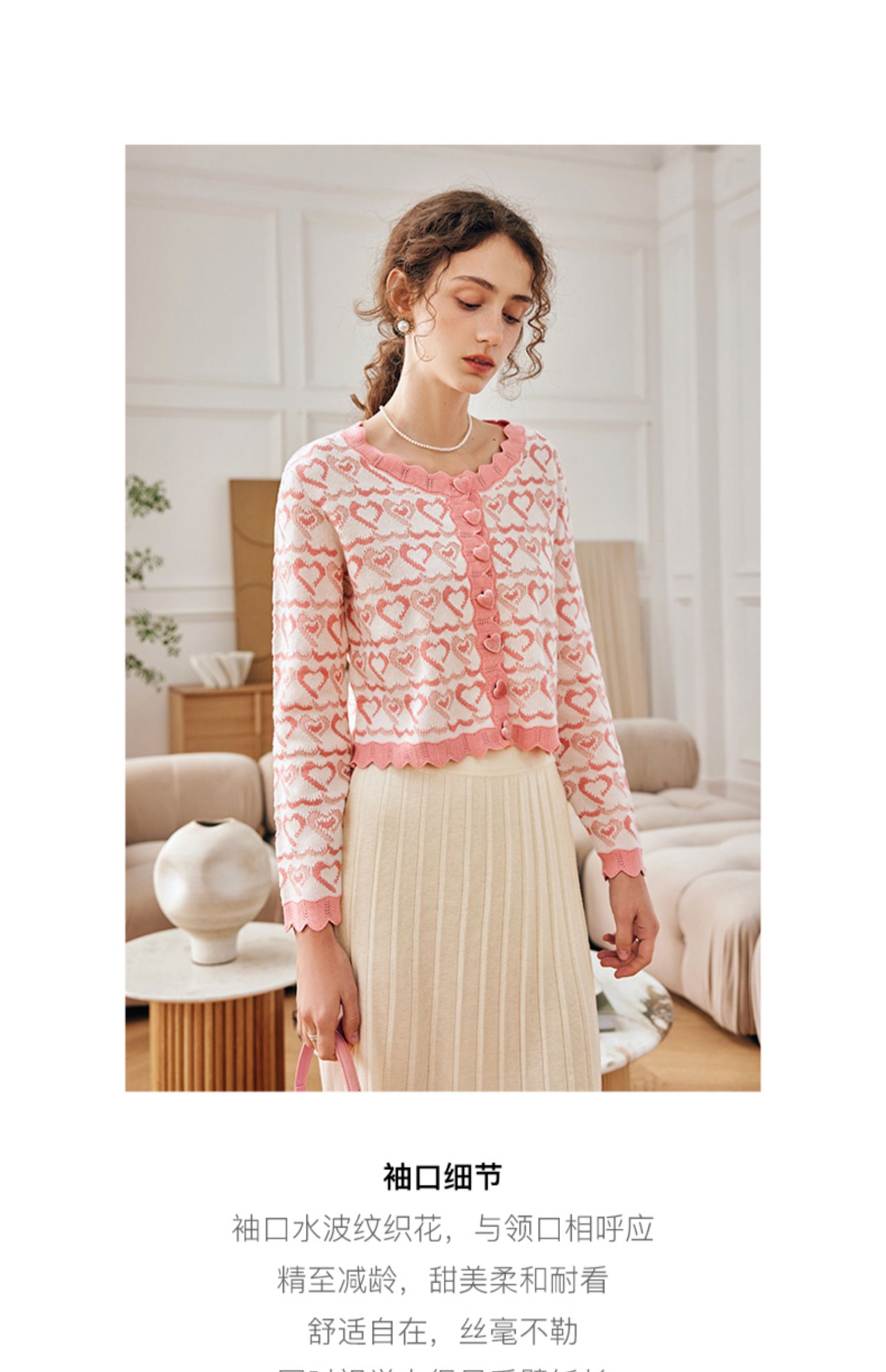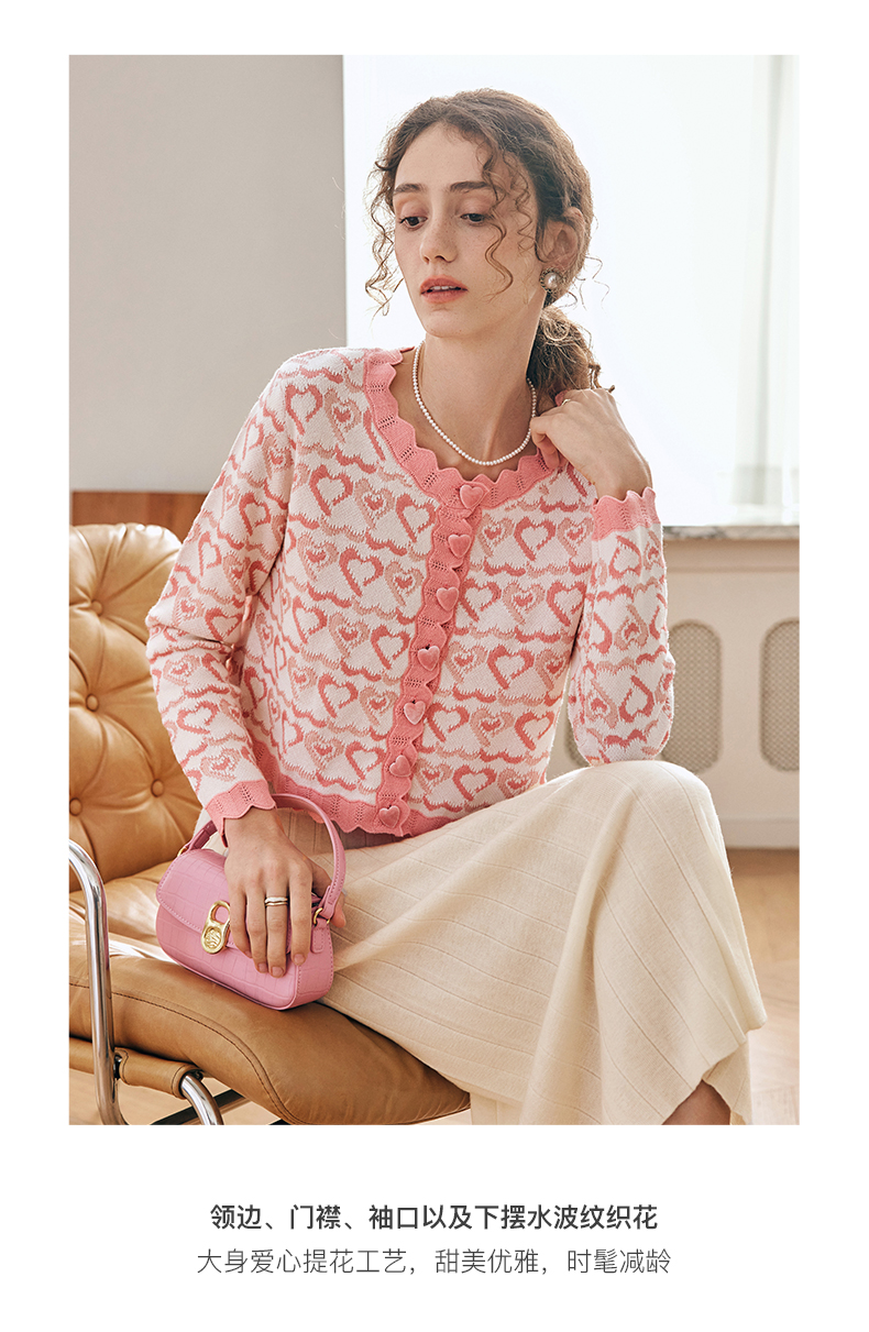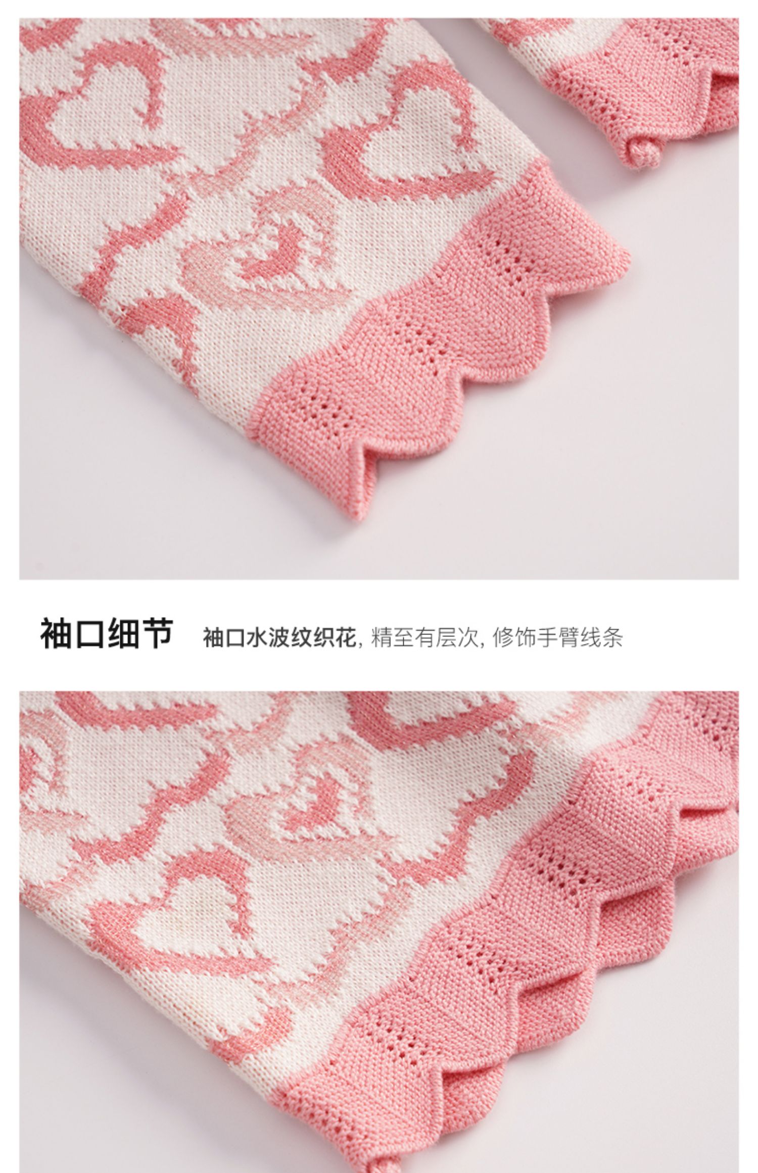 OLrain欧芮儿法式粉色针织开衫女秋季2023年新款爱心提花甜美外套