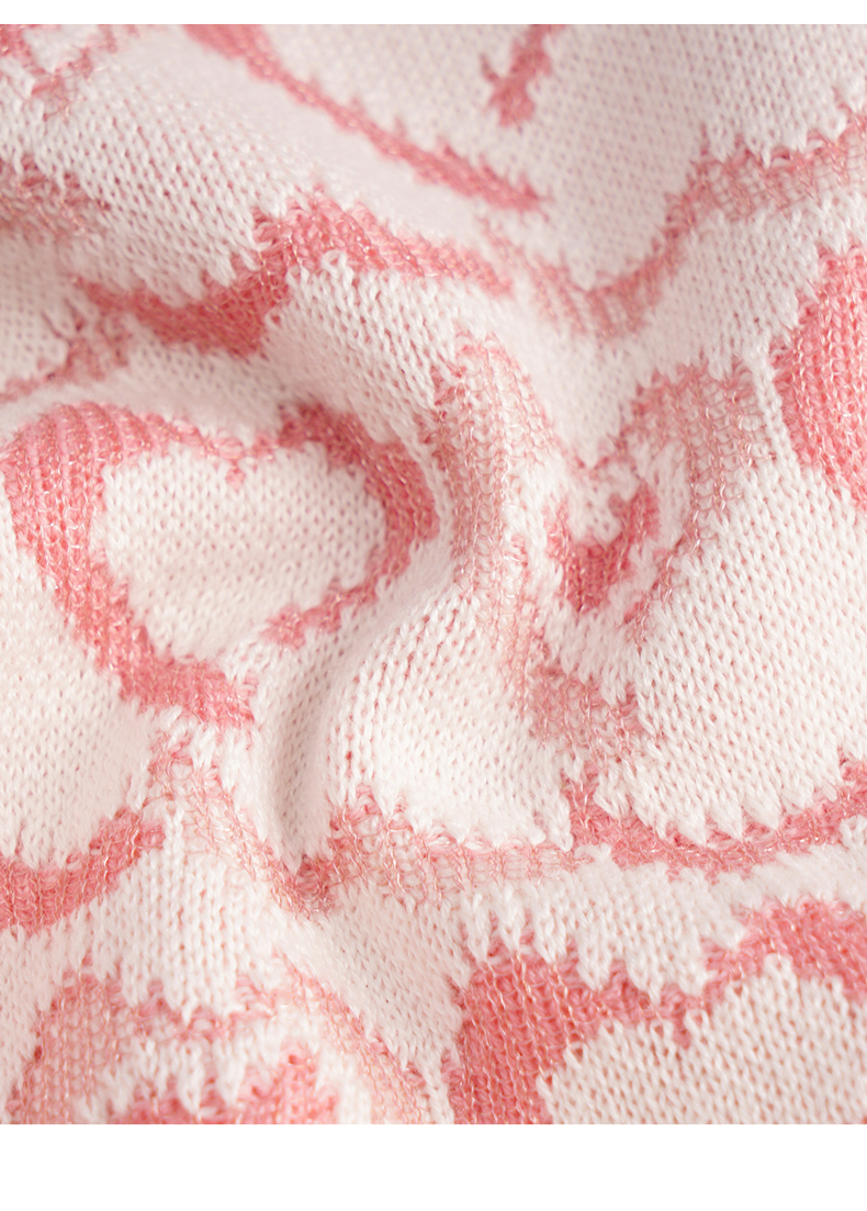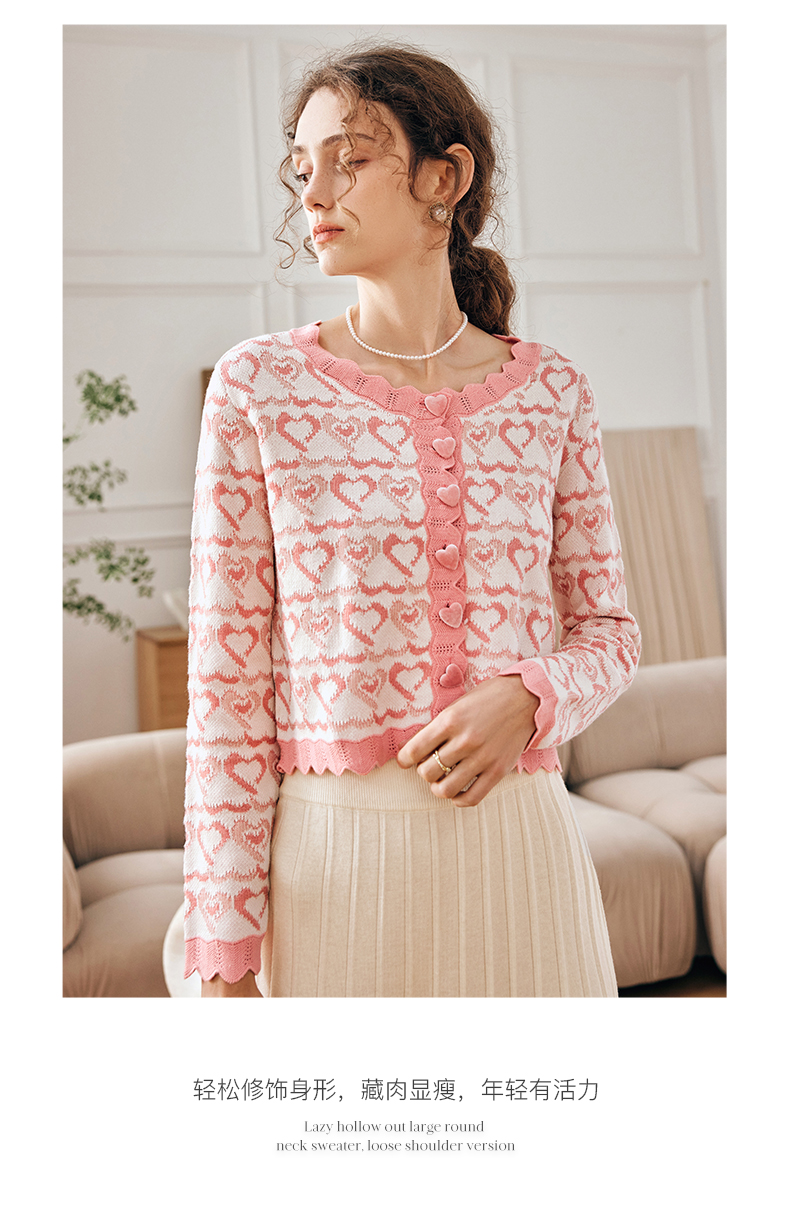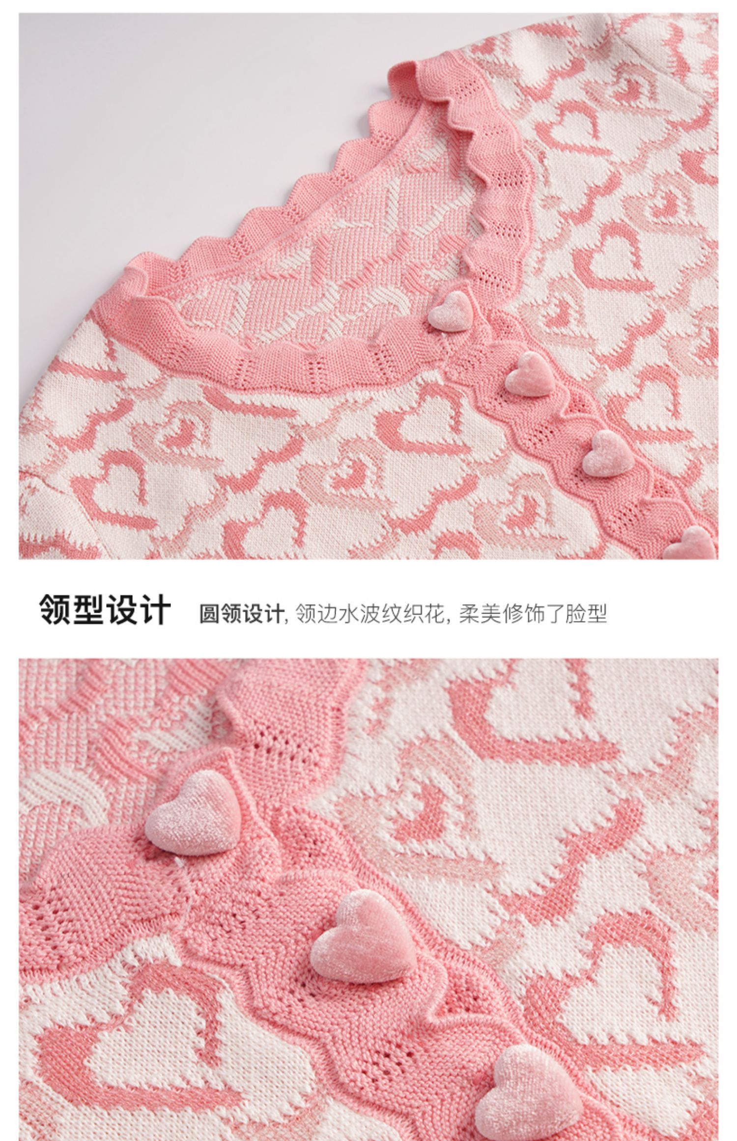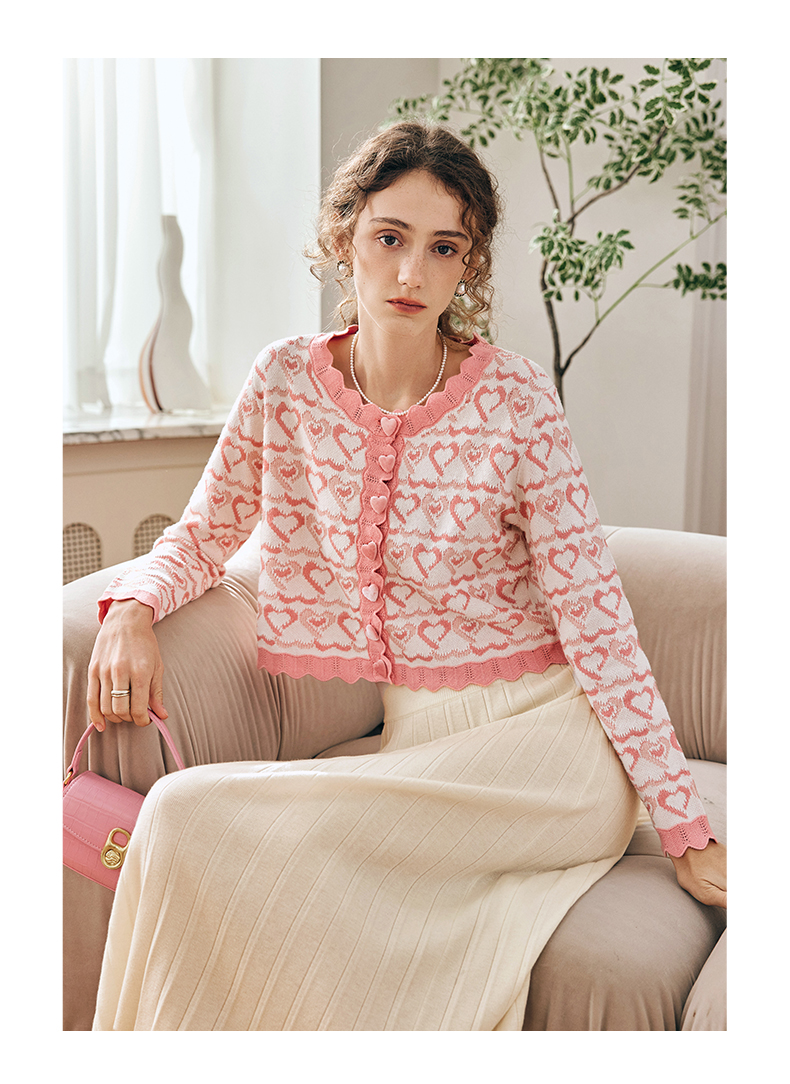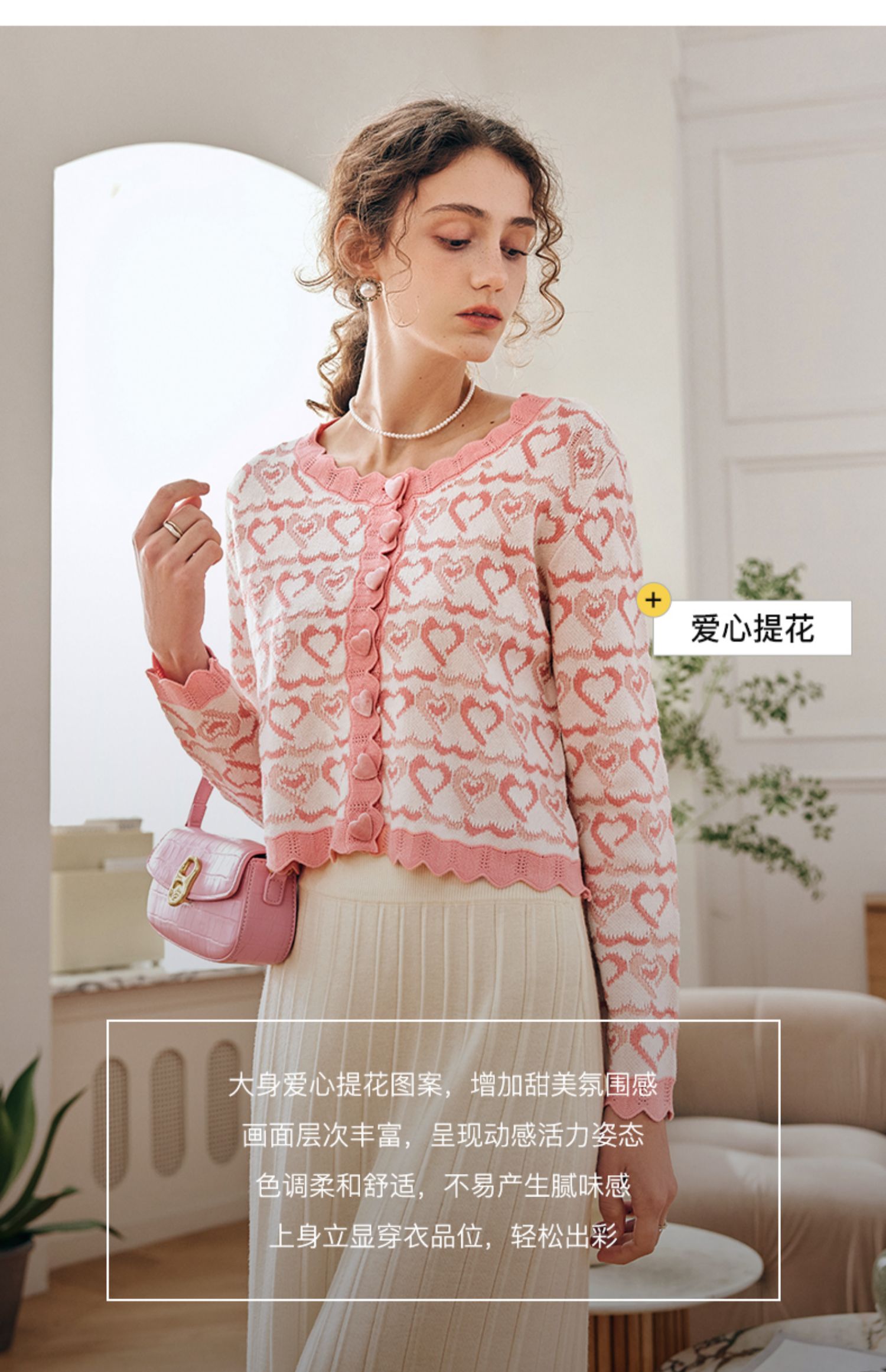 OLrain欧芮儿法式粉色针织开衫女秋季2023年新款爱心提花甜美外套