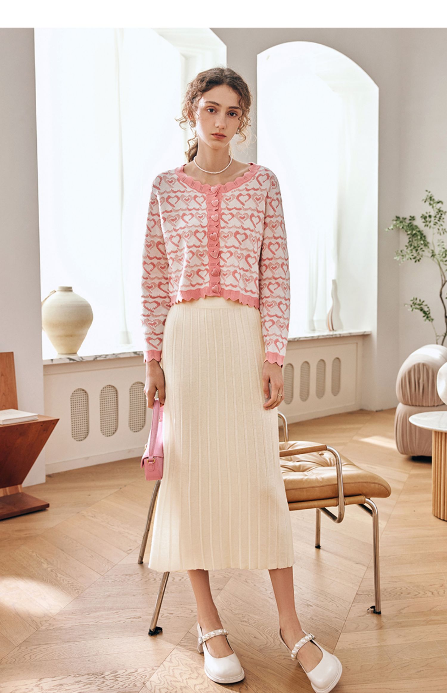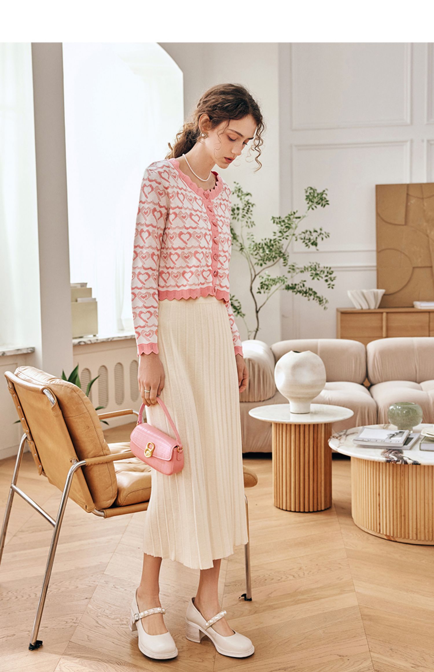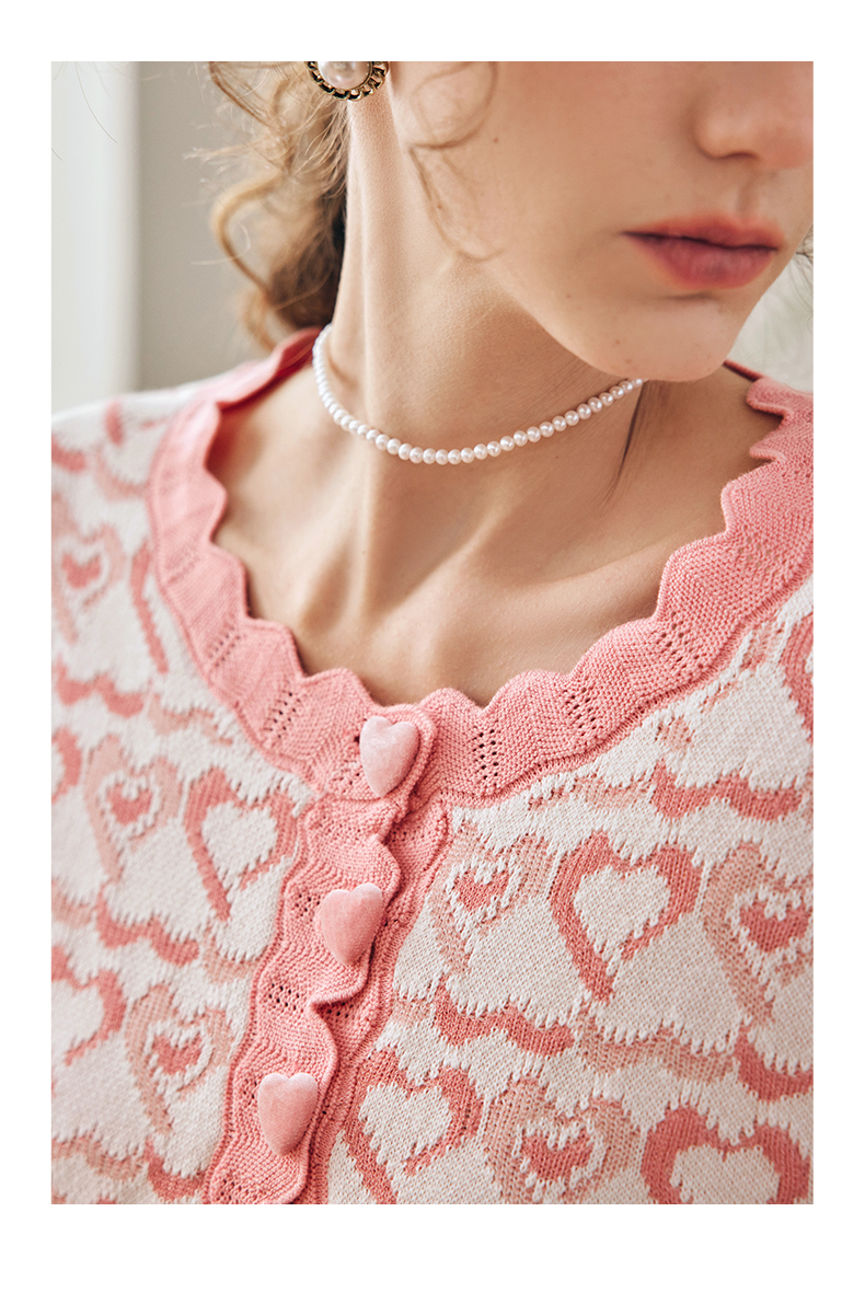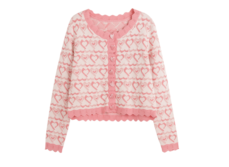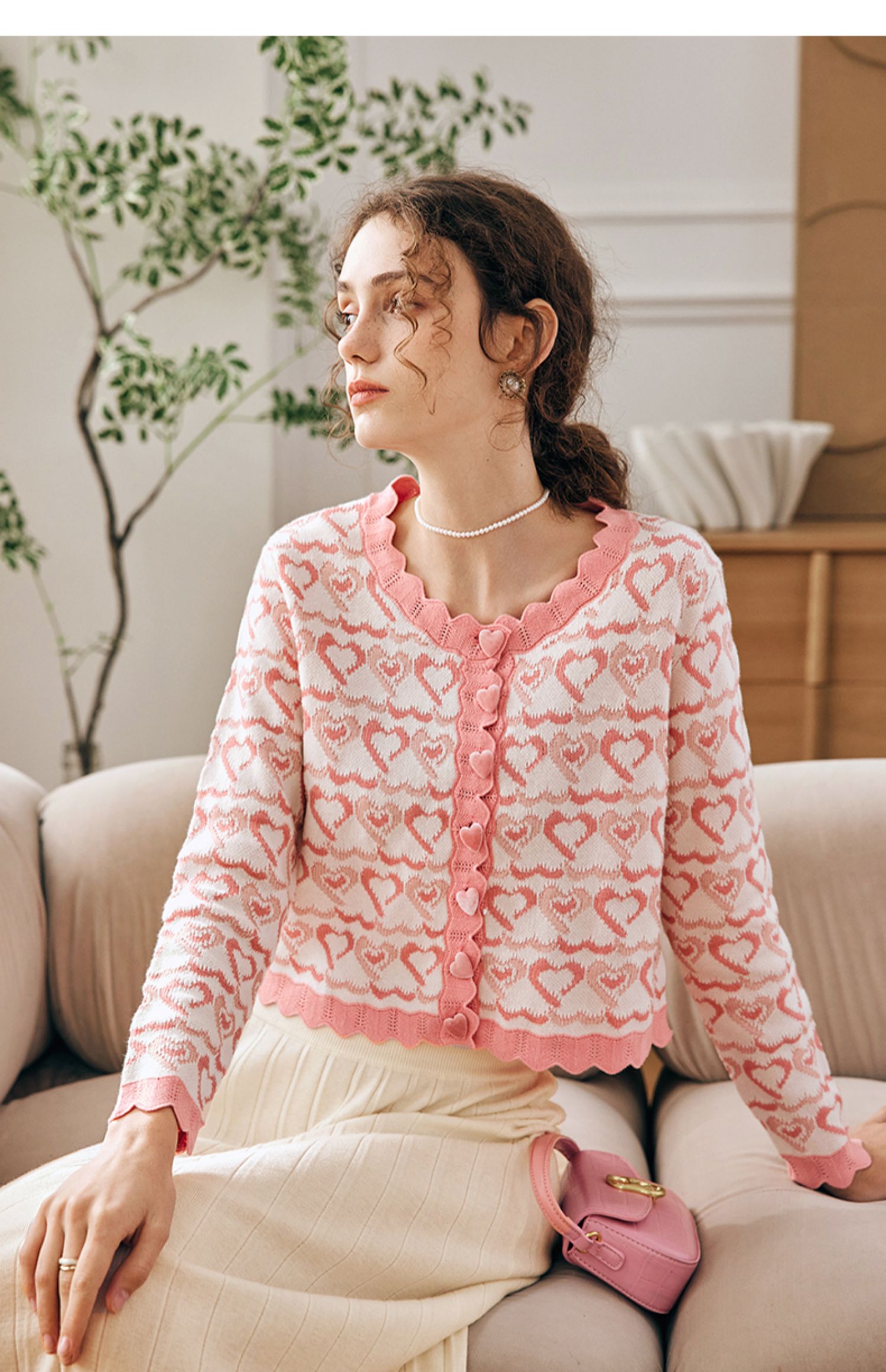 OLrain欧芮儿法式粉色针织开衫女秋季2023年新款爱心提花甜美外套