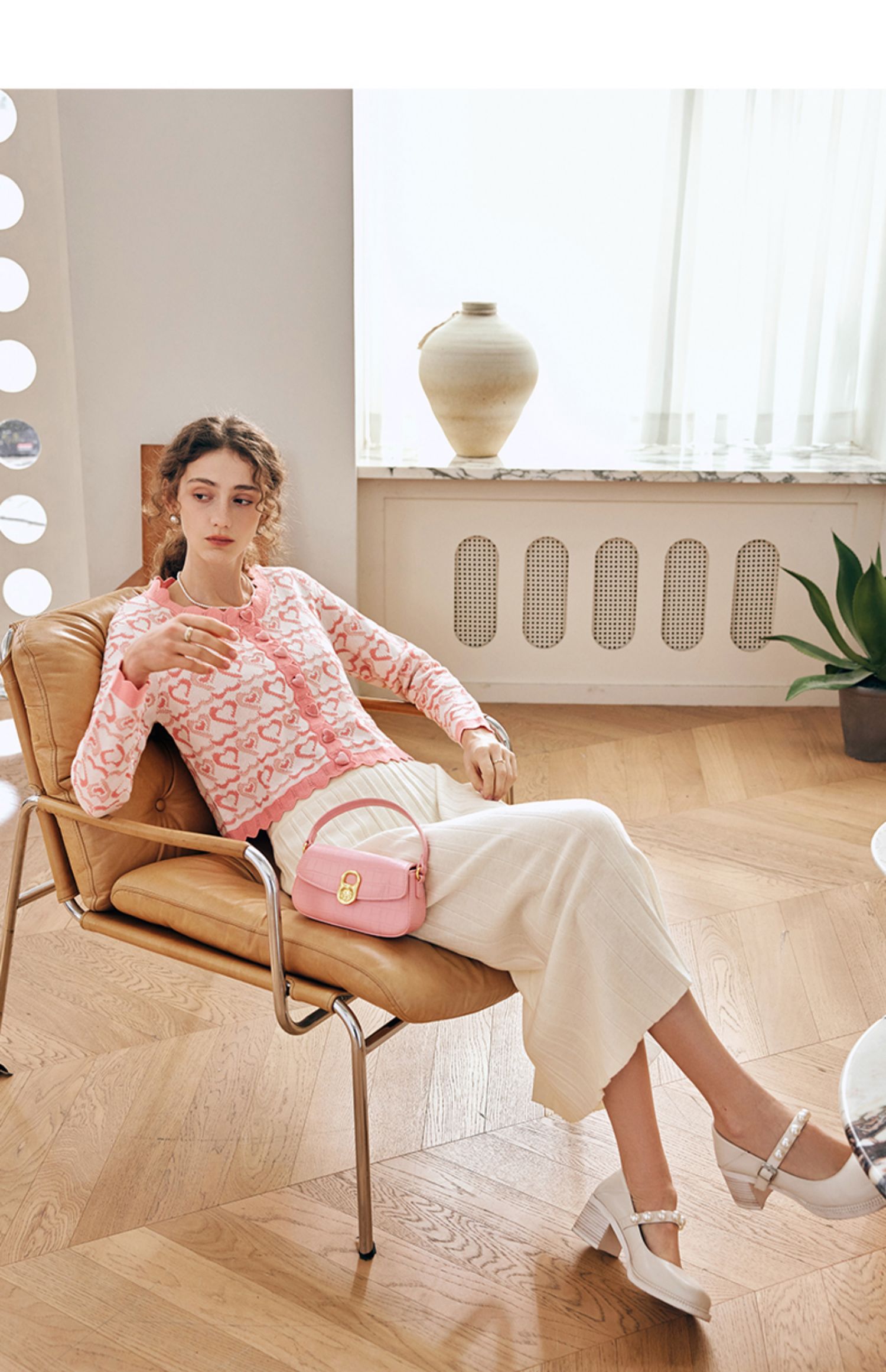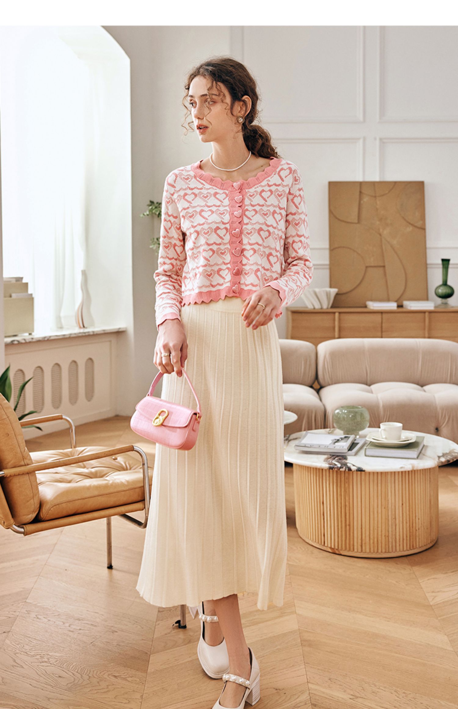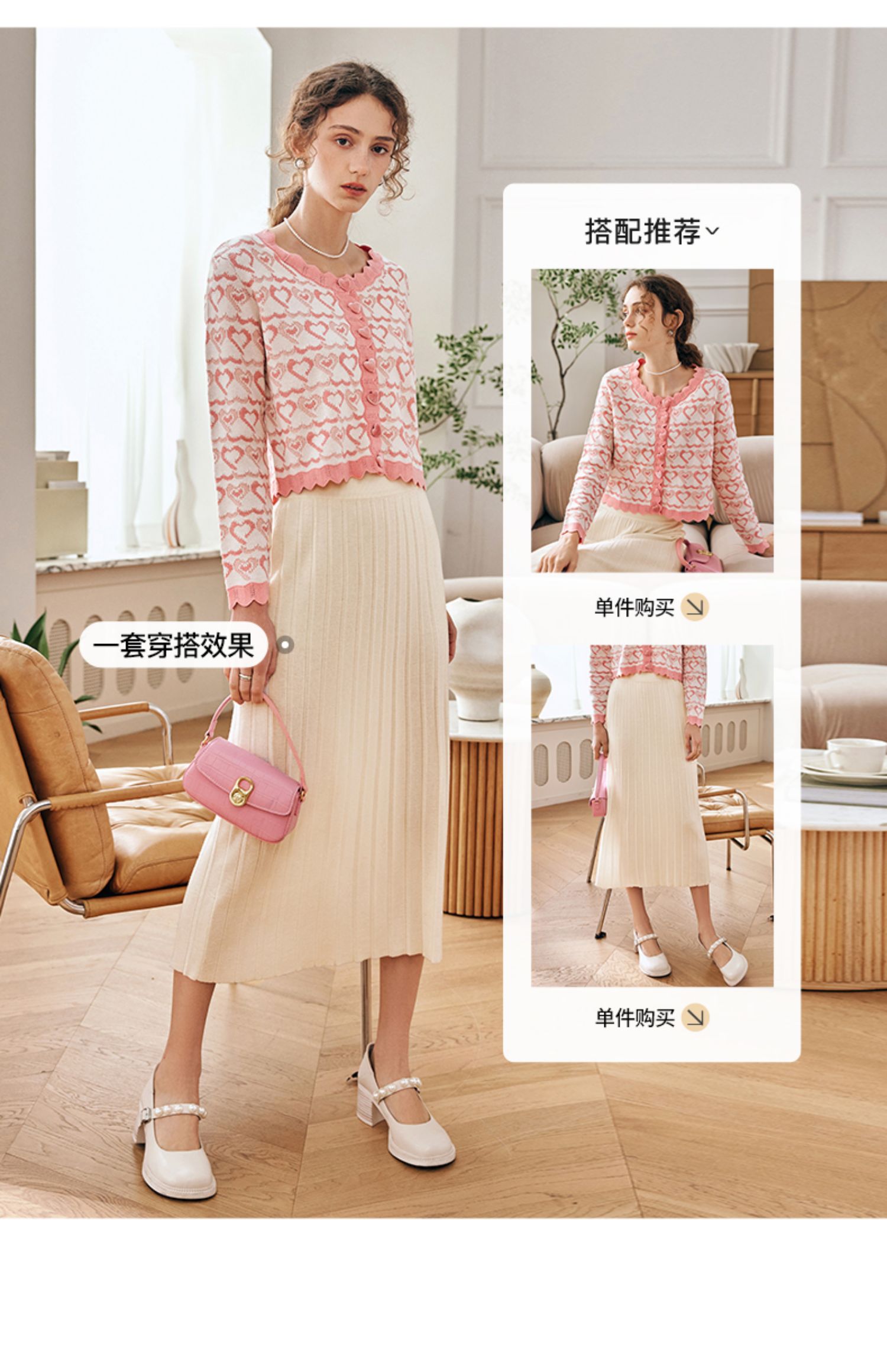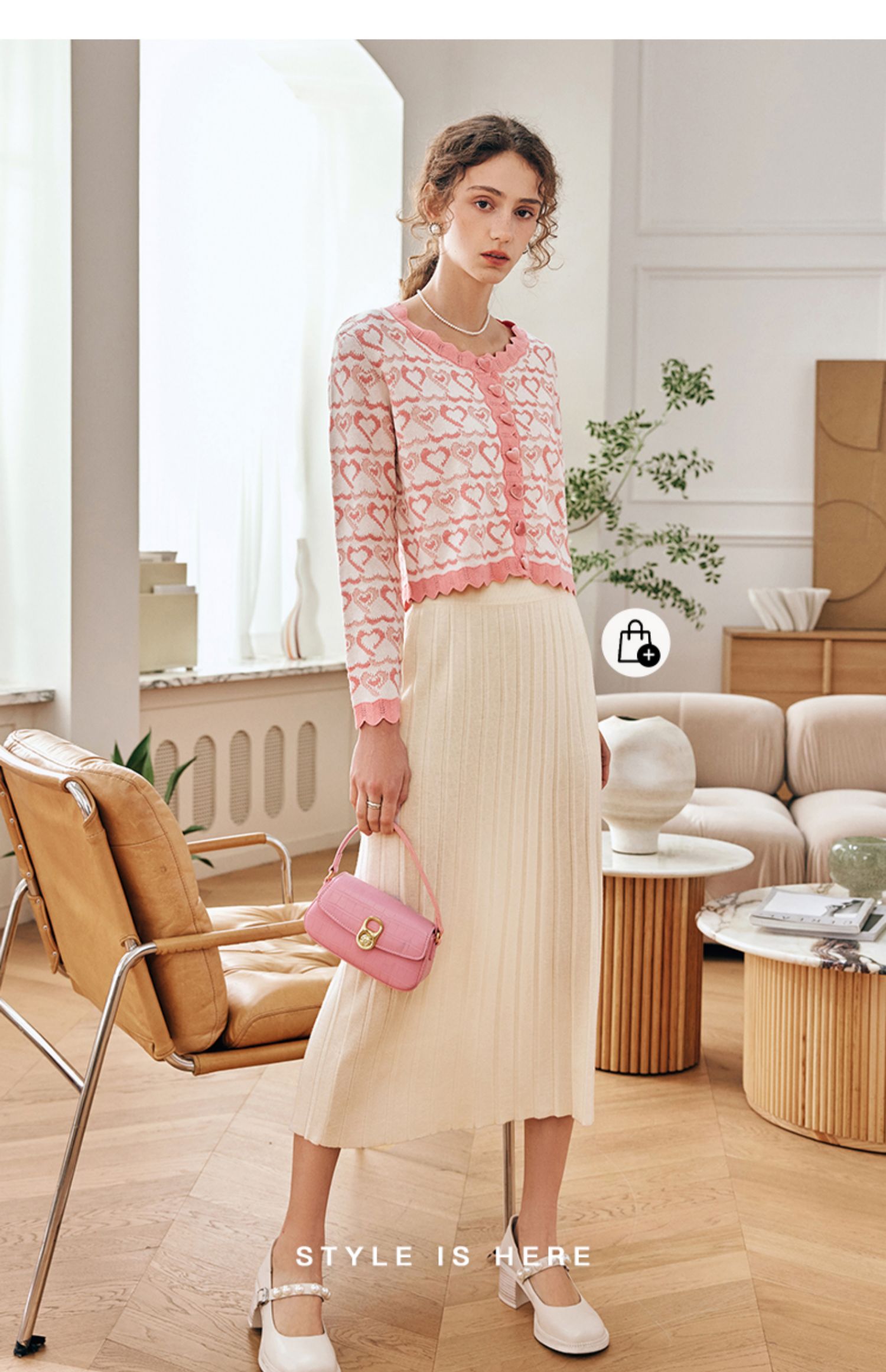 OLrain欧芮儿法式粉色针织开衫女秋季2023年新款爱心提花甜美外套