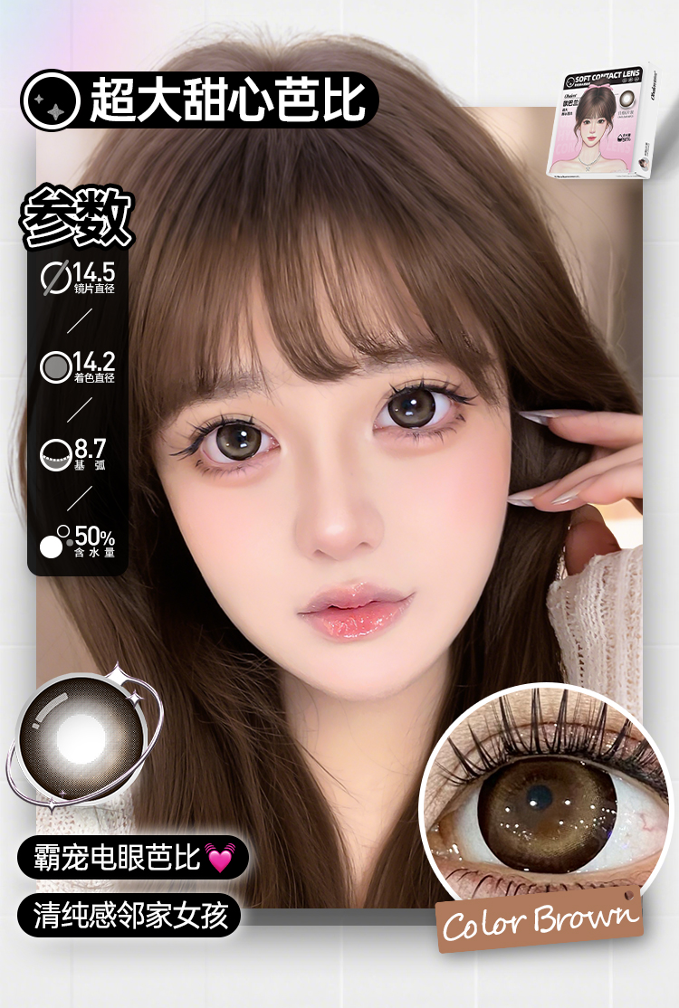 【元气少女系列日抛】Obalen欧巴兰百搭自然美瞳【超大甜心芭比】14.5大直径隐形近视眼镜6片装