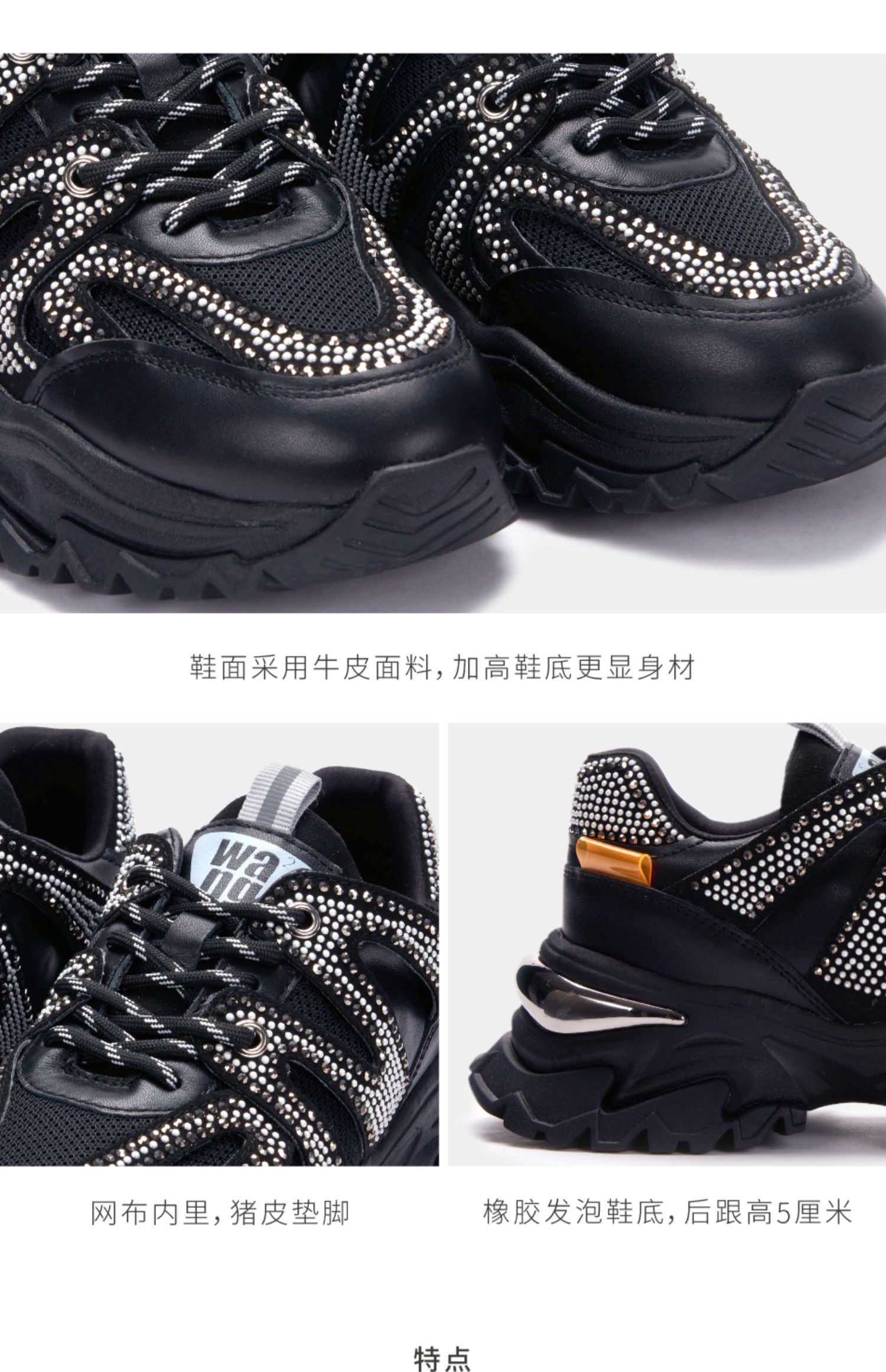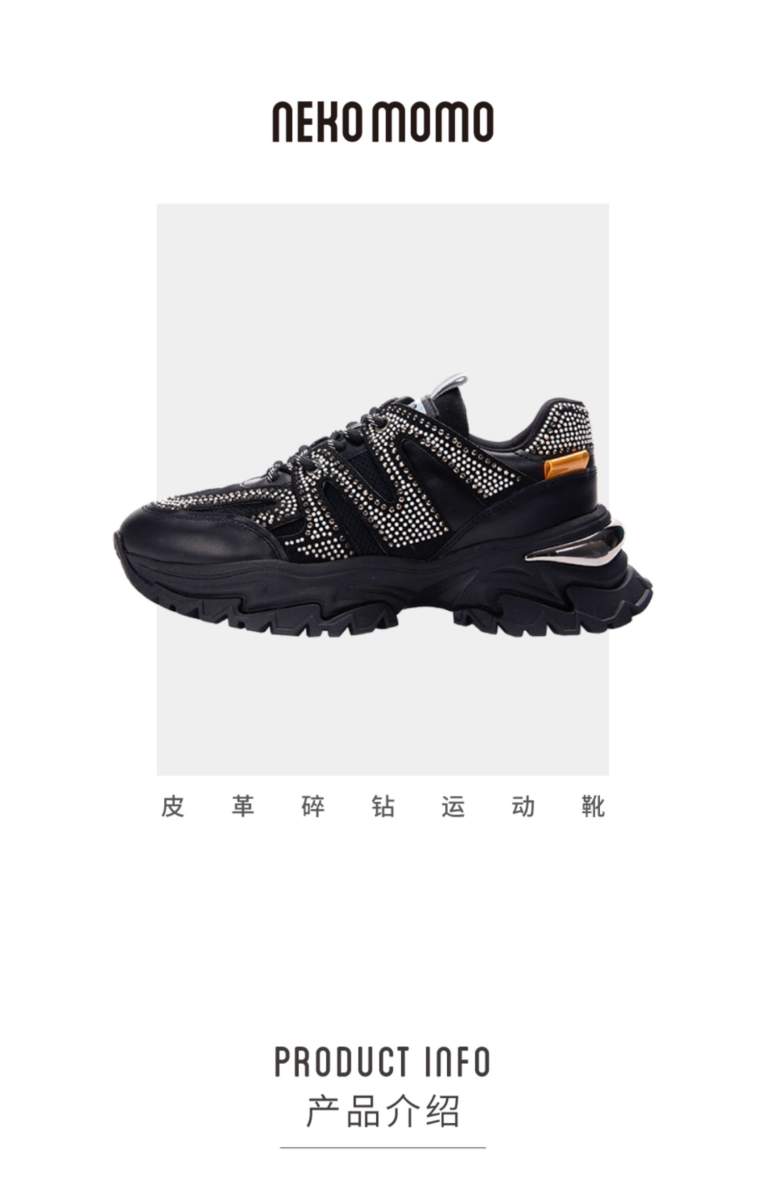 nekomomo2023年春季新款商场同款牛皮镶钻超轻厚底运动鞋老爹鞋M21AM12921女