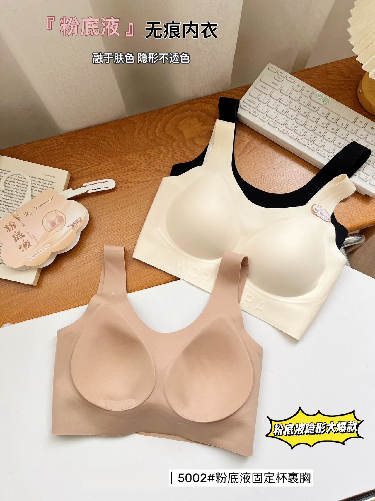 科学调试隐形肤色系果冻条软支撑云感提拉固定乳胶杯文胸5002