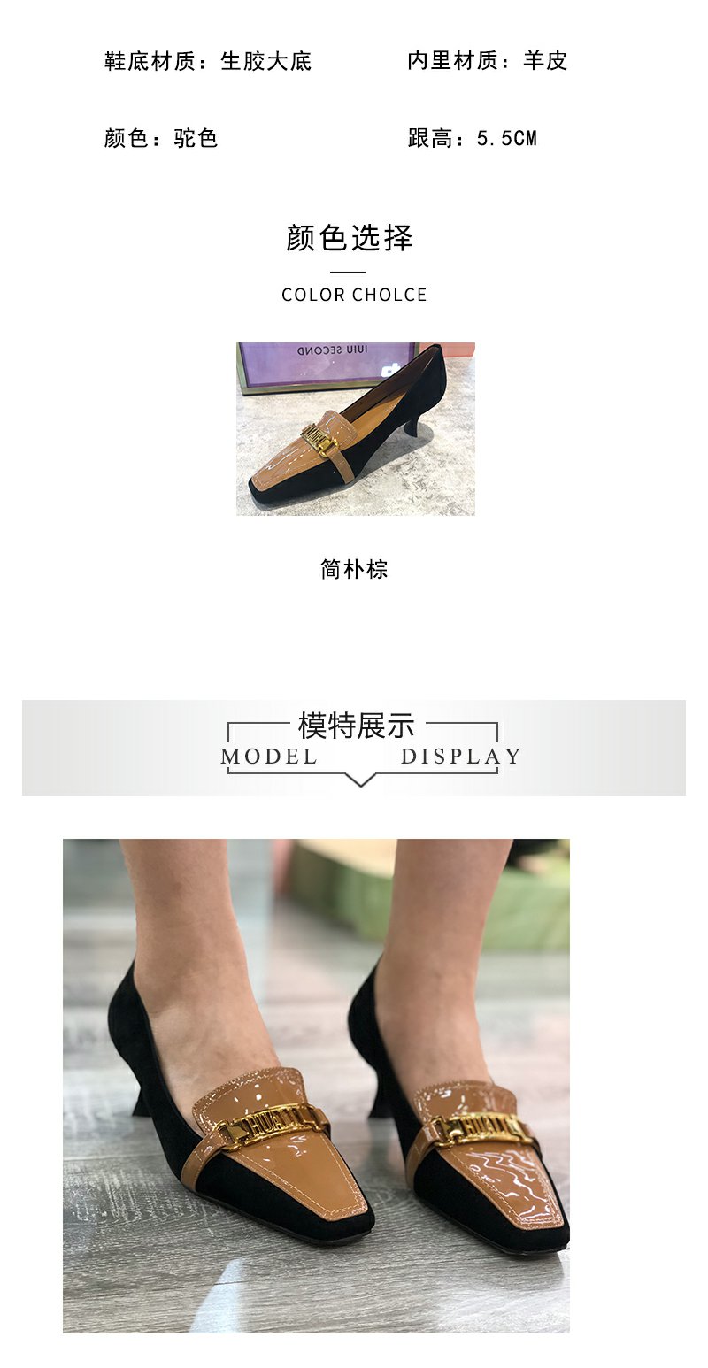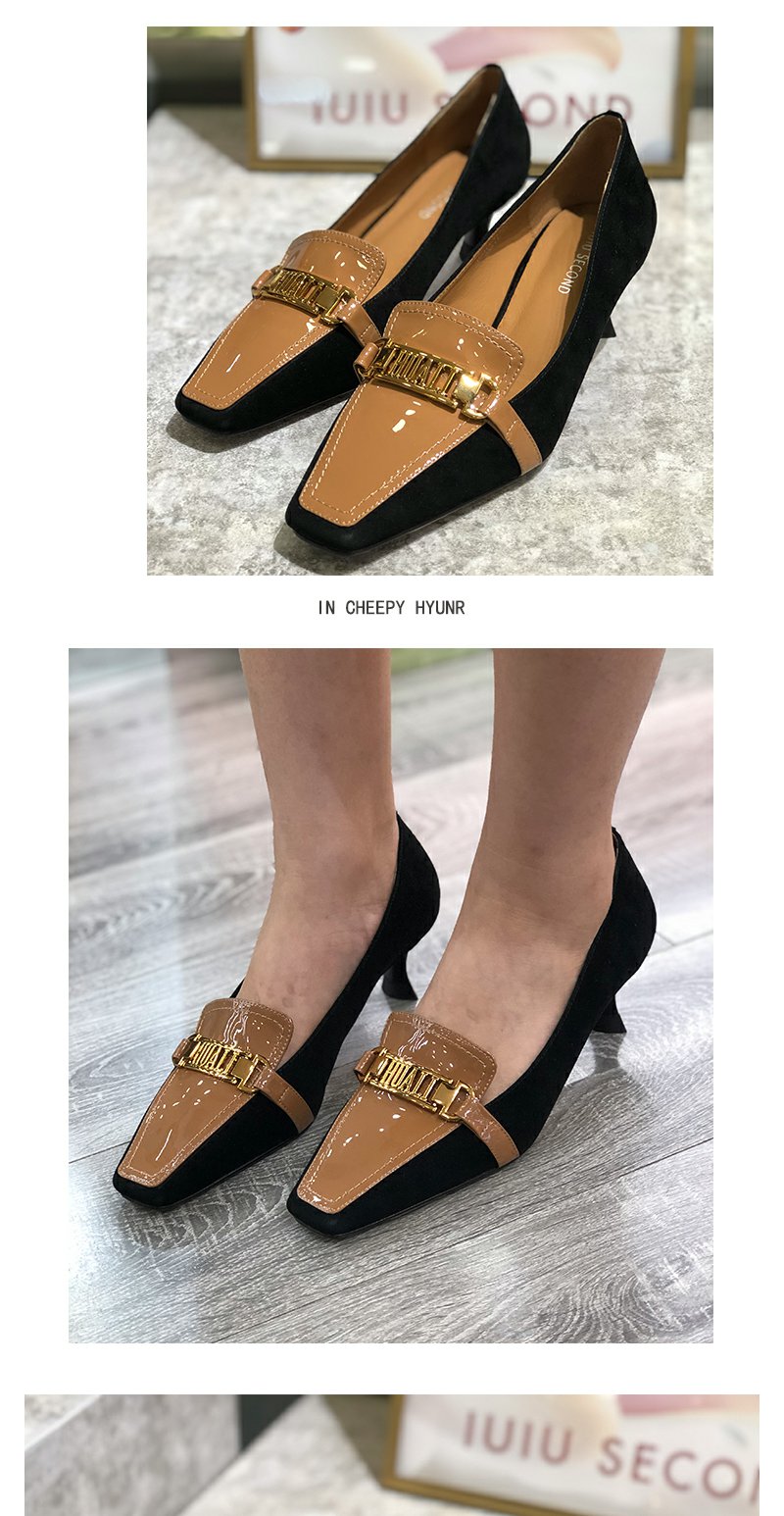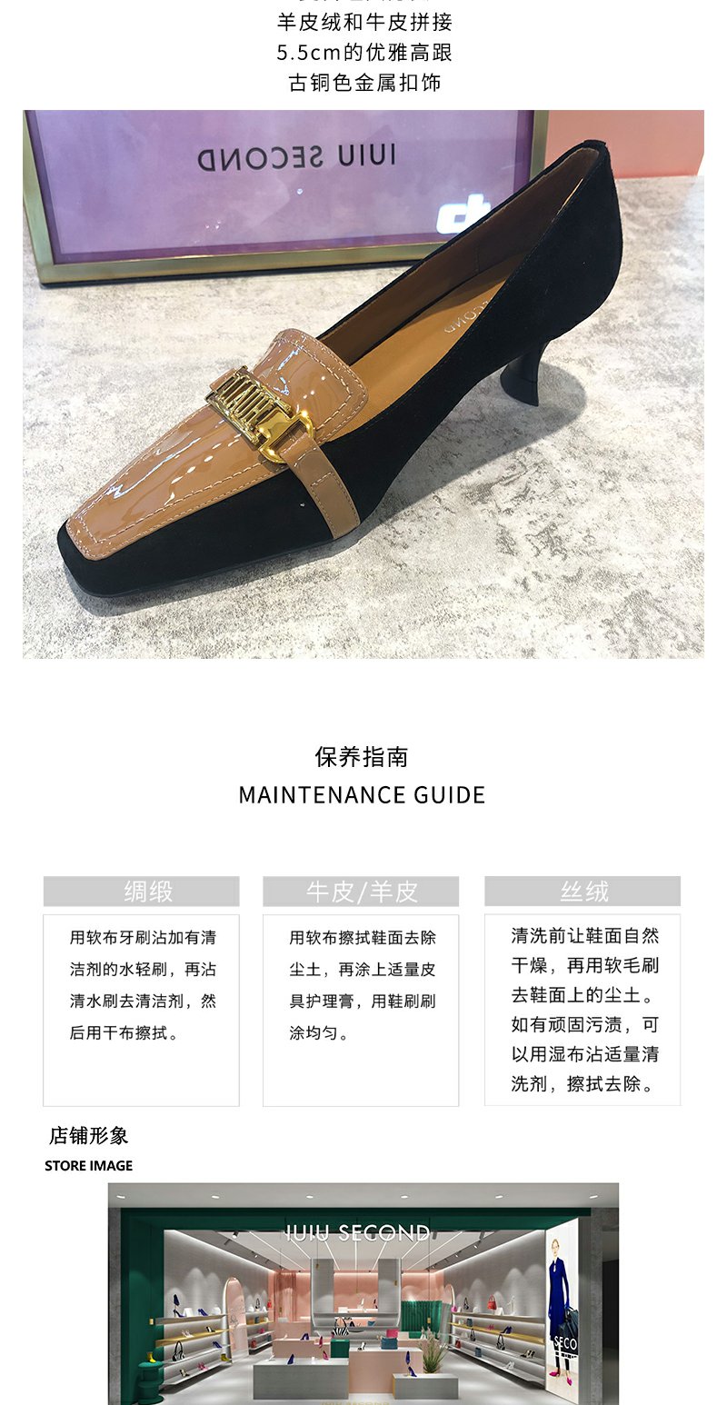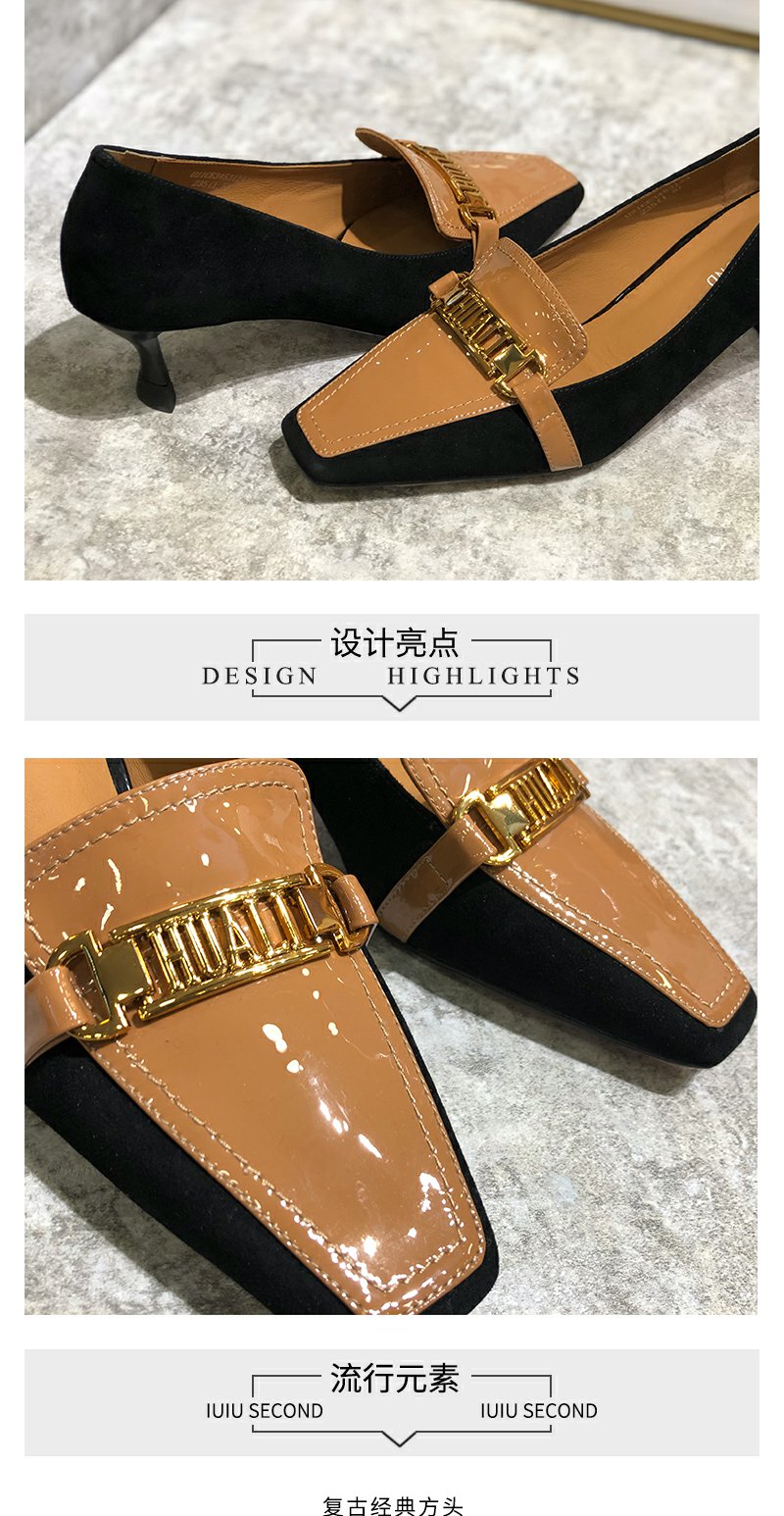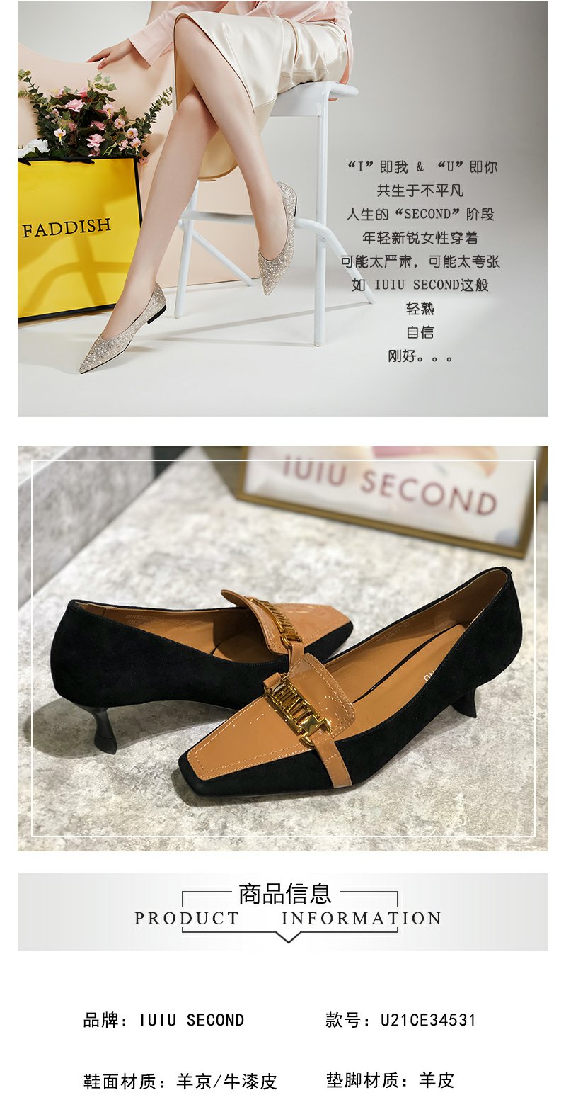 IUIU SECOND真皮女鞋2021秋季新品时尚干练通勤方头拼接女鞋