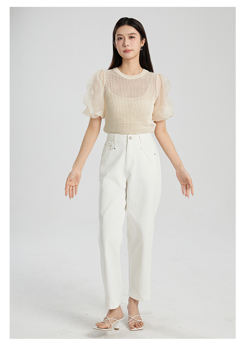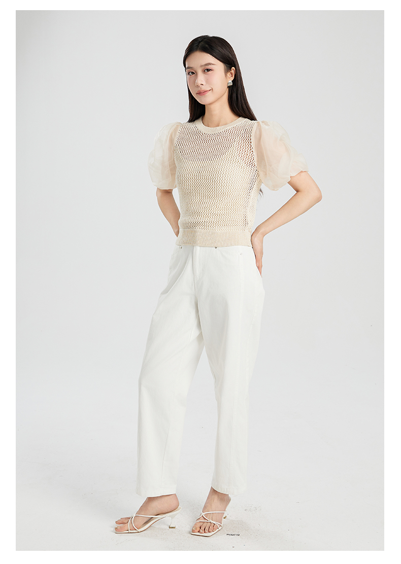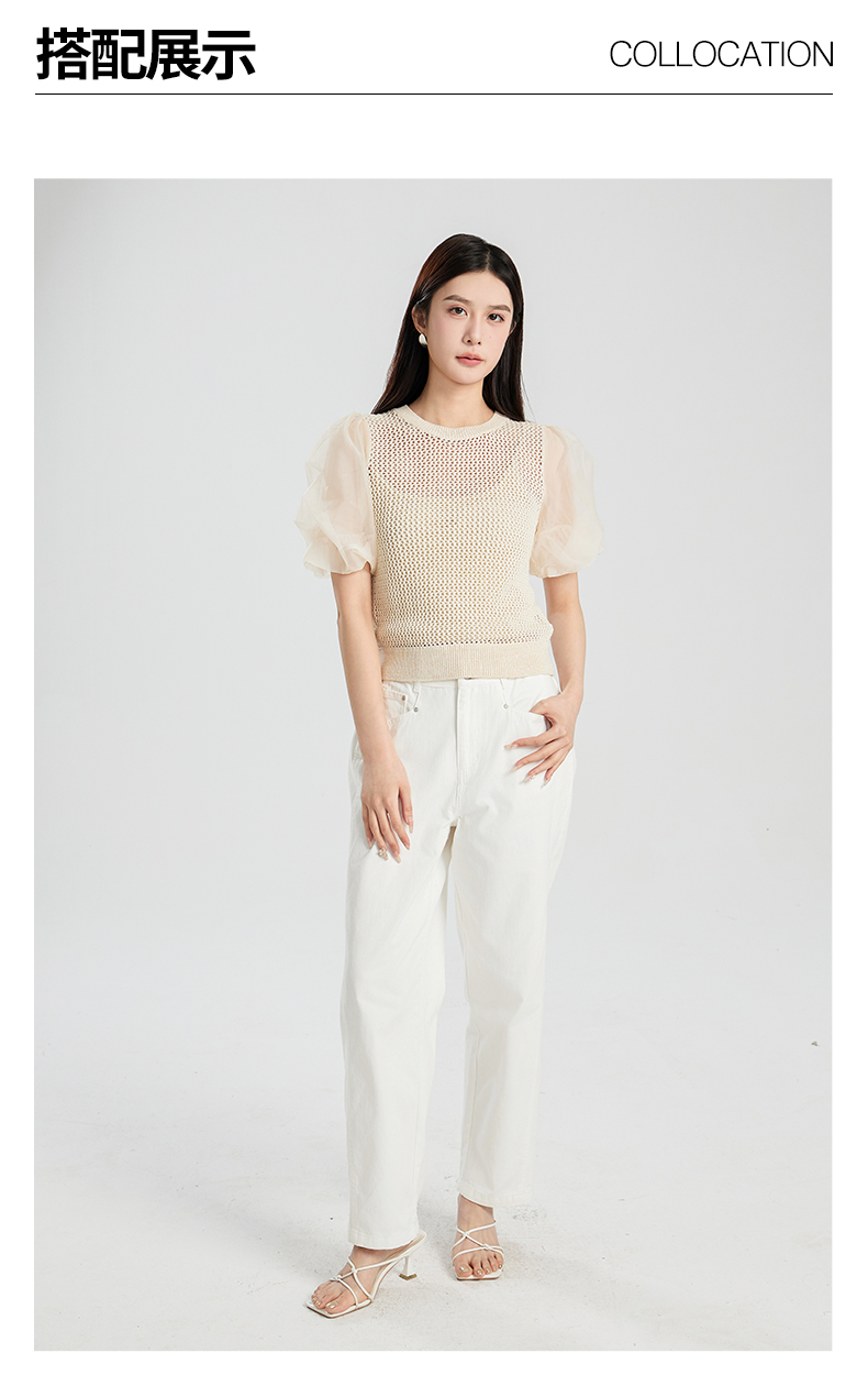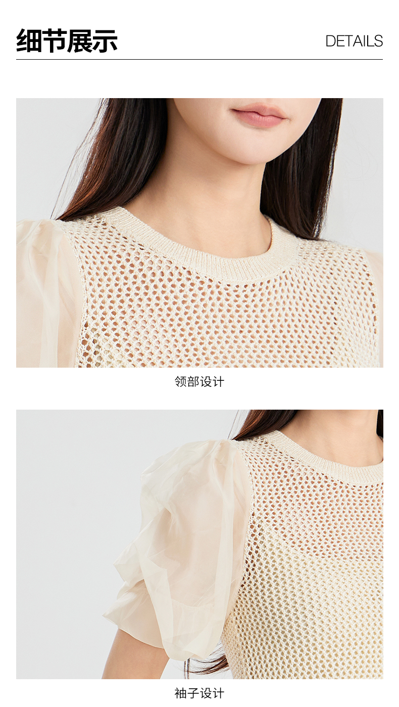 oldcolour夏季新款设计感泡泡袖镂空网状短款套头上衣女Q230507A1
