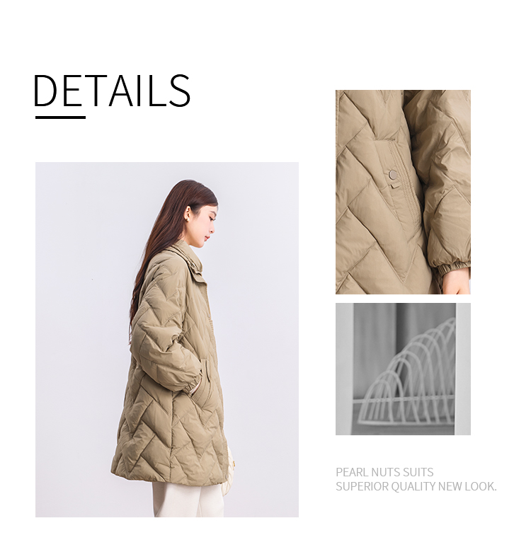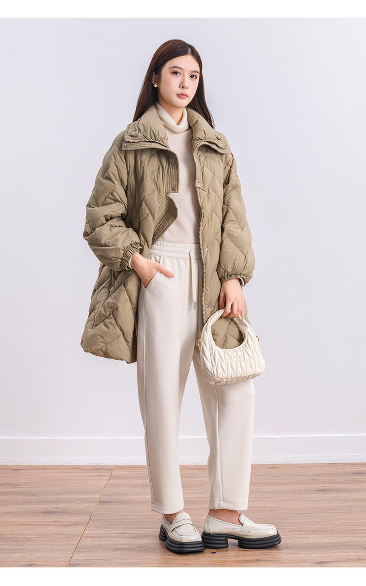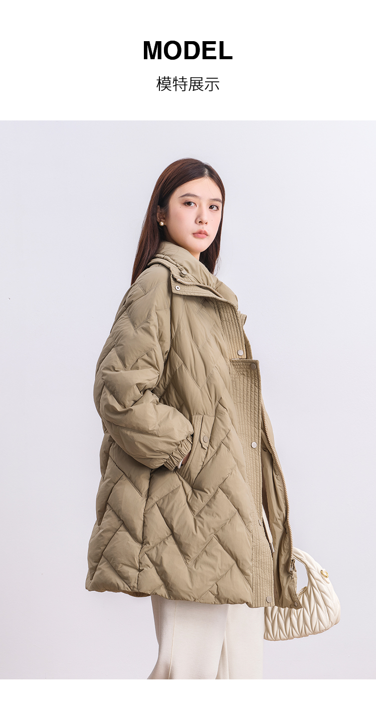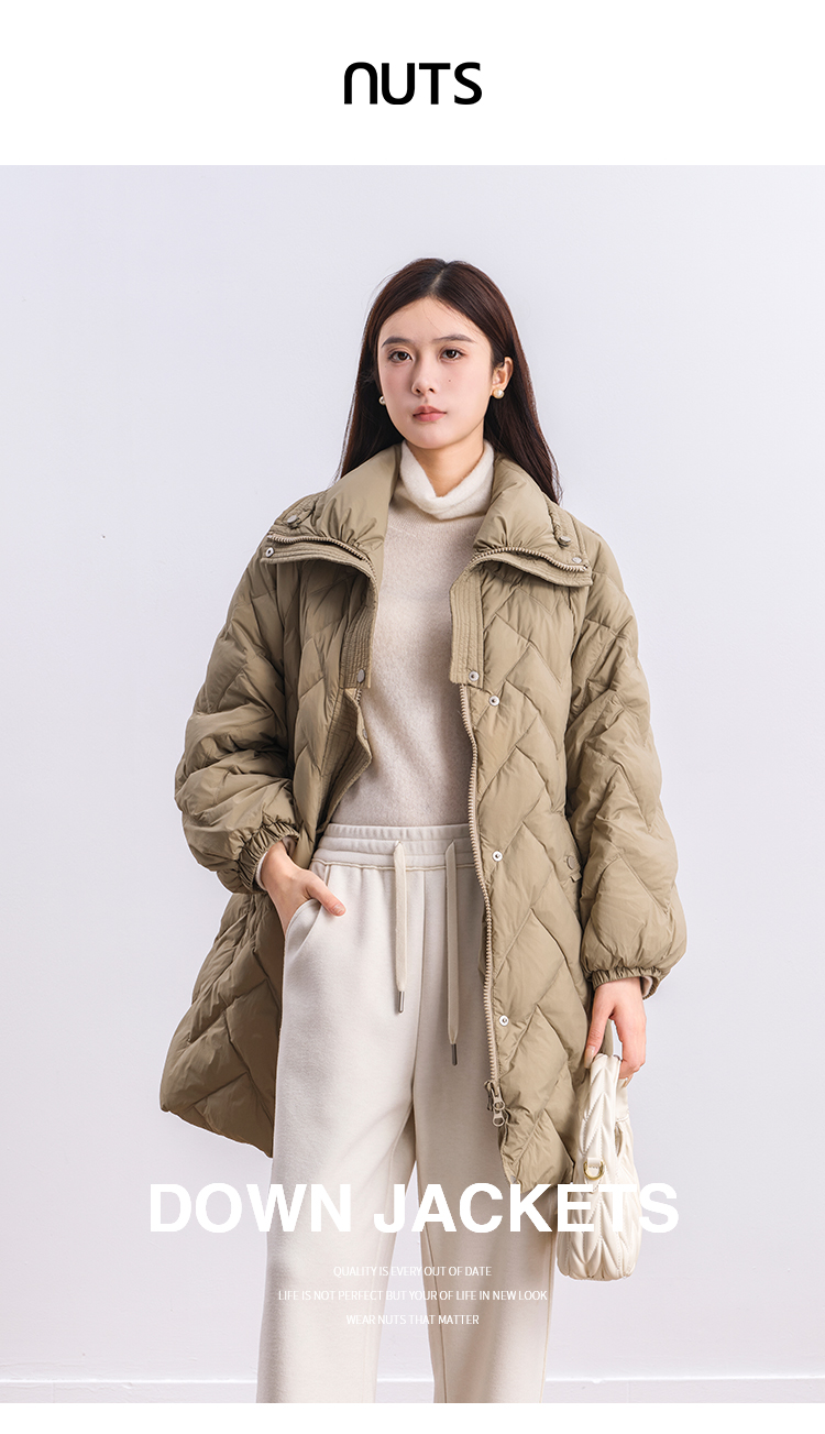 NUTS商场同款冬季纯色菱格翻领保暖中长款鸭绒羽绒服女4490905A1