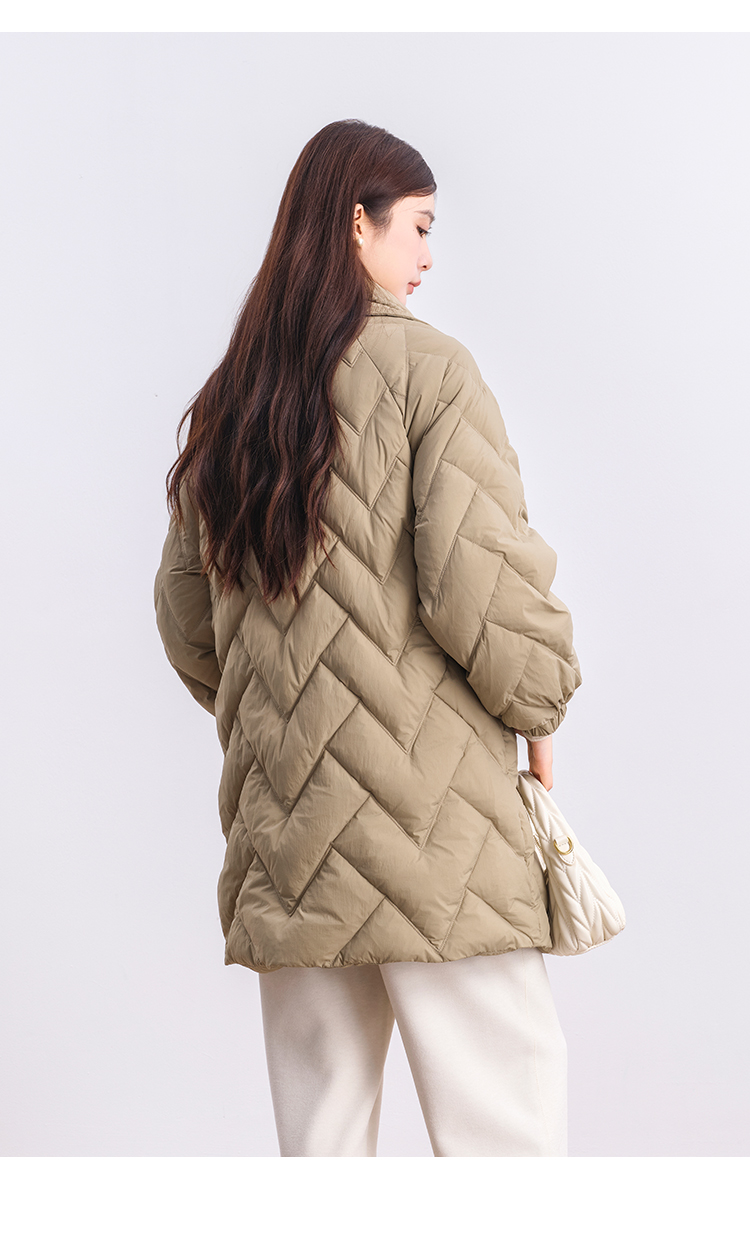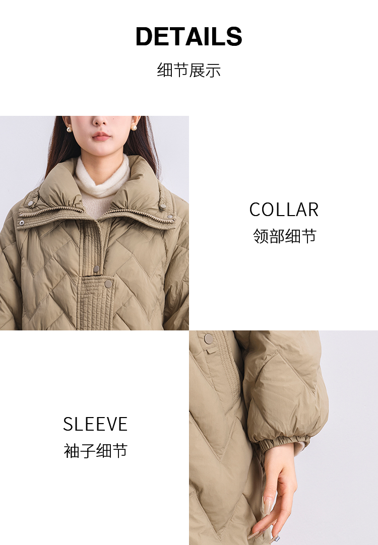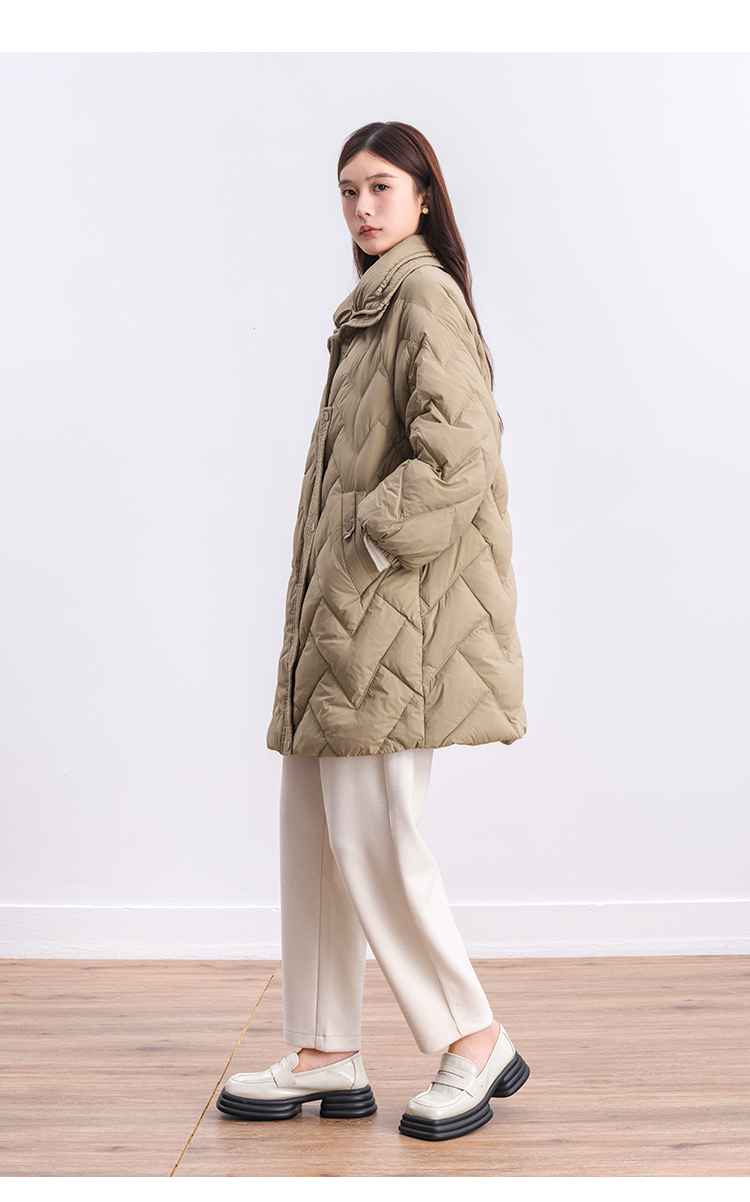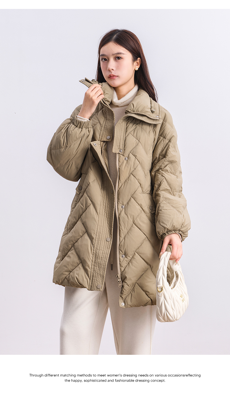 NUTS商场同款冬季纯色菱格翻领保暖中长款鸭绒羽绒服女4490905A1