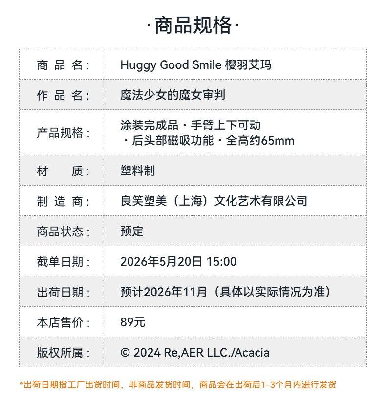 【GSC预售定金】Huggy Good Smile 樱羽艾玛 魔法少女的魔女审判