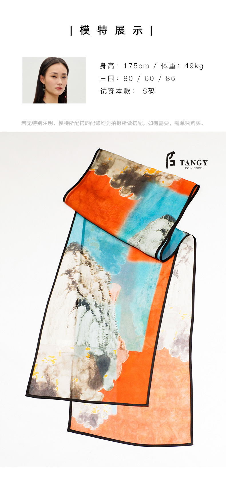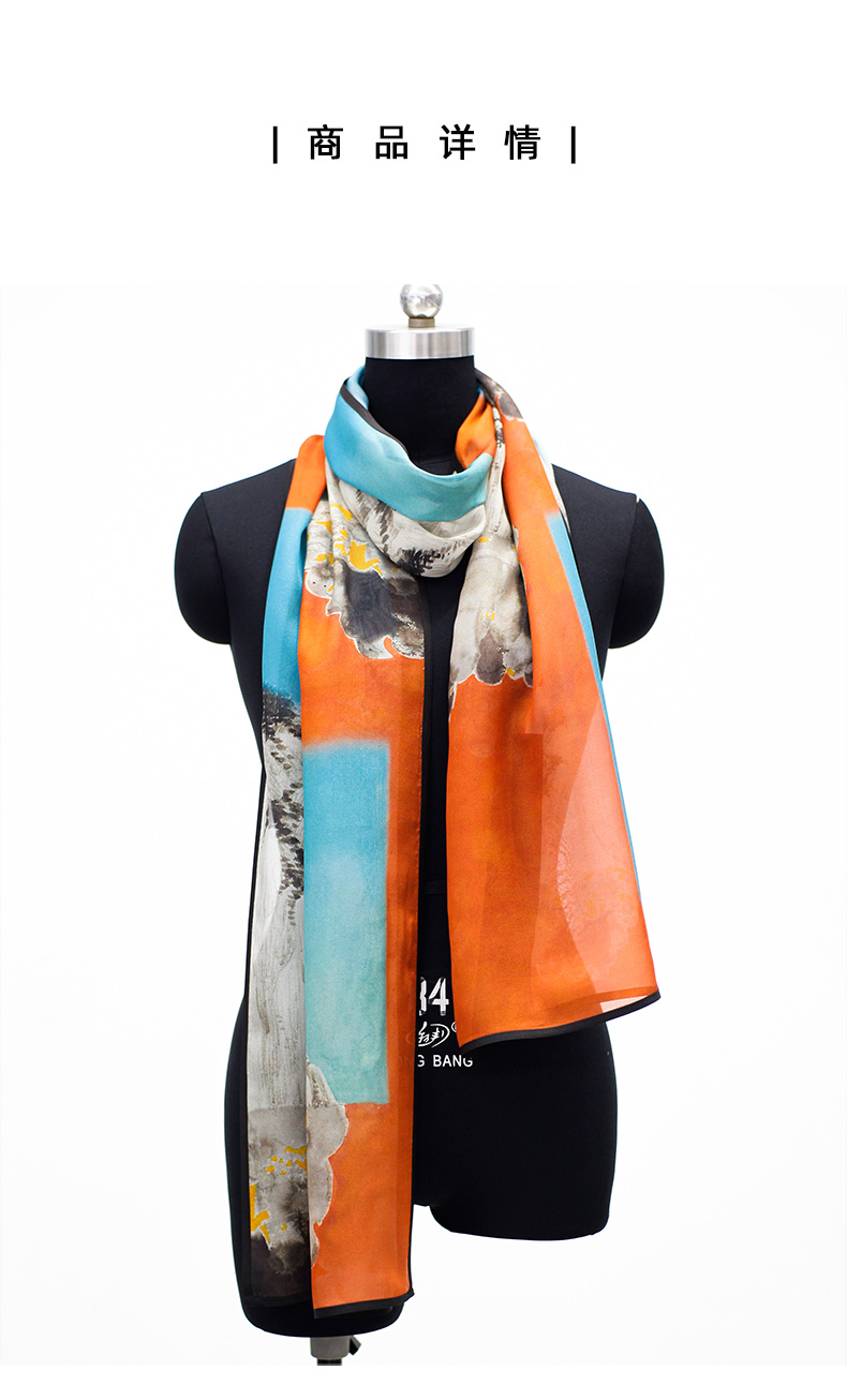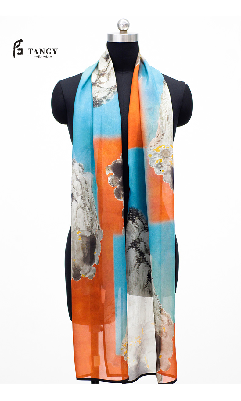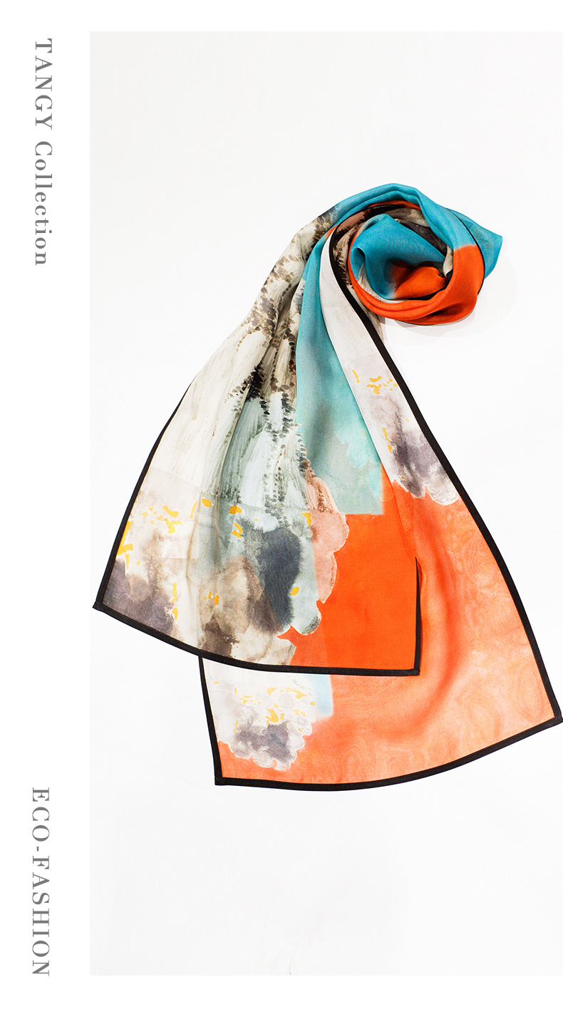TANGY Collection天意精品2024春季新款联名款敦煌系列真丝莨绸包边长方形围巾L241414