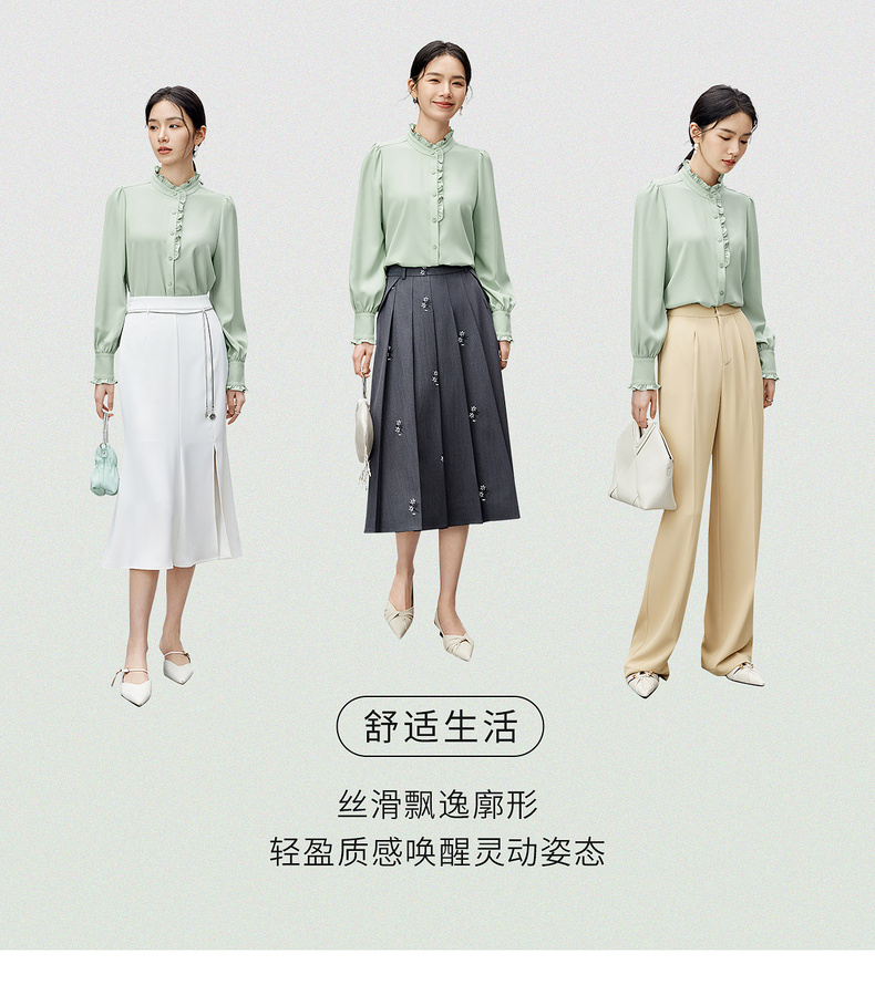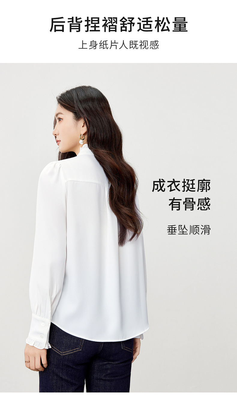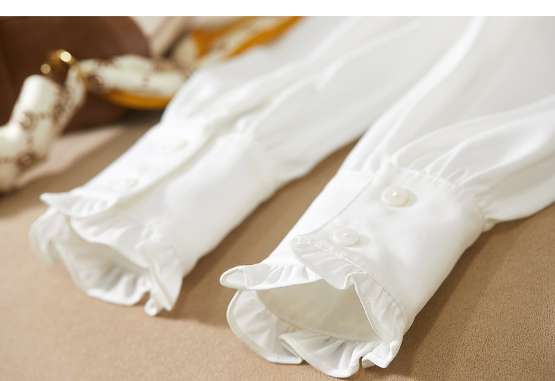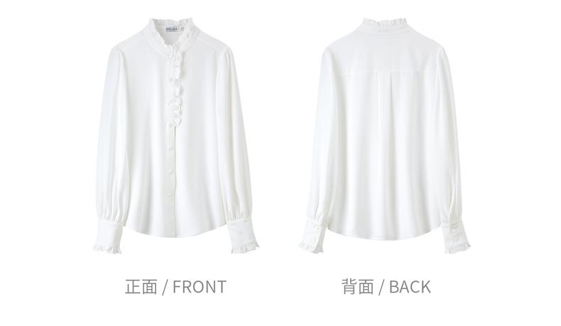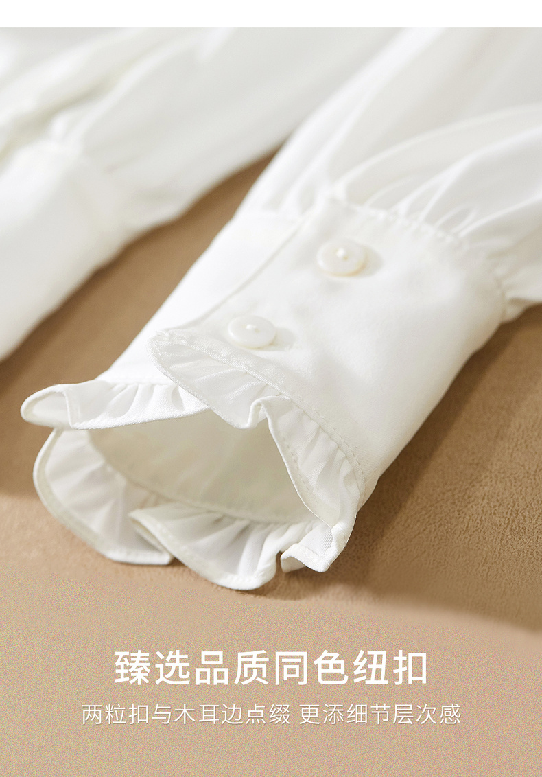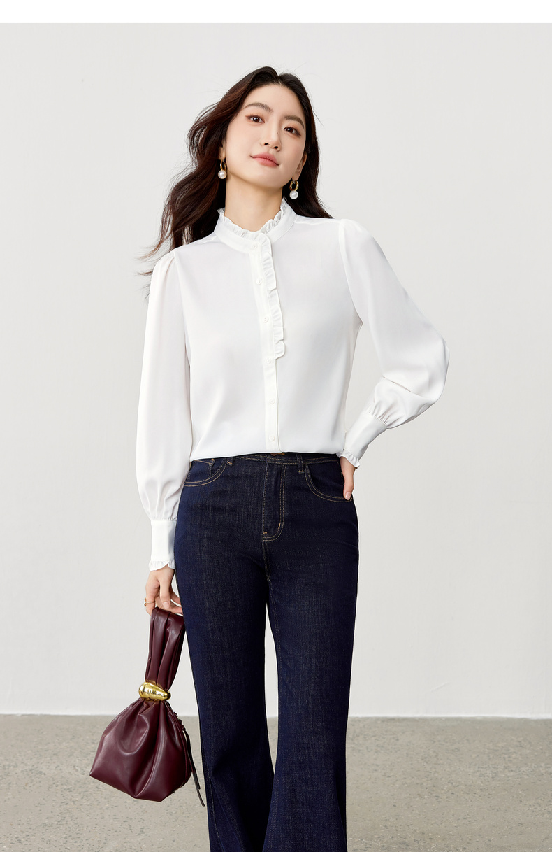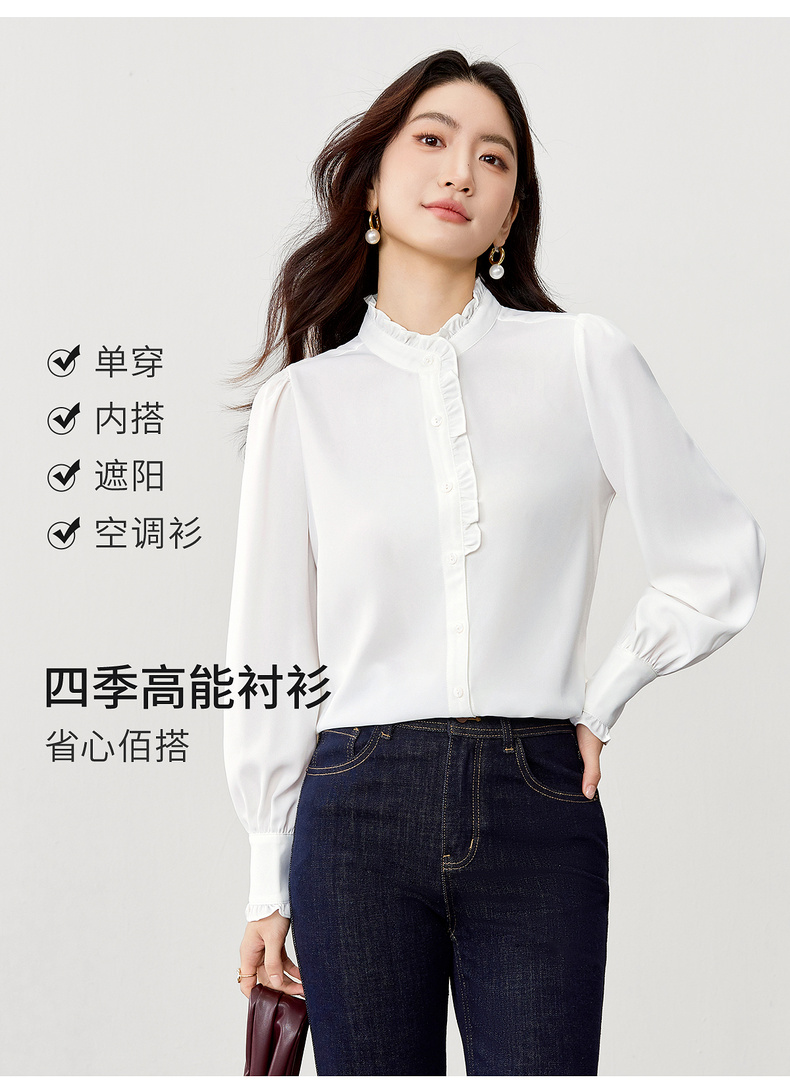 【内购】时尚优雅知性古典文艺风荷叶边装饰设计通勤立领雪纺衫-153VA3225X