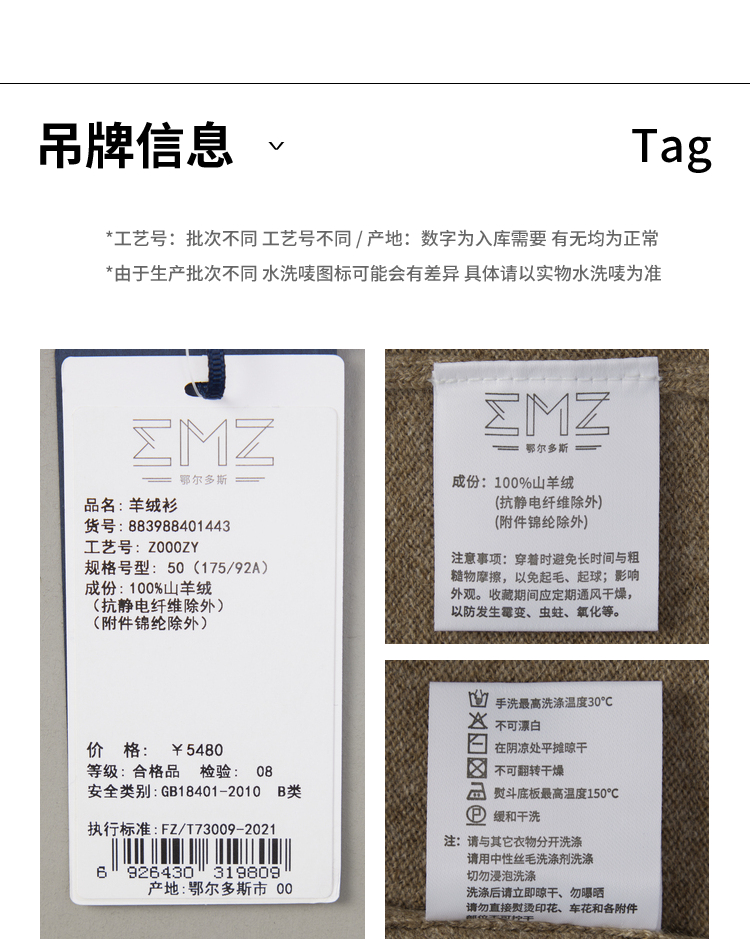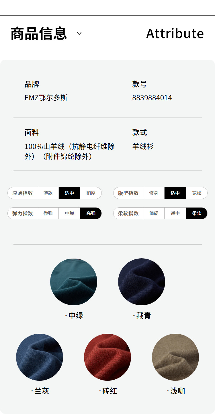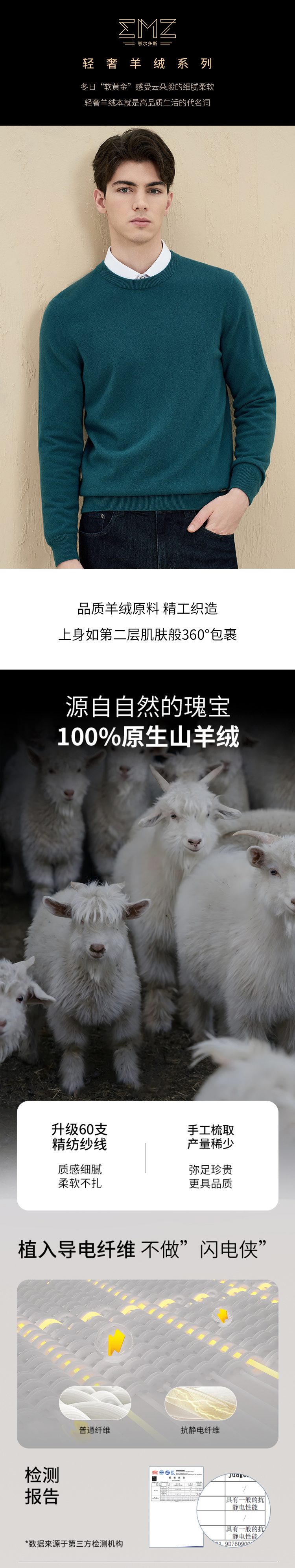 EMZ鄂尔多斯【100%羊绒】羊绒衫男士保暖圆领针织毛衣 8839884014
