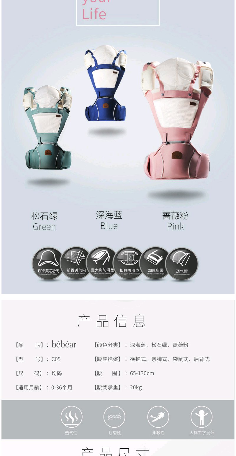 抱抱熊婴儿背带腰凳四季通用宝宝背带抱带小孩腰单凳C05正品