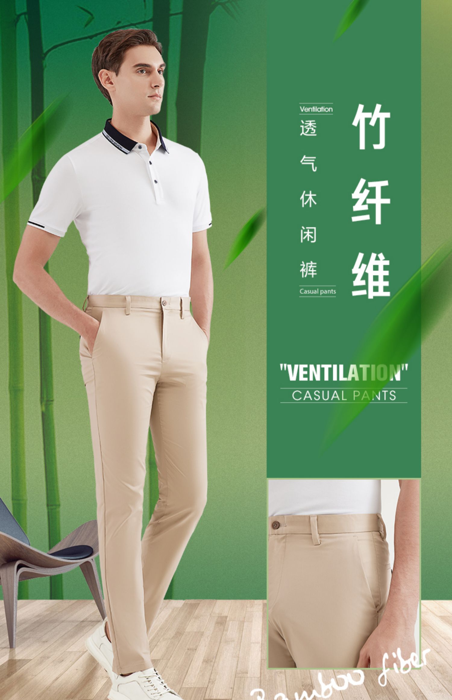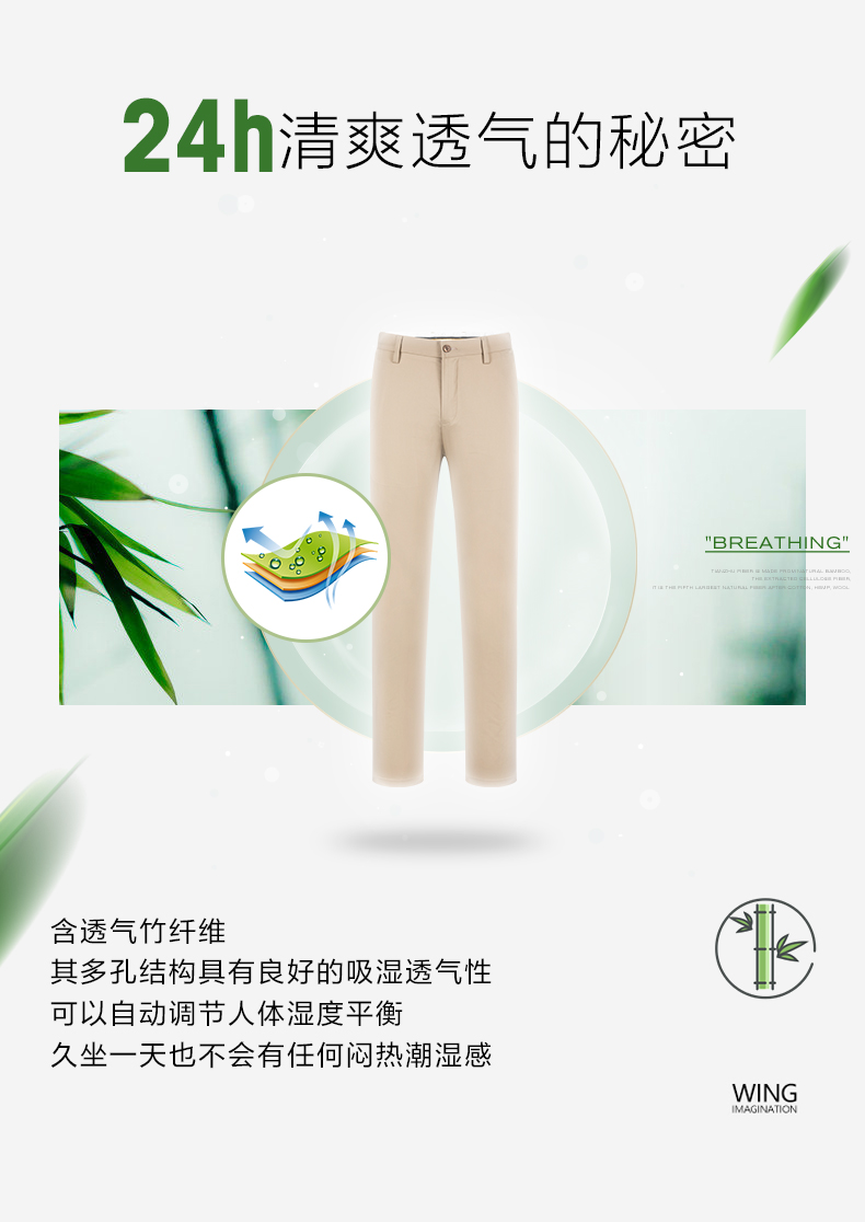 【特价】【竹纤维】柒牌休闲裤男时尚百搭商务直筒修身长裤抗皱透气男裤子 120H74060