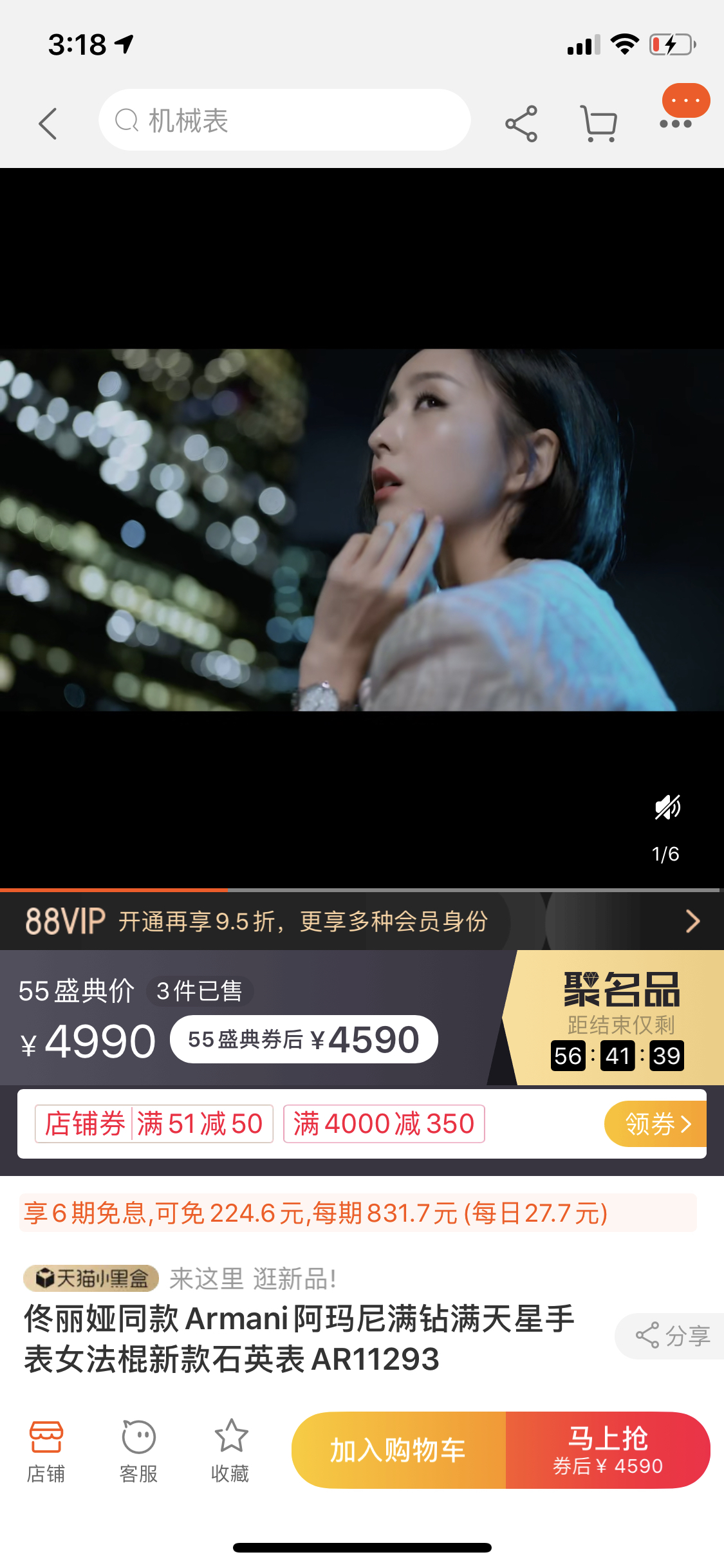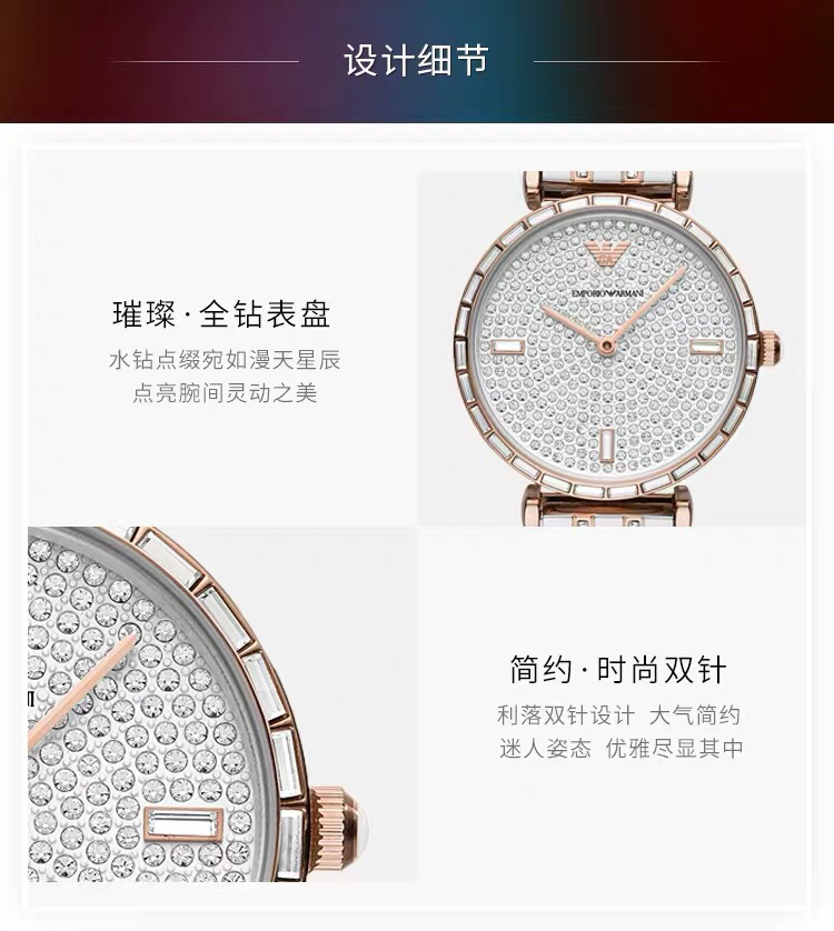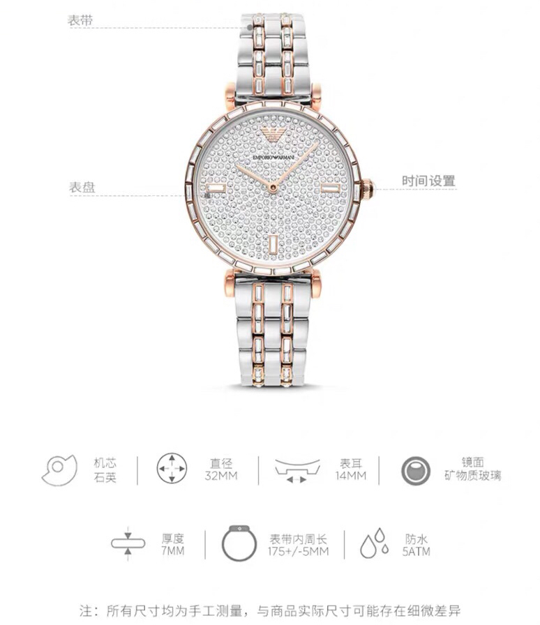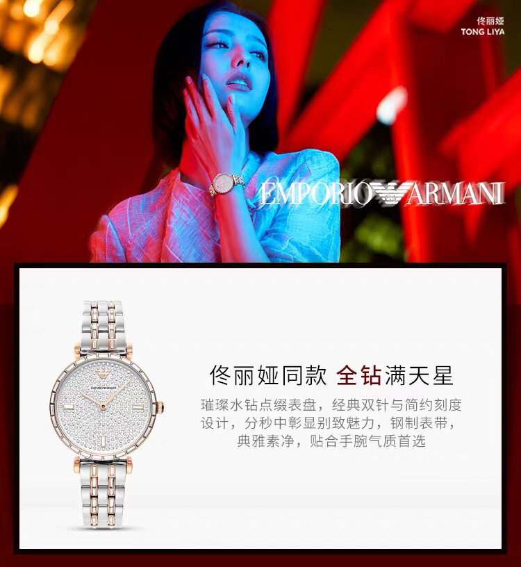 520礼物!佟丽娅同款 阿玛尼新款满天星钢带石英女士手表AR11293