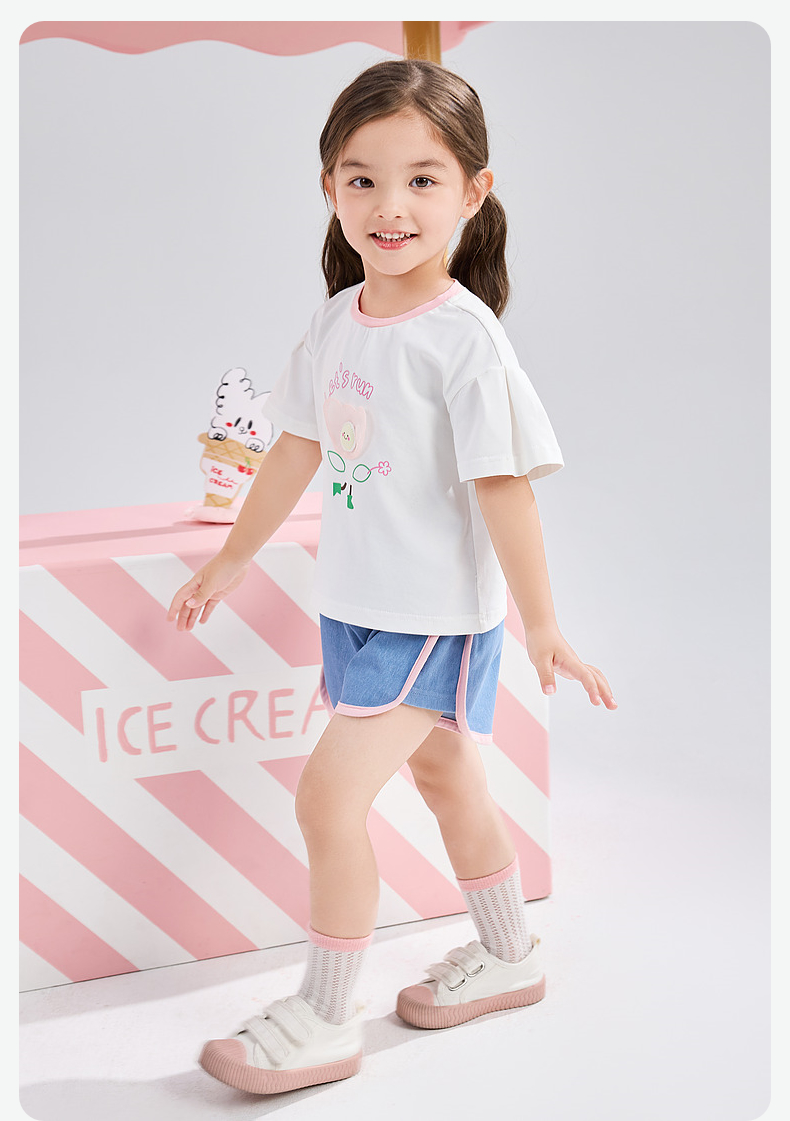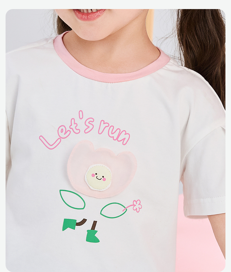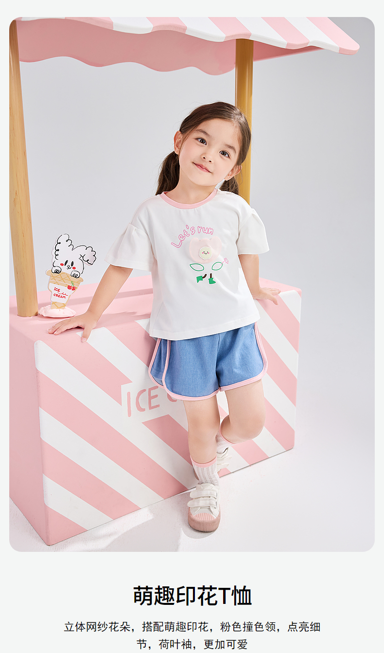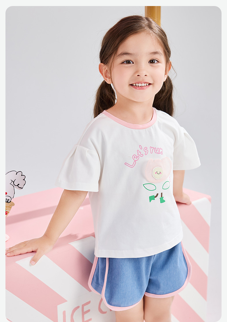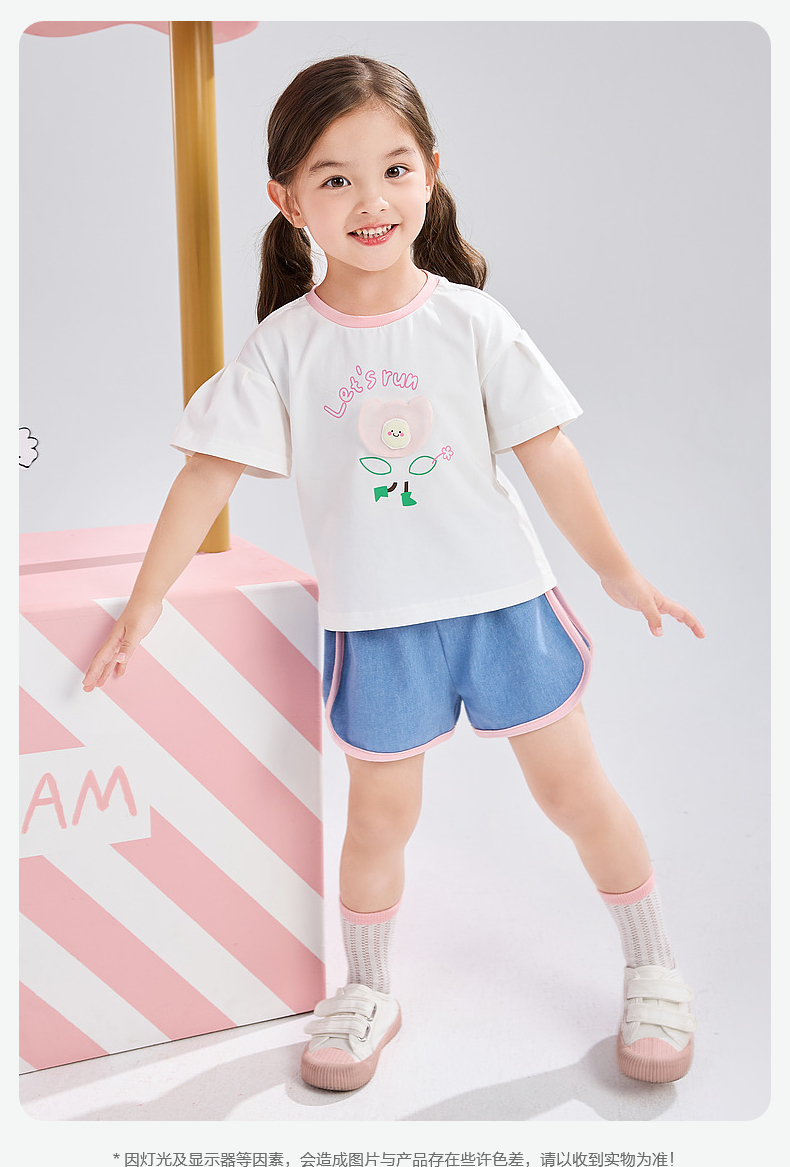 笛莎/Deesha 2026年夏季新款女童中大童纯色圆领T恤