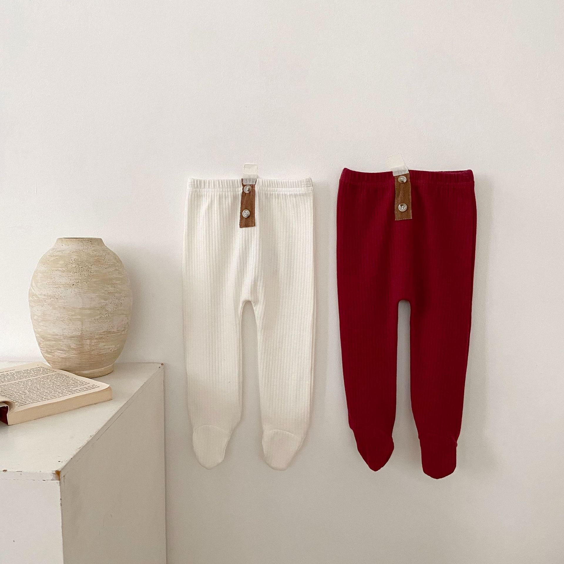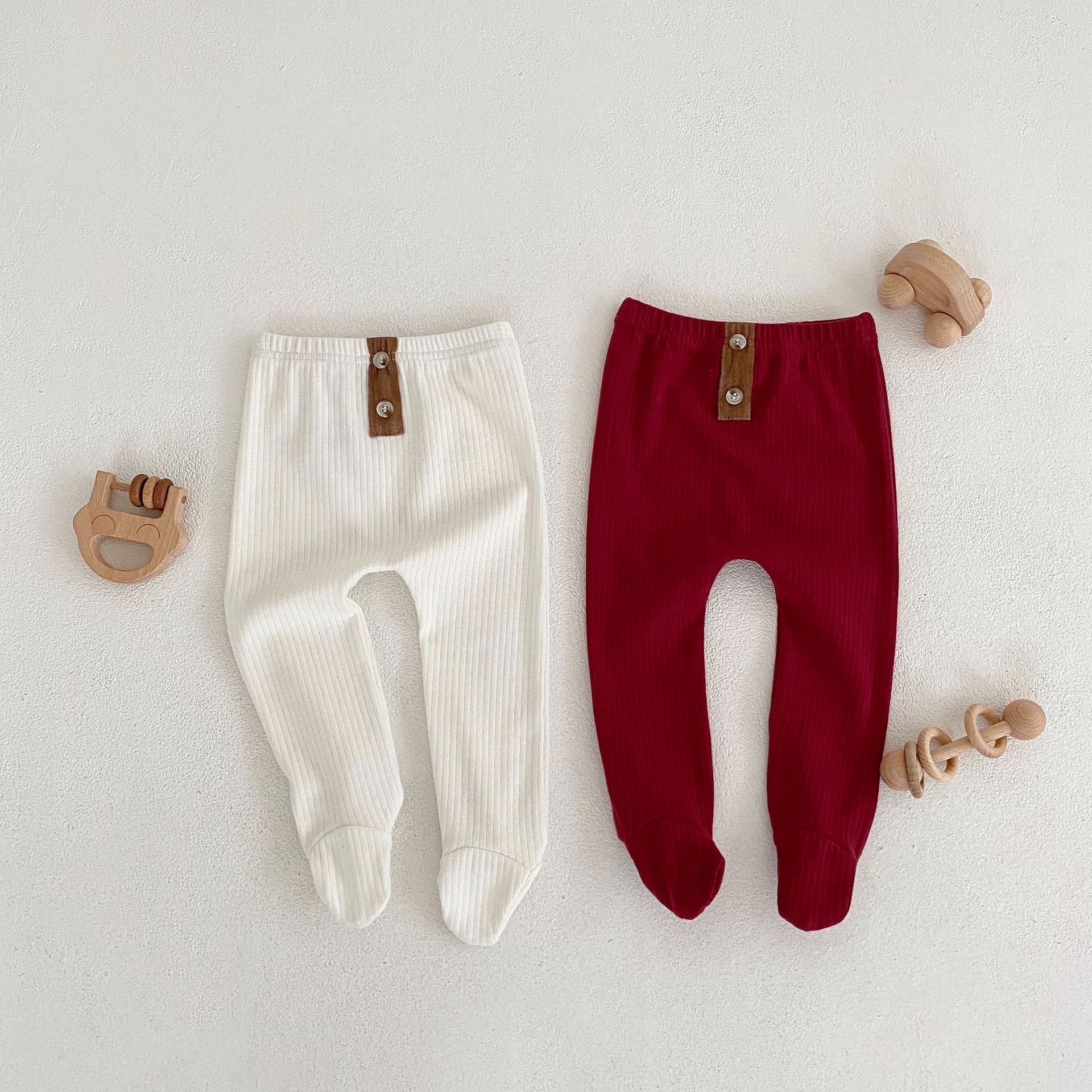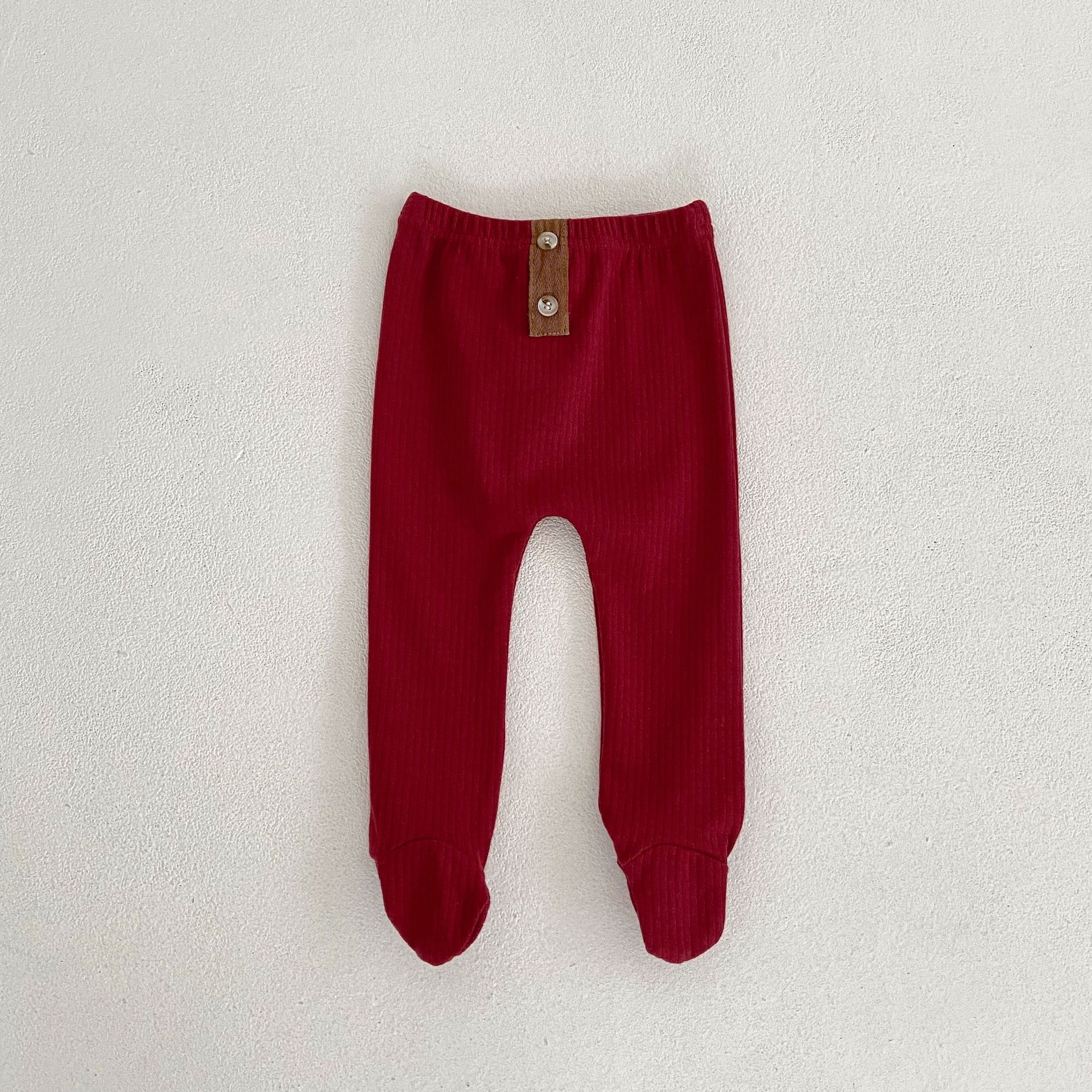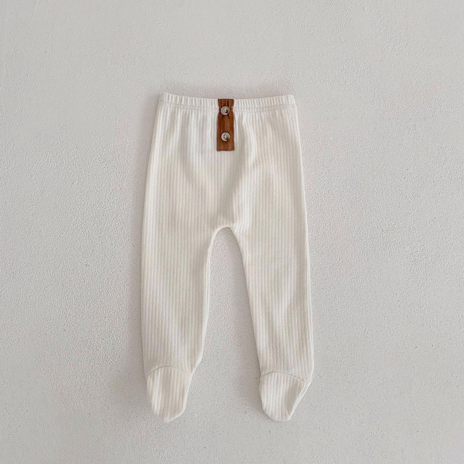ins 2023春装婴幼儿童女宝宝坑条踩脚裤袜 扣子装扮百搭pp连裤袜