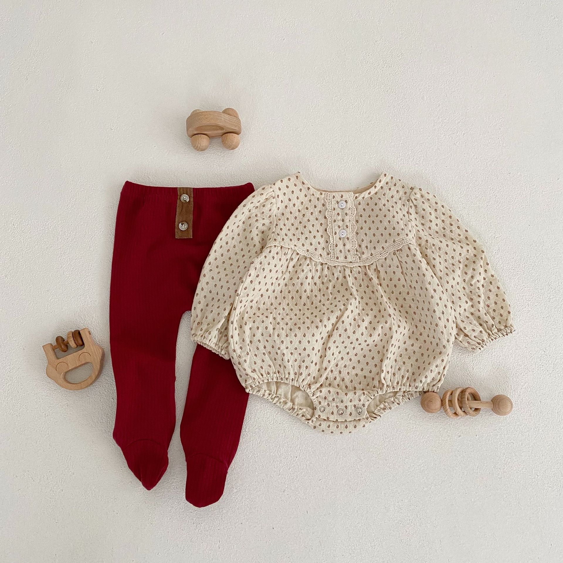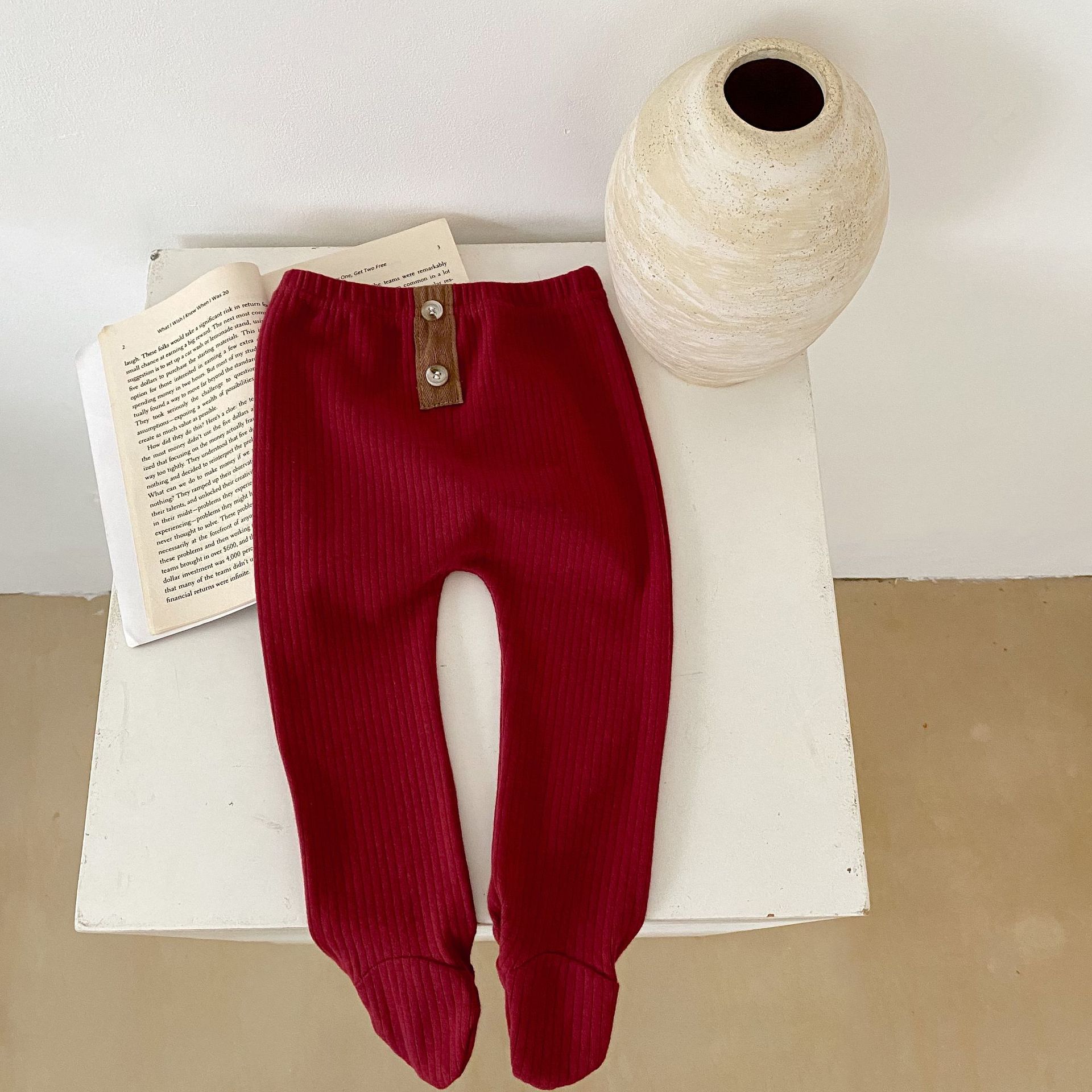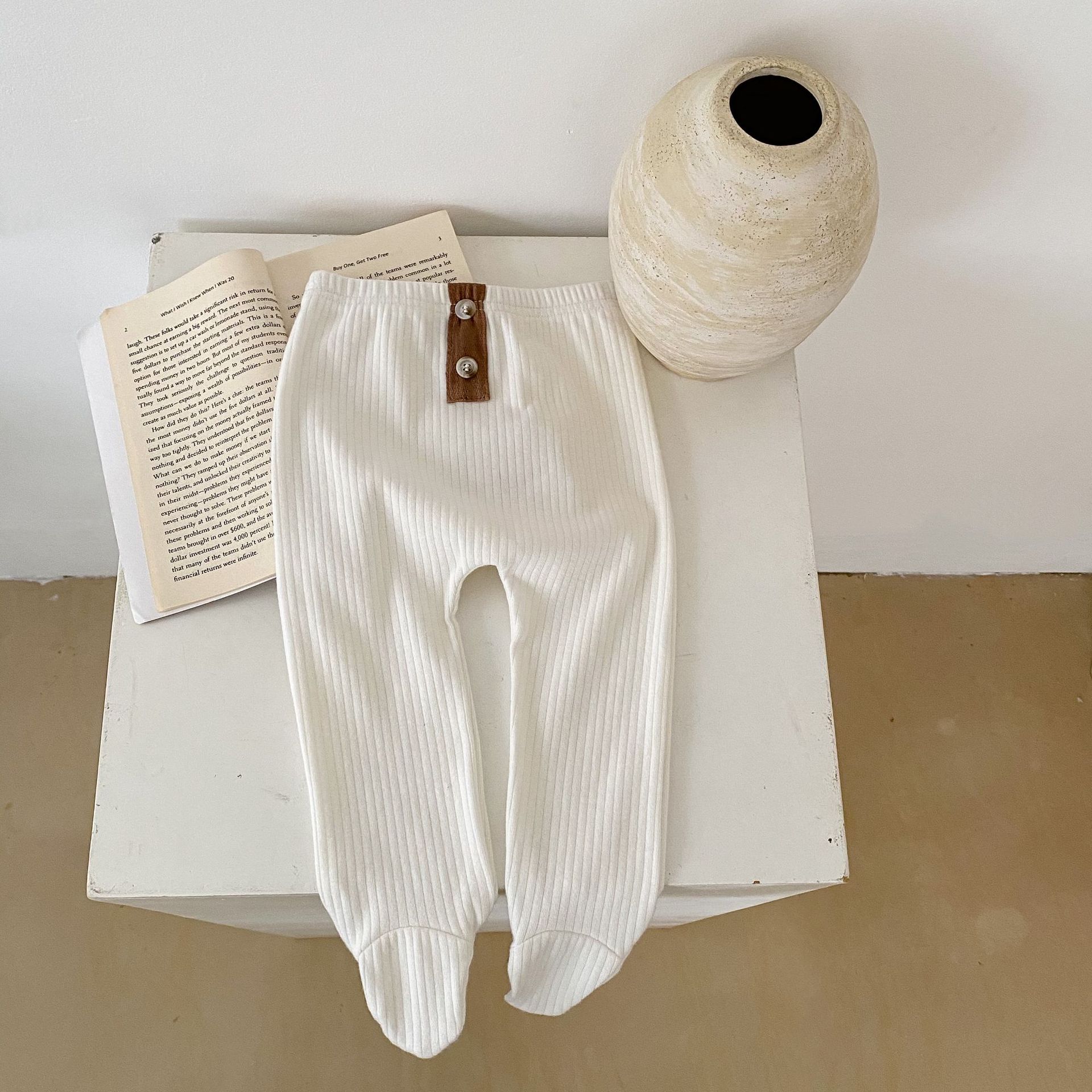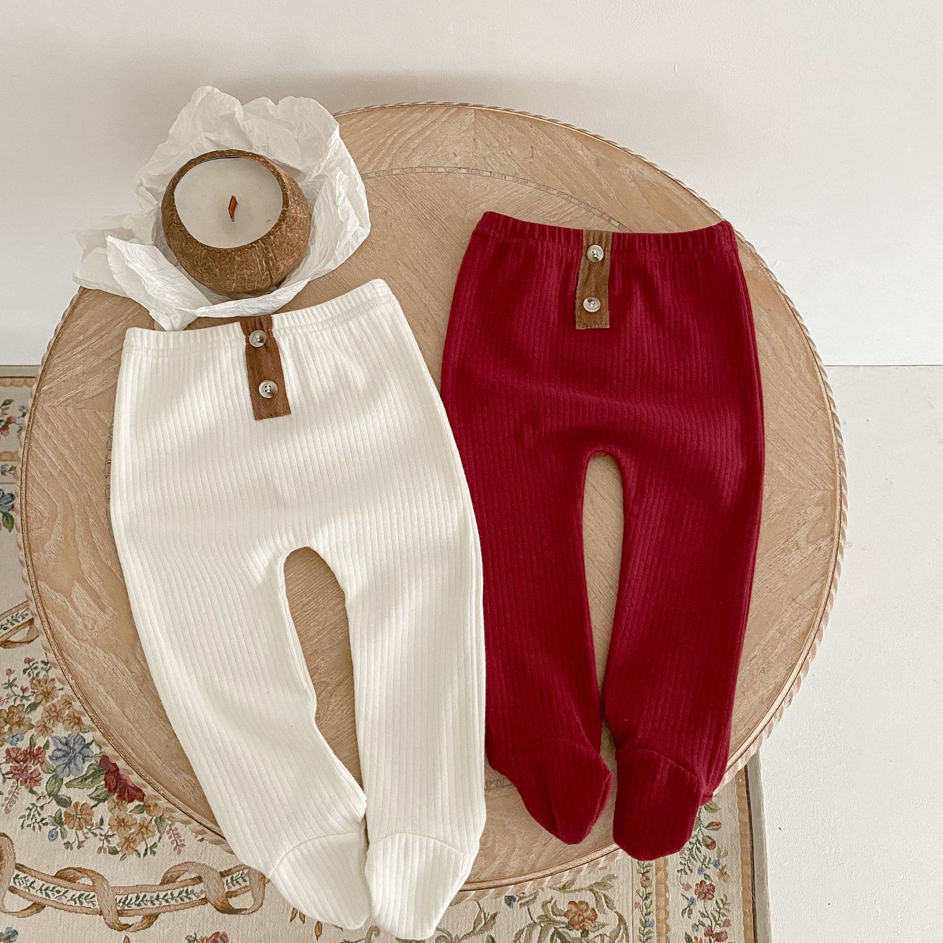 ins 2023春装婴幼儿童女宝宝坑条踩脚裤袜 扣子装扮百搭pp连裤袜