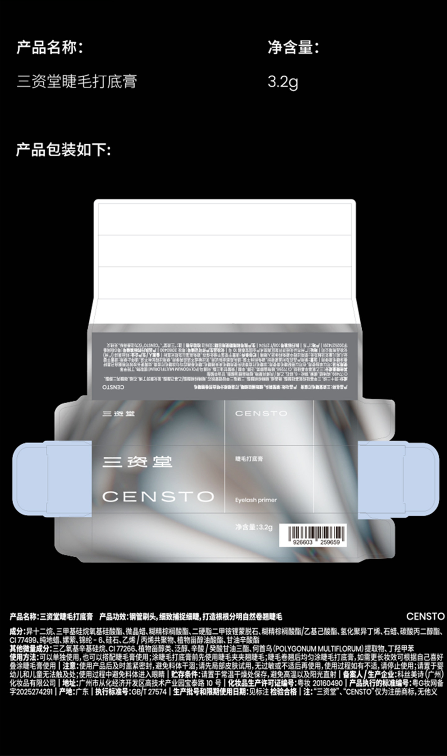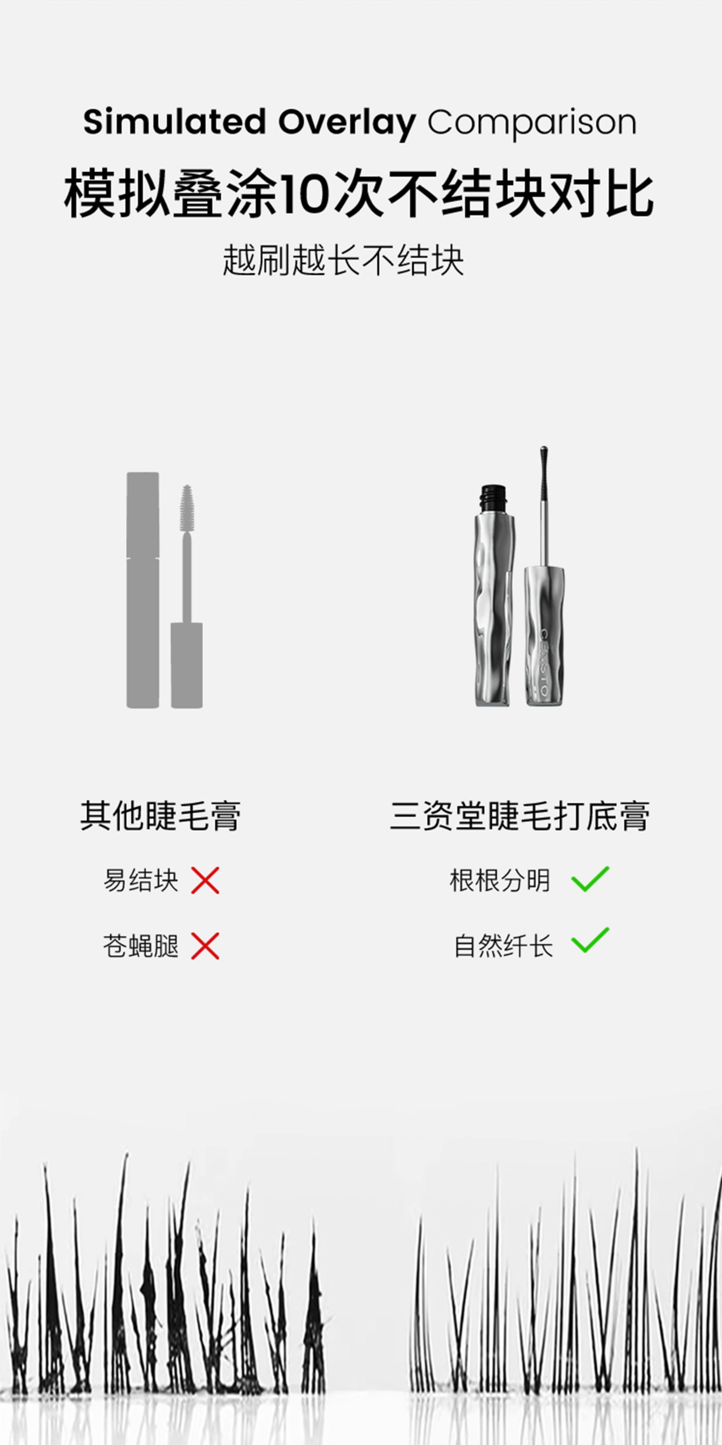 三资堂睫毛打底膏 防水纤长定型卷翘不晕染钢管睫毛膏