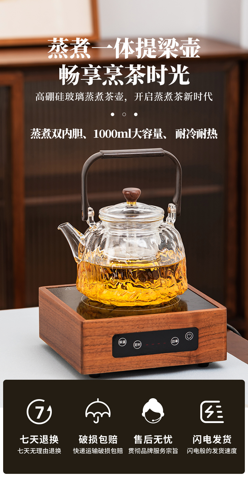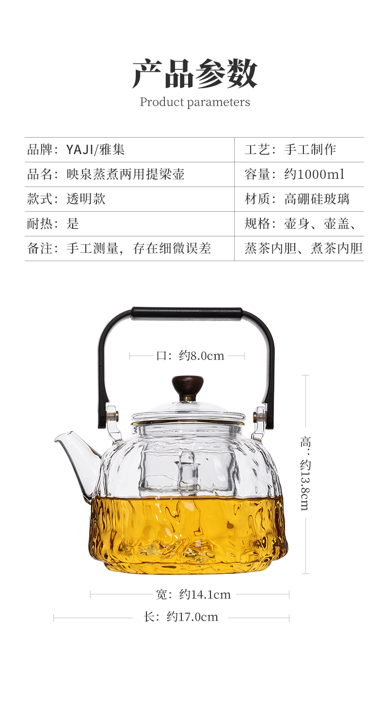 雅集玻璃壶映泉蒸煮二用提梁壶1000ml