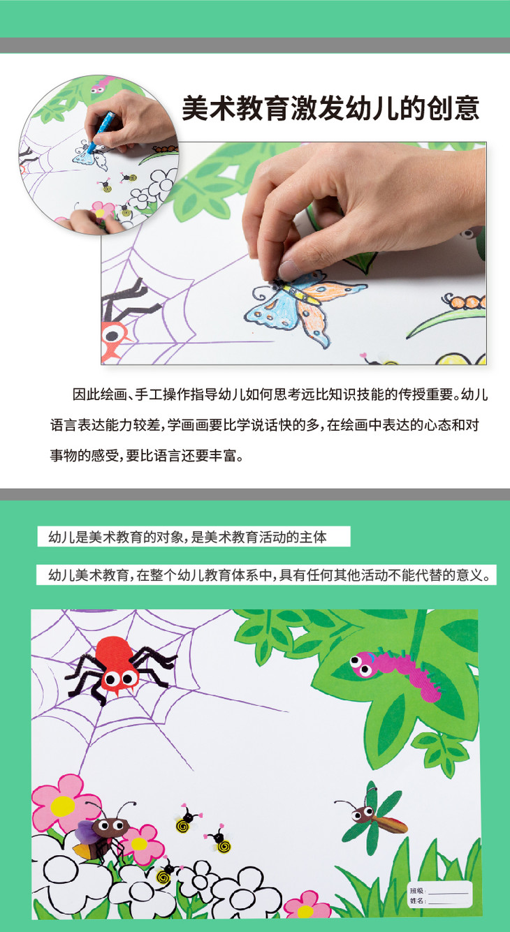 自绘填色画 diy 幼儿园儿童自制美术涂色填色材料森林里的小昆虫