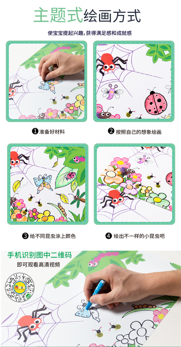 自绘填色画 diy 幼儿园儿童自制美术涂色填色材料森林里的小昆虫 商品图1
