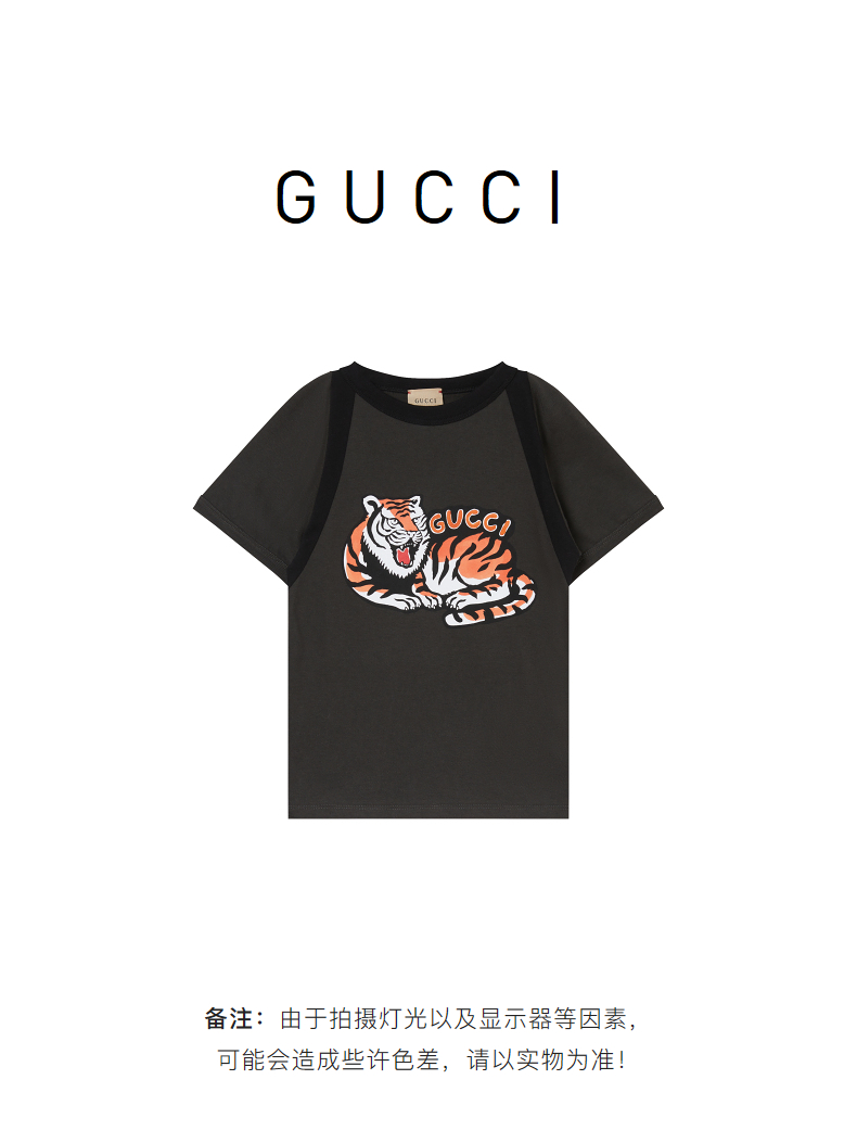 GUCCI 古驰 男童深灰色棉质印花短袖T恤 713864XJEZH