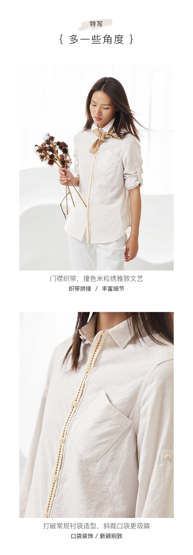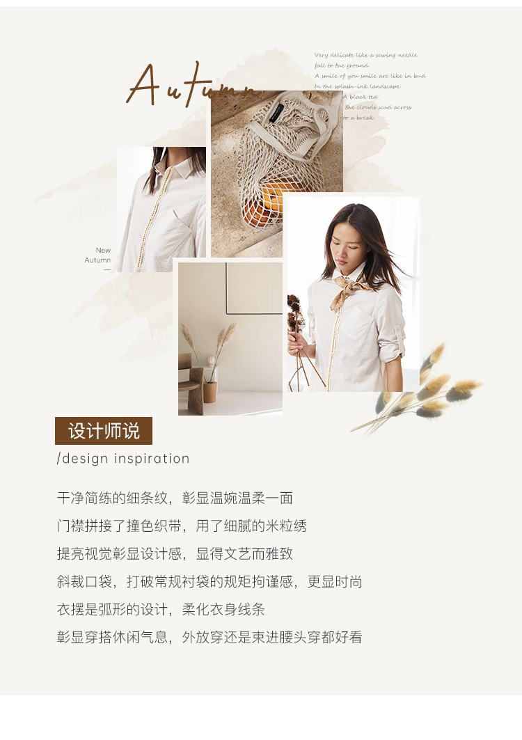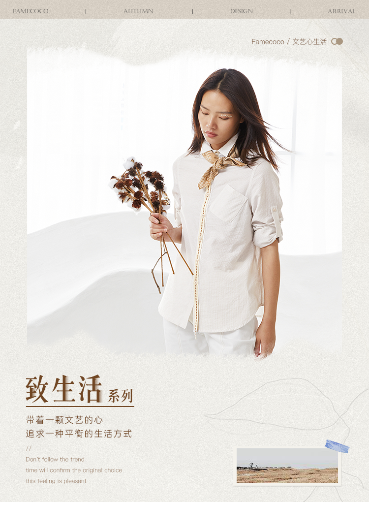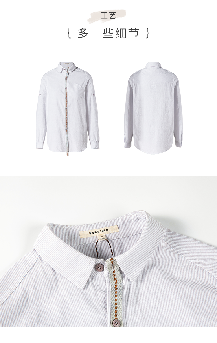 famecoco范可儿秋季女士棉衬衫长袖女宽松百搭上衣F205BA005