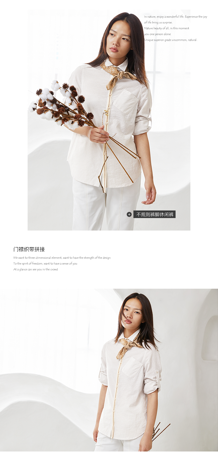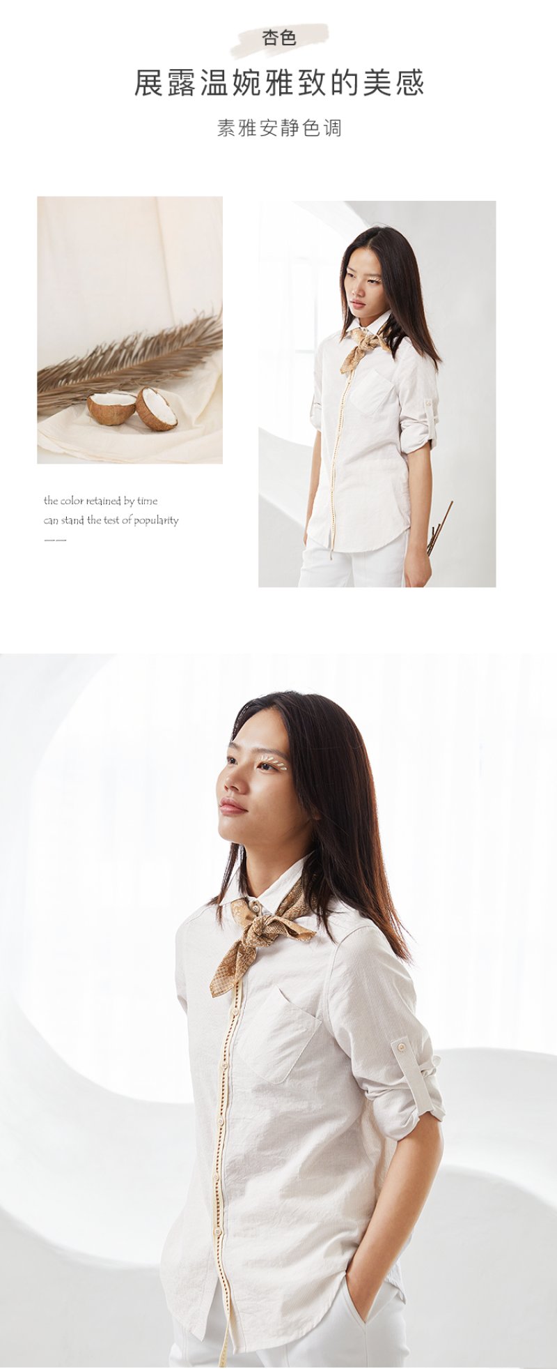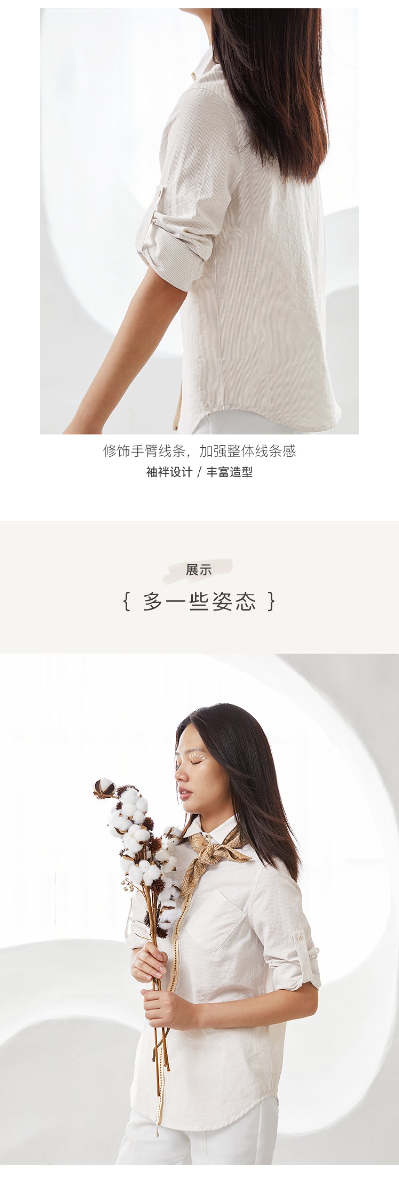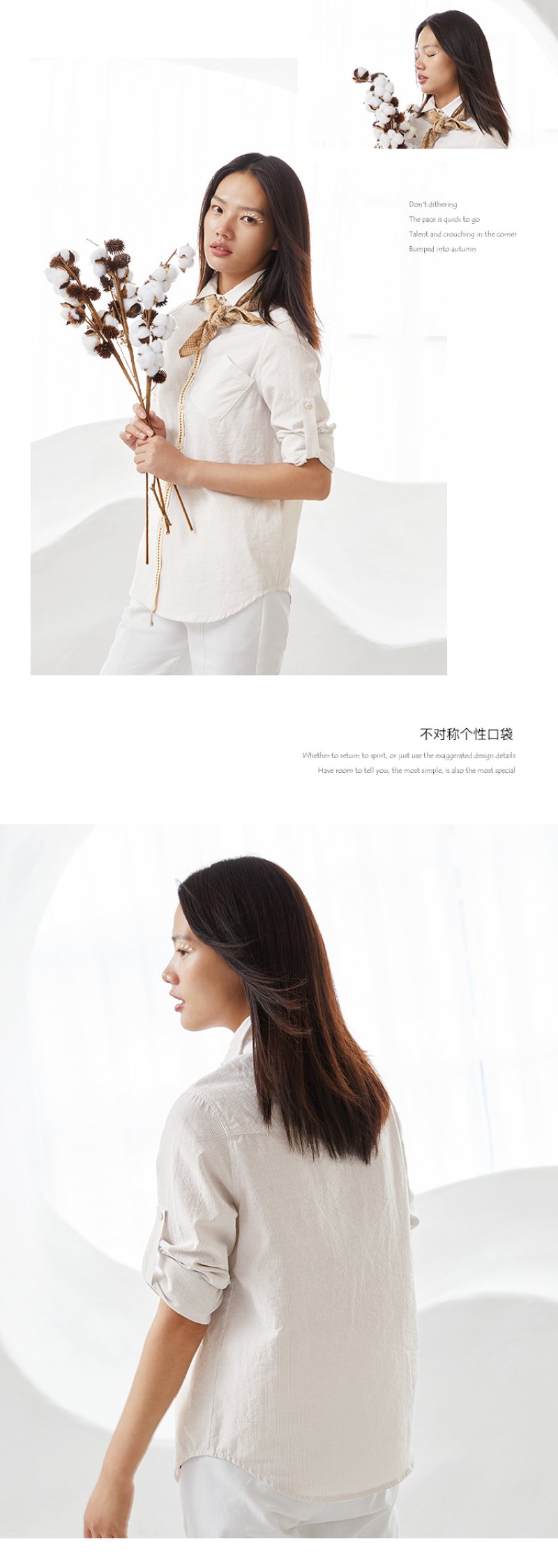 famecoco范可儿秋季女士棉衬衫长袖女宽松百搭上衣F205BA005