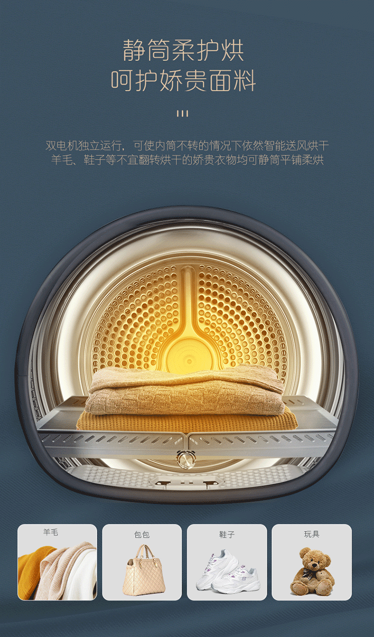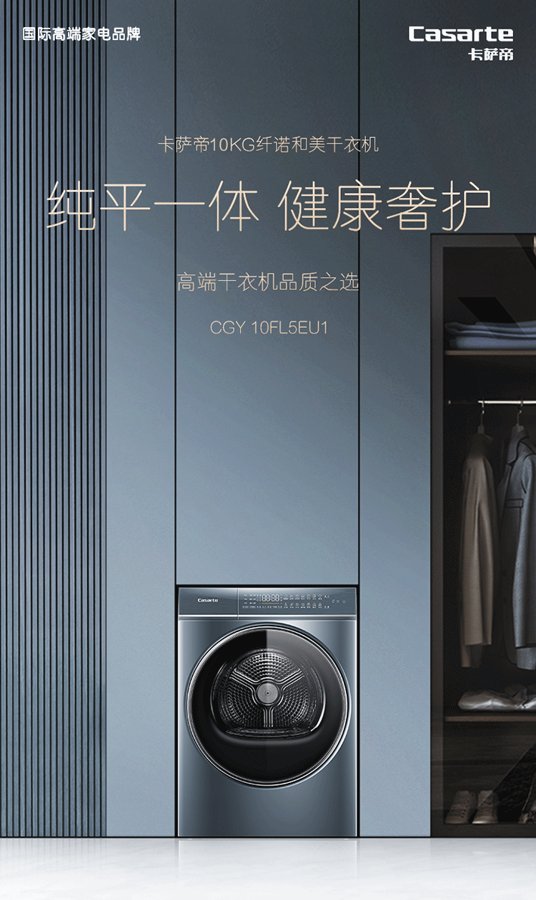 卡萨帝(Casarte)10公斤变频干衣机双擎热泵烘干护理衣物除菌净螨空气洗 锡兰青 CGY 10FL5EU1