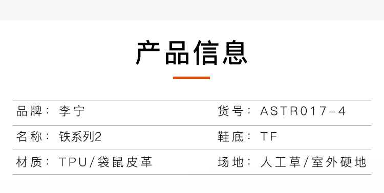 正品Lining/李宁铁系列2代袋鼠皮TF碎钉足球鞋男ASTR017-4