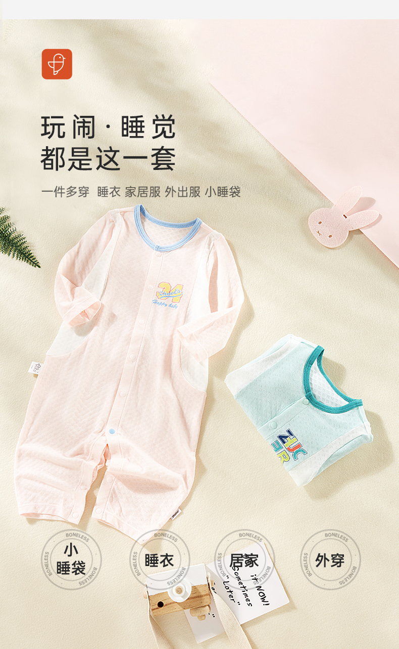 [春款连体衣]卓儿zhuoer baby四季薄连体衣家居服新生儿婴儿天然舒适不闷汗衣服