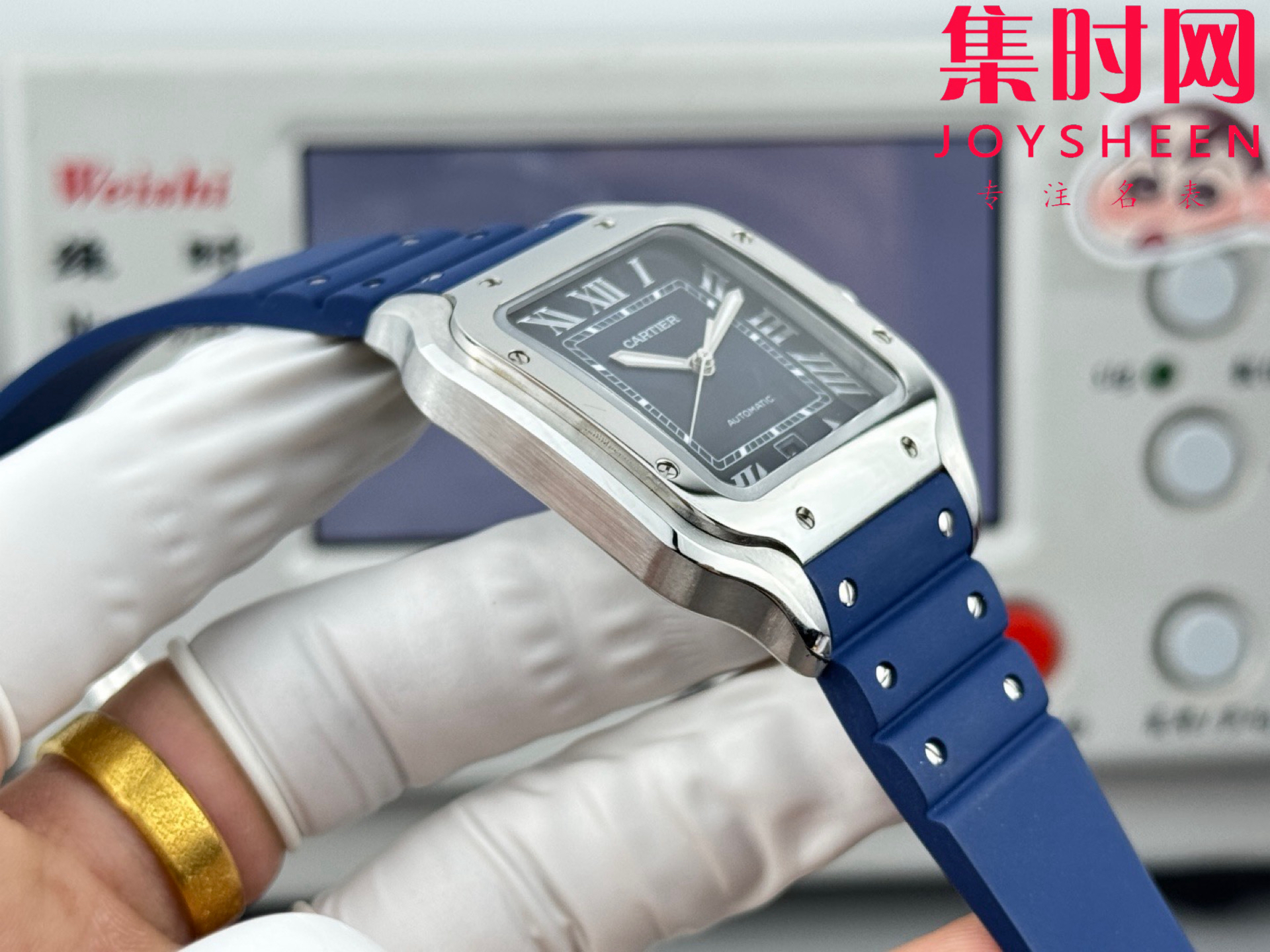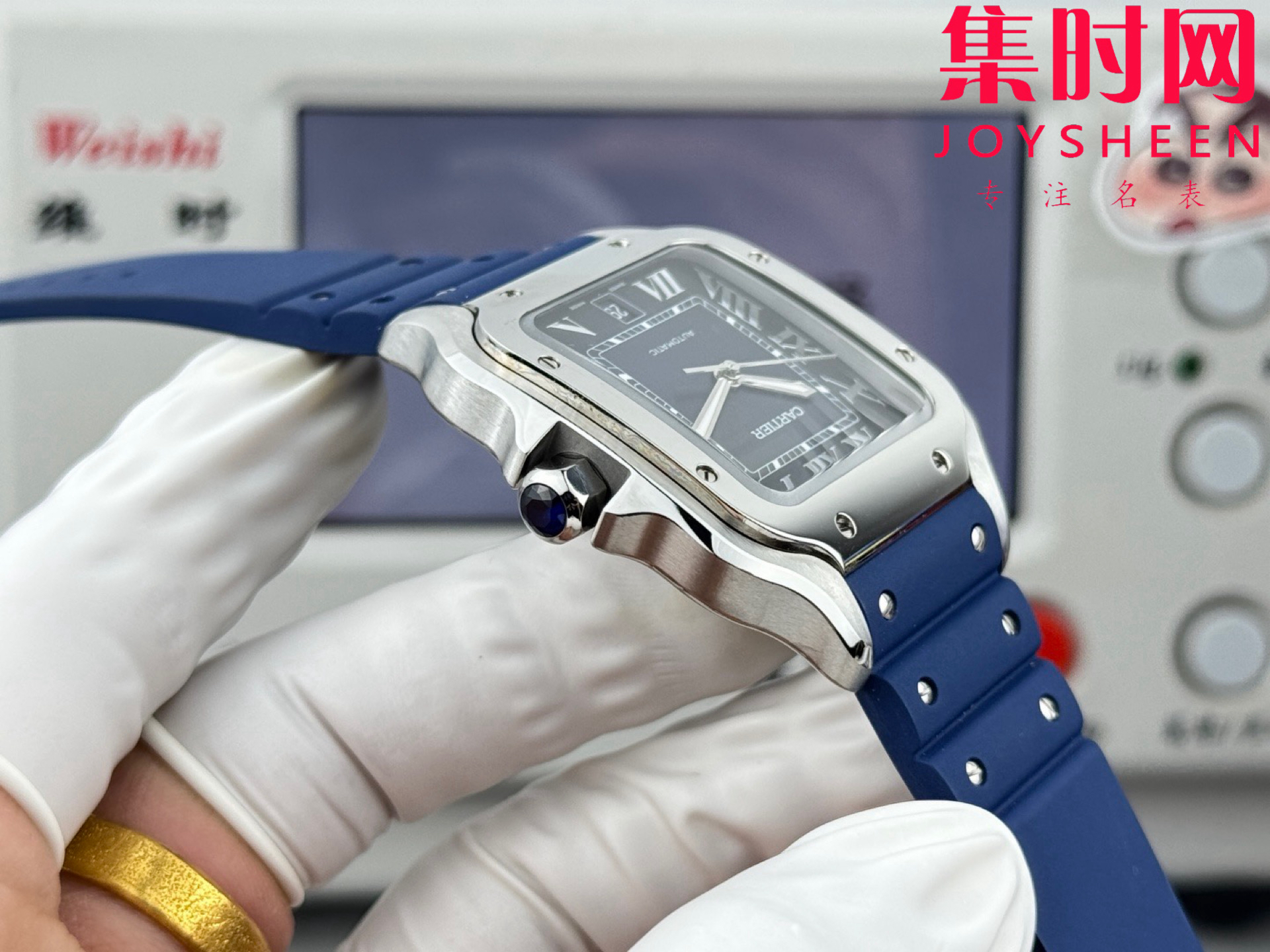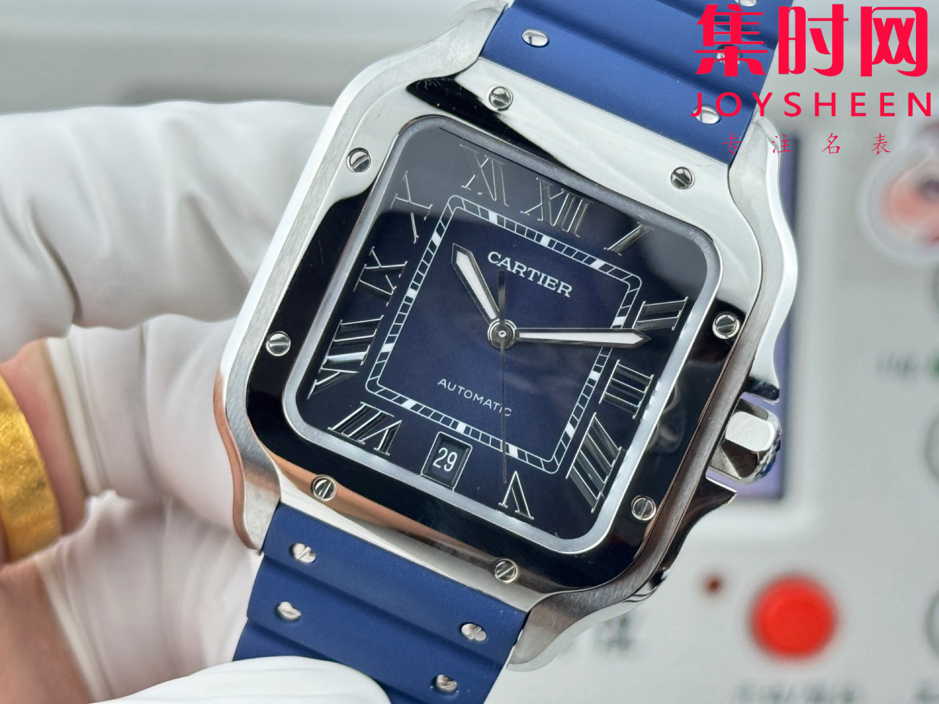GF卡地亚山度士系列 山度士大号 蓝色盘 方形男士腕表 绝对是绕不开的经典 表径39.8mm,舒适感很不错。从细节上看,表冠镶有蓝色合成多切面尖晶石,增添了许多精致感。6点钟还设置了日期显示窗口。采用进口9015改Cal.1847 MC自动上链机械机芯,在稳定性和日常佩戴的可靠性上没有问题。防水达到100米。总的来说,这款山度士更适合那些既看重品牌调性,又希望腕表能兼顾实用性的用户。